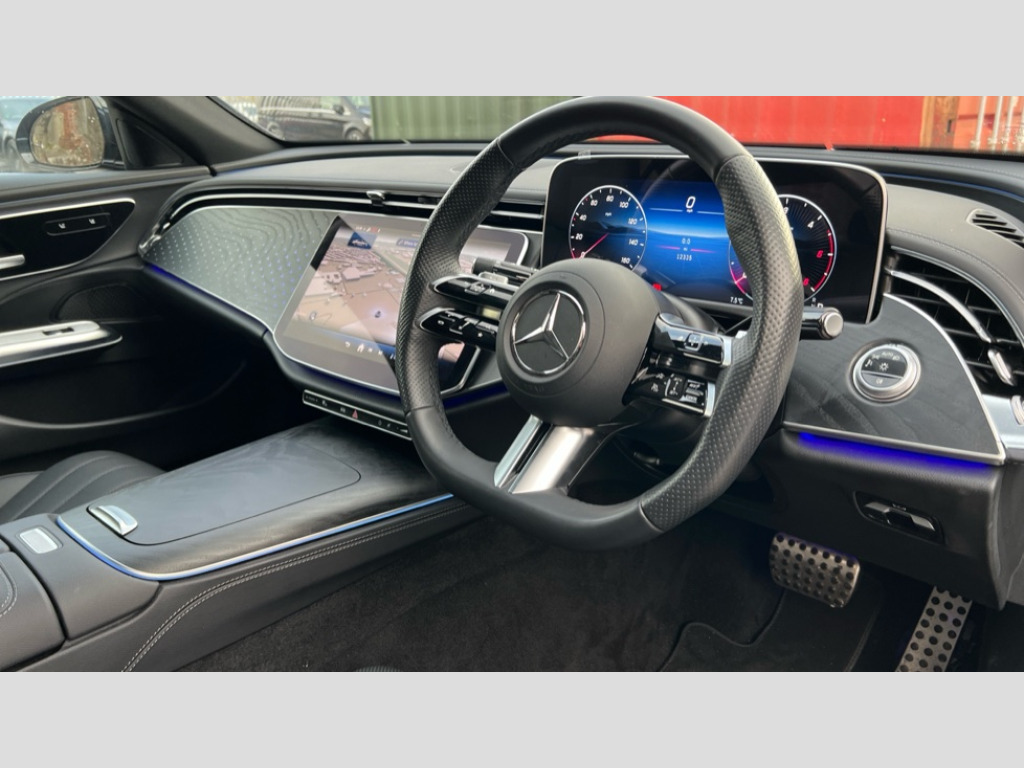 Mercedes-Benz E Class E220d AMG Line 4dr 9G-Tronic 12.3" high resolution cockpit display, 14.4" high resolution central media display with latest MBUX generation, 5G Communications module, Active lane keeping assist, Attention assist, Blind spot assist, Bluetooth, Brake wear warning display, Direct steer speed sensitive steering, ECO start/stop function, Evasive manoeuvre support, Fingerprint scanner, Fluorescent jacket for driver, Hard disc navigation, MBUX augmented reality for navigation, MBUX navigation premium, MBUX voice control, Mercedes me connect including emergency call system, accident recovery, breakdown and maintenance management, Outside temperature display, Preinstallation for live traffic, Remote Services Premium, Service indicator (ASSYST), Status display for rear seat belts in instrument cluster, Traffic sign assist, Trip computer in multifunction display showing current fuel consumption, Wireless charging, Wireless smartphone integration with Apple CarPlay and Android auto, 48V Mild hybrid technology, 66 litre fuel tank, 9G TRONIC automatic transmission, Agility control suspension with selective damping system and lowered by 15mm, Bluetec emission control, Diesel particulate filter, Integrated starter generator Gen 2, Sporty engine sound system, DAB Digital radio, Preinstallation for MBUX Entertainment Plus, 3rd brake light, Adaptive brake lights, Aerial integrated in rear window, AMG Line exterior, Auto dimming driver's door mirror, Auto dimming rear view mirror, Digital air vent control, Electric folding door mirrors, Electric windows with one touch opening/closing and obstruction sensors, Electrically adjustable and heated door mirrors, Heat insulating privacy glass, Illuminated radiator grille, LED daytime running lights, LED high performance headlights with adaptive highbeam assist, Pre-installation for roof rail systems, Rear boot, Rear side wing doors, Surround lighting with logo projection, 3 seat bench in 2nd row, 4 way lumbar support, Ambient lighting, AMG brushed stainless steel sports pedals with rubber studs, AMG floor mats, AMG line interior, Automatic child seat recognition sensor, Central stowage compartment with USB socket for use with Android Auto and Apple CarPlay, Climatised front seats, Comfort seats, Courtesy lights in rear grab handles with reading light functionality, Folding rear seat backrest, Front centre armrest with stowage compartment, Gearshift paddles in galvanised silver, Glove compartment - lockable, air conditioned and illuminated, Head restraints for driver and front passenger (four-way adjustability) and in rear (two-way), Heated front seats, Instrument panel and door beltlines in artico nappa look leather, Leather upholstery, Multifunction sports steering wheel in nappa leather, Roof liner in black fabric, Seat occupancy sensor for front passenger seat, Single front passenger seat, Steering wheel touch control buttons for audio and onboard settings, Sunvisors with illuminated vanity mirrors, THERMATIC 2 zone automatic climate control, Night pack - E class, Parking package with 180 degree camera - E Class, USB plus package - E Class, 3x3 point rear seatbelts, Active bonnet pedestrian safety measure which detects an impact and raises bonnet, Adaptive brake system with HOLD function and brake drying in the wet, Anti-lock braking system (ABS), Automatic front passenger airbag deactivation, Central airbag, Childproof locks manually operated for rear doors and electrically operated for rear power windows, Driver and front passenger airbags, Electronic parking brake, Electronic Stability Programme, Hill start assist, ISOFIX child seat attachment points two outer rear seats, Knee airbags, Pedestrian protection, Pre-Safe anticipatory safety system, Tyre pressure monitoring system, Warning triangle and first aid kit, Window airbags, Alarm system/interior protection/immobiliser, Central locking with interior switch, automatic locking and crash sensor with emergency opening function, Dashcam, Guard 360 degree vehicle protection, Increased anti theft protection, Keyless Go, Urban guard vehicle protection plus, Centre console trim in open pore black ash wood, Dash trim in open pore black ash wood with backlit laser cut Mercedes-Benz star pattern, 19" AMG 5 twin spoke design alloy wheels with black painted inserts and high sheen finish, Summer tyres, TIREFIT with tyre inflation compressor
