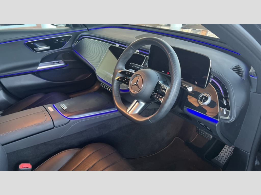 Mercedes-Benz E Class E220d AMG Line 5dr 9G-Tronic 12.3" high resolution cockpit display, 14.4" high resolution central media display with latest MBUX generation, 5G Communications module, Attention assist, Blind spot assist, Bluetooth, Brake wear warning display, Direct steer speed sensitive steering, Easy-pack tailgate - Powered opening/closing automatically, ECO start/stop function, Evasive manoeuvre support, Fingerprint scanner, Fluorescent jacket for driver, Hard disc navigation, MBUX navigation premium, MBUX voice control, Mercedes me connect including emergency call system, accident recovery, breakdown and maintenance management, Outside temperature display, Preinstallation for live traffic, Remote Services Premium, Service indicator (ASSYST), Status display for rear seat belts in instrument cluster, Trip computer in multifunction display showing current fuel consumption, Wireless charging, Wireless smartphone integration with Apple CarPlay and Android auto, 48V Mild hybrid technology, 66 litre fuel tank with 10 litre reserve, 9G TRONIC automatic transmission, Agility control suspension with selective damping system and lowered by 15mm, Bluetec emission control, Diesel particulate filter, Integrated starter generator Gen 2, Rear air suspension with level control, Sporty engine sound system, DAB Digital radio, Preinstallation for MBUX Entertainment Plus, 3rd brake light, Adaptive brake lights, Aerial integrated in rear window, AMG Line exterior, Auto dimming driver's door mirror, Auto dimming rear view mirror, Chrome roof rails, Digital air vent control, Electric folding door mirrors, Electric windows with one touch opening/closing and obstruction sensors, Electrically adjustable and heated door mirrors, Heat insulating privacy glass, LED daytime running lights, LED high performance headlights with adaptive highbeam assist, Pre-installation for roof rail systems, Rear side wing doors, Rear wiper, Surround lighting with logo projection, 3 seat bench in 2nd row, 4 way lumbar support, Ambient lighting, AMG brushed stainless steel sports pedals with rubber studs, AMG floor mats, AMG line interior, Automatic child seat recognition sensor, Central stowage compartment with USB socket for use with Android Auto and Apple CarPlay, Climatised front seats, Comfort seats, Courtesy lights in rear grab handles with reading light functionality, Folding rear seat backrest, Front centre armrest with stowage compartment, Gearshift paddles in galvanised silver, Glove compartment - lockable, air conditioned and illuminated, Head restraints for driver and front passenger (four-way adjustability) and in rear (two-way), Heated front seats, Instrument panel and door beltlines in artico nappa look leather, Leather upholstery, Multifunction sports steering wheel in nappa leather, Roof liner in black fabric, Seat occupancy sensor for front passenger seat, Single front passenger seat, Steering wheel touch control buttons for audio and onboard settings, Sunvisors with illuminated vanity mirrors, THERMATIC 2 zone automatic climate control, Night pack - E class, Parking package with 180 degree camera - E Class, USB plus package - E Class, 3x3 point rear seatbelts, Active bonnet pedestrian safety measure which detects an impact and raises bonnet, Adaptive brake system with HOLD function and brake drying in the wet, Airbags - sidebag for driver and front passenger with combined thorax/pelvis bag, Anti-lock braking system (ABS), Automatic front passenger airbag deactivation, Central airbag, Childproof locks manually operated for rear doors and electrically operated for rear power windows, Driver and adaptive front passenger airbags, Electronic parking brake, Electronic Stability Programme, Hill start assist, ISOFIX child seat attachment points two outer rear seats, Knee airbags, Pedestrian protection, Pre-Safe anticipatory safety system, Tyre pressure monitoring system, Warning triangle and first aid kit, Window airbags, Alarm system/interior protection/immobiliser, Central locking with interior switch, automatic locking and crash sensor with emergency opening function, Guard 360 degree vehicle protection, Increased anti theft protection, Keyless Go, Urban guard vehicle protection plus, Centre console in black open pore ash wood trim and dash trim with laser cut backlit Mercedes-Benz star pattern, 18" AMG 5 twin spoke design alloy wheels painted in tantalite grey, Summer tyres, Tirefit