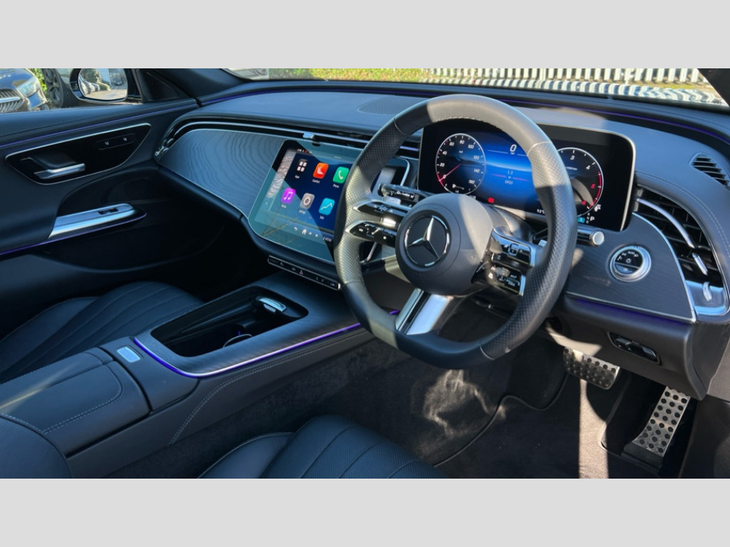 Mercedes-Benz E Class E220d AMG Line 5dr 9G-Tronic 12.3" high resolution cockpit display, 14.4" high resolution central media display with latest MBUX generation, 5G Communications module, Attention assist, Blind spot assist, Bluetooth, Brake wear warning display, Direct steer speed sensitive steering, Easy-pack tailgate - Powered opening/closing automatically, ECO start/stop function, Evasive manoeuvre support, Fingerprint scanner, Fluorescent jacket for driver, Hard disc navigation, MBUX navigation premium, MBUX voice control, Mercedes me connect including emergency call system, accident recovery, breakdown and maintenance management, Outside temperature display, Preinstallation for live traffic, Remote Services Premium, Service indicator (ASSYST), Status display for rear seat belts in instrument cluster, Trip computer in multifunction display showing current fuel consumption, Wireless charging, Wireless smartphone integration with Apple CarPlay and Android auto, 48V Mild hybrid technology, 66 litre fuel tank with 10 litre reserve, 9G TRONIC automatic transmission, Agility control suspension with selective damping system and lowered by 15mm, Bluetec emission control, Diesel particulate filter, Integrated starter generator Gen 2, Rear air suspension with level control, Sporty engine sound system, DAB Digital radio, Preinstallation for MBUX Entertainment Plus, 3rd brake light, Adaptive brake lights, Aerial integrated in rear window, AMG Line exterior, Auto dimming driver's door mirror, Auto dimming rear view mirror, Chrome roof rails, Digital air vent control, Electric folding door mirrors, Electric windows with one touch opening/closing and obstruction sensors, Electrically adjustable and heated door mirrors, Heat insulating privacy glass, LED daytime running lights, LED high performance headlights with adaptive highbeam assist, Pre-installation for roof rail systems, Rear side wing doors, Rear wiper, Surround lighting with logo projection, 3 seat bench in 2nd row, 4 way lumbar support, Ambient lighting, AMG brushed stainless steel sports pedals with rubber studs, AMG floor mats, AMG line interior, Automatic child seat recognition sensor, Central stowage compartment with USB socket for use with Android Auto and Apple CarPlay, Climatised front seats, Comfort seats, Courtesy lights in rear grab handles with reading light functionality, Folding rear seat backrest, Front centre armrest with stowage compartment, Gearshift paddles in galvanised silver, Glove compartment - lockable, air conditioned and illuminated, Head restraints for driver and front passenger (four-way adjustability) and in rear (two-way), Heated front seats, Instrument panel and door beltlines in artico nappa look leather, Leather upholstery, Multifunction sports steering wheel in nappa leather, Roof liner in black fabric, Seat occupancy sensor for front passenger seat, Single front passenger seat, Steering wheel touch control buttons for audio and onboard settings, Sunvisors with illuminated vanity mirrors, THERMATIC 2 zone automatic climate control, Night pack - E class, Parking package with 180 degree camera - E Class, USB plus package - E Class, 3x3 point rear seatbelts, Active bonnet pedestrian safety measure which detects an impact and raises bonnet, Adaptive brake system with HOLD function and brake drying in the wet, Airbags - sidebag for driver and front passenger with combined thorax/pelvis bag, Anti-lock braking system (ABS), Automatic front passenger airbag deactivation, Central airbag, Childproof locks manually operated for rear doors and electrically operated for rear power windows, Driver and adaptive front passenger airbags, Electronic parking brake, Electronic Stability Programme, Hill start assist, ISOFIX child seat attachment points two outer rear seats, Knee airbags, Pedestrian protection, Pre-Safe anticipatory safety system, Tyre pressure monitoring system, Warning triangle and first aid kit, Window airbags, Alarm system/interior protection/immobiliser, Central locking with interior switch, automatic locking and crash sensor with emergency opening function, Guard 360 degree vehicle protection, Increased anti theft protection, Keyless Go, Urban guard vehicle protection plus, Centre console in black open pore ash wood trim and dash trim with laser cut backlit Mercedes-Benz star pattern, 18" AMG 5 twin spoke design alloy wheels painted in tantalite grey, Summer tyres, Tirefit