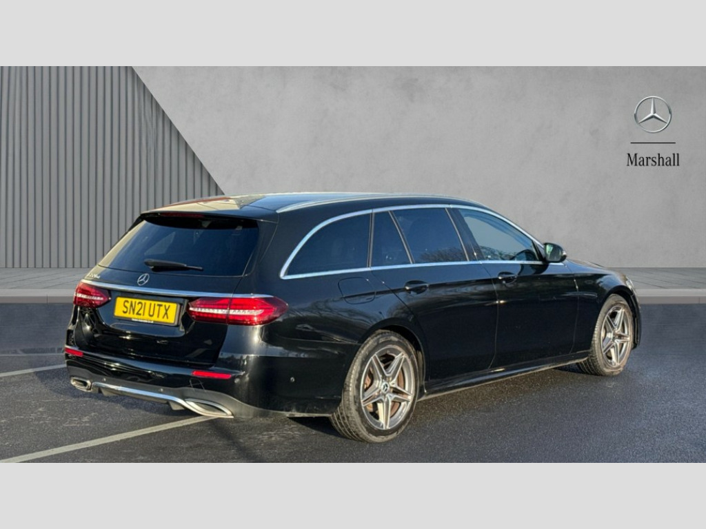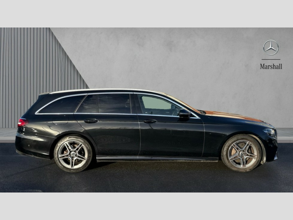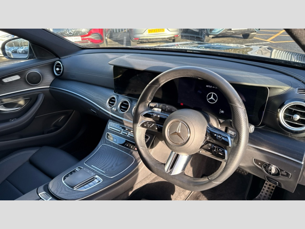 Mercedes-Benz E Class E220d AMG Line 5dr 9G-Tronic Attention assist, Blind spot assist, Brake wear warning display, Cockpit display 12.3" widescreen digital instrument cluster, Cruise control with variable speed limiter, Direct steer speed sensitive steering, DYNAMIC SELECT with a choice of driving modes (ECO, Comfort, Sport, Sport+ and Individual), Easy-pack tailgate - Powered opening/closing automatically, ECO start/stop function, High resolution 12.3" multimedia colour display, MBUX voice control activated by keywords "Hey Mercedes", Mercedes connect me, Outside temperature display, Remote boot release, Service indicator (ASSYST), Smartphone integration via Android Auto/Apple CarPlay, Media Interface, USB and Bluetooth interface, Status display for rear seat belts in instrument cluster, Touchpad with controller, Traffic sign assist, Trip computer in multifunction display showing current fuel consumption, Wireless charging, 25 litre AdBlue tank, 5m charging cable for wall box/public charging stations(mode 3), 66 litre fuel tank, 8m charging cable for household socket, 9G TRONIC 9 speed automatic transmission, Agility control sports suspension with selective damping system and lowered by 15mm, Diesel particulate filter, Incorrect fuelling protection, Rear air suspension with level control, 2 USB ports in centre console, 2 USB ports in the rear, MBUX multimedia system with DAB digital radio and touchpad including satellite navigation, Adaptive brake lights, Aerial integrated in rear window, AMG bodystyling front and rear aprons and side sill panels, Body colour door mirrors, Chrome pins diamond radiator grille, surround in high gloss black, single louvre in chrome with insert in high gloss black and integral star, Chrome roof rails, Electric windows with one touch opening/closing and obstruction sensors, Electrically adjustable and heated door mirrors, Illuminated front door sill panels with Mercedes-Benz lettering, LED rear lights, Multibeam LED Intelligent Light System with Adaptive Highbeam Assist, Privacy glass Includes rear side windows and rear windscreen, Rain sensing windscreen wipers, Rear wiper, Tail lights, Top surround of side windows in polished aluminium, Visible twin pipe exhaust system integrated into bumper, 3 spoke multifunction flat bottom AMG steering wheel with chrome inserts and touch control buttons, trimmed in black nappa leather, 40:20:40 split folding rear bench seat, Artico man-made leather upper dashboard and beltlines with contrast stitching, Automatic child seat recognition sensor, Black door pins, Black roof lining, Central stowage compartment with 12 V socket in centre console, USB socket for use with Android Auto and Apple CarPlay, Courtesy lights in rear grab handles with reading light functionality, Floor mats with AMG lettering, Four way partially front electric seat adjustment, Front centre armrest with stowage compartment, Glasses compartment in overhead control panel, Glove compartment - lockable, air conditioned and illuminated, Head restraints for driver and front passenger (four-way adjustability) and in rear (two-way), Heated front seats, Interior lighting - 64 colour Ambient lighting, Leather upholstery, Seat occupancy sensor for front passenger seat, Sports pedals in brushed stainless steel with black rubber studs, Steering column manually adjustable for height and reach, Steering wheel multifunction with gearshift paddles, Steering wheel touch control buttons for audio and onboard settings, Sunvisors with illuminated vanity mirrors, THERMOTRONIC automatic climate control system with 3 climate zones, Mirror pack - E Class, Parking package with reversing camera - E Class, Seat comfort pack - E Class, Stowage pack - E Class Estate, 3x3 point rear seatbelts, Active bonnet pedestrian safety measure which detects an impact and raises bonnet, Active brake assist, Adaptive brake system with HOLD function and brake drying in the wet, Airbags - sidebag for driver and front passenger with combined thorax/pelvis bag, Anti-lock braking system (ABS), Childproof locks manually operated for rear doors and electrically operated for rear power windows, Driver and adaptive front passenger airbags, Drivers knee airbag, Electronic parking brake, Hill start assist, ISOFIX child seat attachment points two outer rear seats, Perforated brake discs with Mercedes Benz lettering, Pre-Safe anticipatory safety system, Tyre pressure monitoring system, Warning triangle and first aid kit, Window airbags, Alarm system/interior protection/immobiliser, Central locking with interior switch, automatic locking and crash sensor with emergency opening function, Chrome surround in electric key, Keyless entry go starting function, Open pore black ash wood trim and centre console in black open pored ash wood, 18" AMG 5 twin spoke light alloy wheels painted in tantalite grey with high sheen finish, Run flat tyres