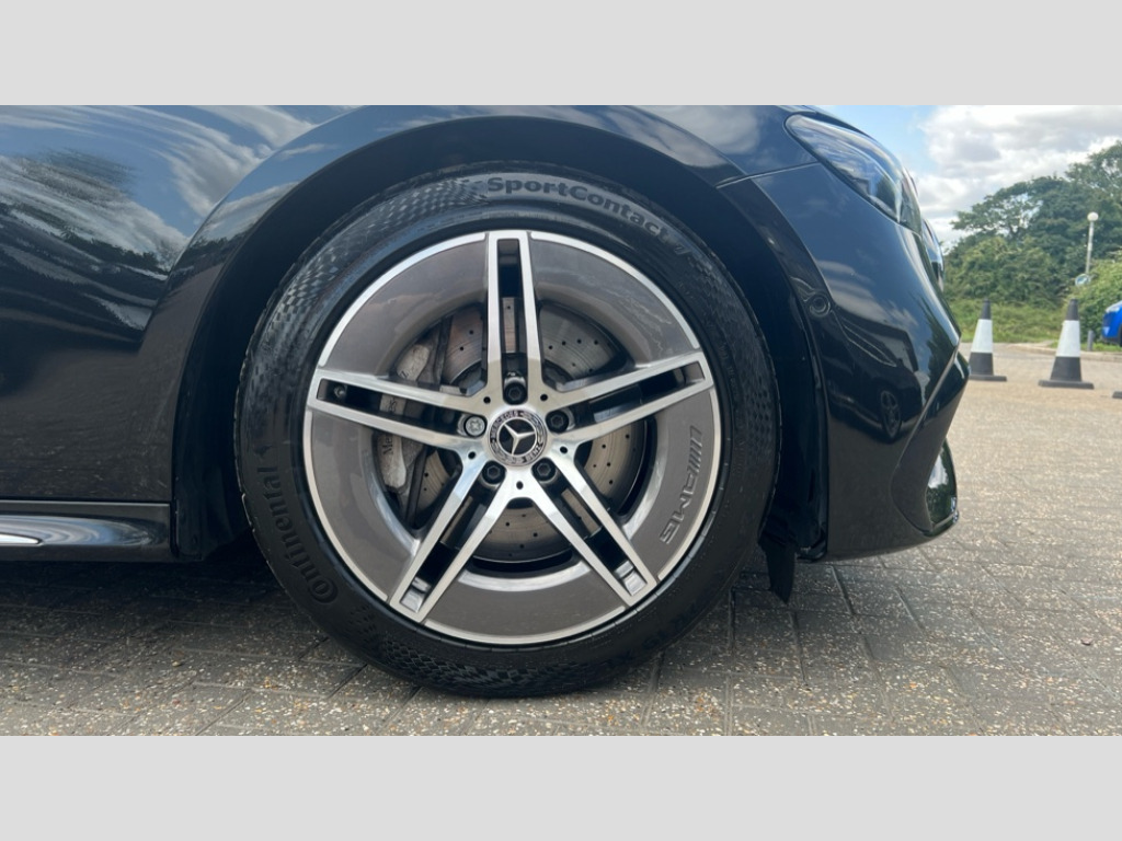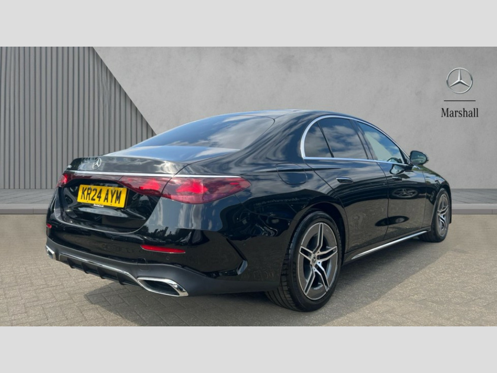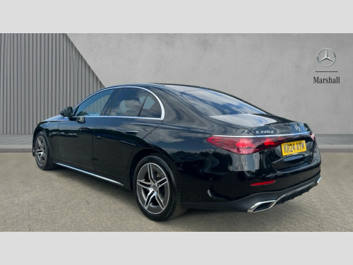 Mercedes-Benz E Class E220d AMG Line Advanced 4dr 9G-Tronic 12.3" Driver display screen, 14.4" central media display, 5G Communications module, Attention assist, Augmented reality navigation, Blind spot assist, Brake wear warning display, Direct steer speed sensitive steering, ECO start/stop function, Emergency call assistance, Evasive manoeuvre support, Fluorescent jacket for driver, Hard disc navigation, Head up Display, MBUX navigation premium, MBUX voice control, Mercedes connect me, Outside temperature display, Preinstallation for live traffic, Remote Services Premium, Service indicator (ASSYST), Status display for rear seat belts in instrument cluster, Trip computer in multifunction display showing current fuel consumption, Wireless charging, Wireless smartphone integration with Apple CarPlay and Android auto, 48V Mild hybrid technology, 66 litre fuel tank, 9G TRONIC automatic transmission, Agility control suspension with selective damping and lowering, Bluetec emission control, Diesel particulate filter, Integrated starter generator Gen 2, Sporty engine sound system, DAB Digital radio, Preinstallation for MBUX Entertainment Plus, 3rd brake light, Adaptive brake lights, Aerial integrated in rear window, AMG bodystyling, Auto dimming driver's door mirror, Auto dimming rear view mirror, Black radiator grille, Digital air vent control, Electric folding door mirrors, Electric windows with one touch opening/closing and obstruction sensors, Electrically adjustable and heated door mirrors, Heat insulating privacy glass, LED daytime running lights, LED digital light with adaptive highbeam assist plus, Pre-installation for roof rail systems, Rear boot, Rear side wing doors, Surround lighting with logo projection, 3 seat bench in 2nd row, 4 way lumbar support, Ambient lighting, AMG brushed stainless steel sports pedals with rubber studs, AMG floor mats, AMG line interior, Automatic child seat recognition sensor, Central stowage compartment with USB socket for use with Android Auto and Apple CarPlay, Comfort seats, Courtesy lights in rear grab handles with reading light functionality, Folding rear seat backrest, Front centre armrest with stowage compartment, Glove compartment - lockable, air conditioned and illuminated, Head restraints for driver and front passenger (four-way adjustability) and in rear (two-way), Heated front seats, Illuminated door sills, Multifunction sports steering wheel in nappa leather, Roof liner in black fabric, Seat occupancy sensor for front passenger seat, Single front passenger seat, Sunvisors with illuminated vanity mirrors, Thermotronic 4 zone climate control, Leather package - E Class, Memory package - E Class, Parking package with 360 degree camera - E Class, USB plus package - E Class, 3x3 point rear seatbelts, Active bonnet pedestrian safety measure which detects an impact and raises bonnet, Adaptive brake system with HOLD function and brake drying in the wet, Anti-lock braking system (ABS), Automatic front passenger airbag deactivation, Central airbag, Childproof locks manually operated for rear doors and electrically operated for rear power windows, Driver and adaptive front passenger airbags, Electronic parking brake, Electronic Stability Programme, Hill start assist, ISOFIX child seat attachment points two outer rear seats, Knee airbags, Pedestrian protection, Pre-Safe anticipatory safety system, Tyre pressure monitoring system, Warning triangle and first aid kit, Window airbags, Alarm system with interior monitoring, Central locking with interior switch, automatic locking and crash sensor with emergency opening function, Dashcam, Digital vehicle key, Guard 360 degree vehicle protection plus, Increased anti theft protection, Keyless Go, Urban guard vehicle protection plus, Open pore black ash backlit wood trim with laser cut Mercedes Benz star pattern and open pore black ash wood centre console, 19" AMG 5 twin spoke alloy wheels, Summer tyres, Tirefit
