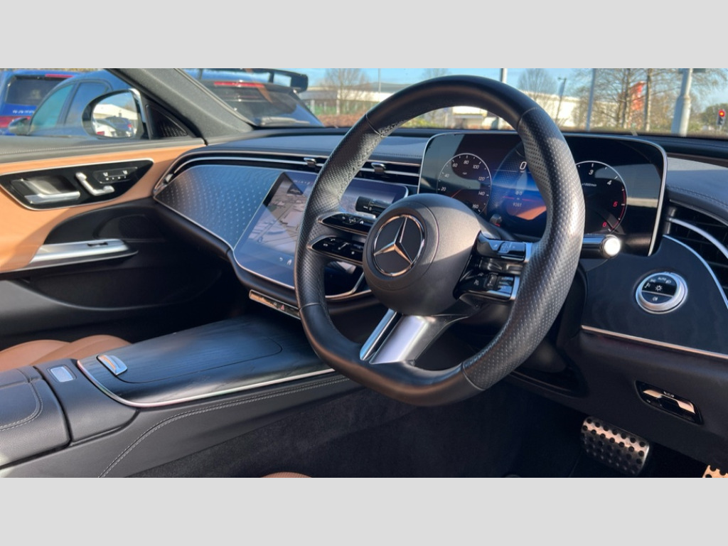 Mercedes-Benz E Class E220d AMG Line Advanced 4dr 9G-Tronic 12.3" Driver display screen, 14.4" central media display, 5G Communications module, Attention assist, Augmented reality navigation, Blind spot assist, Brake wear warning display, Direct steer speed sensitive steering, ECO start/stop function, Emergency call assistance, Evasive manoeuvre support, Fluorescent jacket for driver, Hard disc navigation, Head up Display, MBUX navigation premium, MBUX voice control, Mercedes connect me, Outside temperature display, Preinstallation for live traffic, Remote Services Premium, Service indicator (ASSYST), Status display for rear seat belts in instrument cluster, Trip computer in multifunction display showing current fuel consumption, Wireless charging, Wireless smartphone integration with Apple CarPlay and Android auto, 48V Mild hybrid technology, 66 litre fuel tank, 9G TRONIC automatic transmission, Agility control suspension with selective damping and lowering, Bluetec emission control, Diesel particulate filter, Integrated starter generator Gen 2, Sporty engine sound system, DAB Digital radio, Preinstallation for MBUX Entertainment Plus, 3rd brake light, Adaptive brake lights, Aerial integrated in rear window, AMG bodystyling, Auto dimming driver's door mirror, Auto dimming rear view mirror, Black radiator grille, Digital air vent control, Electric folding door mirrors, Electric windows with one touch opening/closing and obstruction sensors, Electrically adjustable and heated door mirrors, Heat insulating privacy glass, LED daytime running lights, LED digital light with adaptive highbeam assist plus, Pre-installation for roof rail systems, Rear boot, Rear side wing doors, Surround lighting with logo projection, 3 seat bench in 2nd row, 4 way lumbar support, Ambient lighting, AMG brushed stainless steel sports pedals with rubber studs, AMG floor mats, AMG line interior, Automatic child seat recognition sensor, Central stowage compartment with USB socket for use with Android Auto and Apple CarPlay, Comfort seats, Courtesy lights in rear grab handles with reading light functionality, Folding rear seat backrest, Front centre armrest with stowage compartment, Glove compartment - lockable, air conditioned and illuminated, Head restraints for driver and front passenger (four-way adjustability) and in rear (two-way), Heated front seats, Illuminated door sills, Multifunction sports steering wheel in nappa leather, Roof liner in black fabric, Seat occupancy sensor for front passenger seat, Single front passenger seat, Sunvisors with illuminated vanity mirrors, Thermotronic 4 zone climate control, Leather package - E Class, Memory package - E Class, Parking package with 360 degree camera - E Class, USB plus package - E Class, 3x3 point rear seatbelts, Active bonnet pedestrian safety measure which detects an impact and raises bonnet, Adaptive brake system with HOLD function and brake drying in the wet, Anti-lock braking system (ABS), Automatic front passenger airbag deactivation, Central airbag, Childproof locks manually operated for rear doors and electrically operated for rear power windows, Driver and adaptive front passenger airbags, Electronic parking brake, Electronic Stability Programme, Hill start assist, ISOFIX child seat attachment points two outer rear seats, Knee airbags, Pedestrian protection, Pre-Safe anticipatory safety system, Tyre pressure monitoring system, Warning triangle and first aid kit, Window airbags, Alarm system with interior monitoring, Central locking with interior switch, automatic locking and crash sensor with emergency opening function, Dashcam, Digital vehicle key, Guard 360 degree vehicle protection plus, Increased anti theft protection, Keyless Go, Urban guard vehicle protection plus, Open pore black ash backlit wood trim with laser cut Mercedes Benz star pattern and open pore black ash wood centre console, 19" AMG 5 twin spoke alloy wheels, Summer tyres, Tirefit