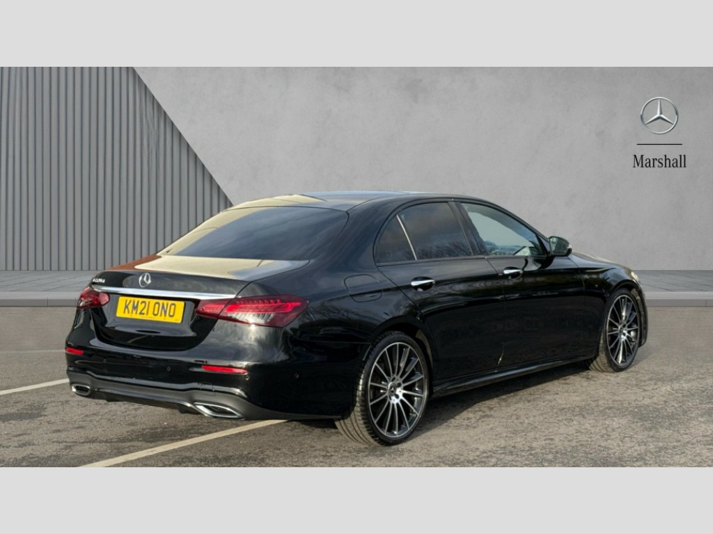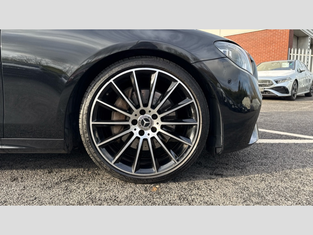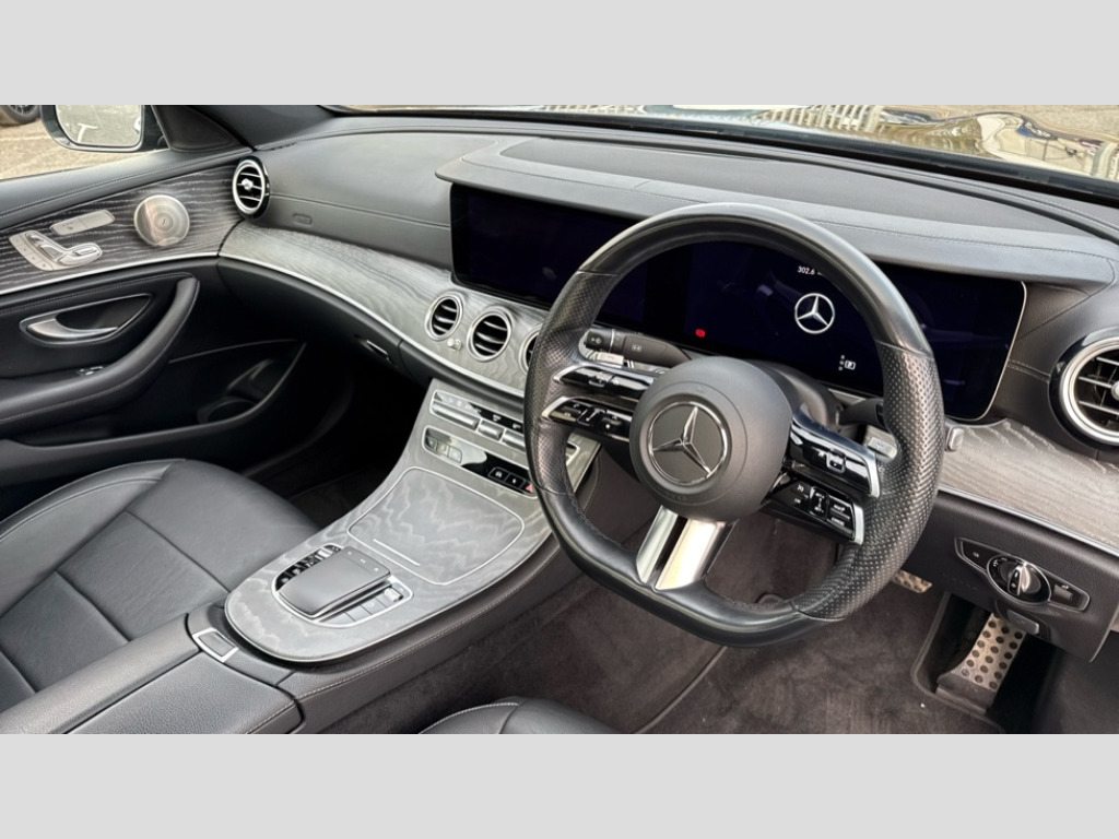 Mercedes-Benz E Class E220d AMG Line Night Edition Prem+ 4dr 9G-Tronic Attention assist, Brake wear warning display, Cockpit display 12.3" widescreen digital instrument cluster, Direct steer speed sensitive steering, DYNAMIC SELECT with a choice of driving modes (ECO, Comfort, Sport, Sport+ and Individual), ECO start/stop function, High resolution 12.3" multimedia colour display, MBUX augumented reality for navigation, MBUX voice control activated by keywords "Hey Mercedes", Mercedes connect me, Outside temperature display, Remote boot release, Service indicator (ASSYST), Smartphone integration via Android Auto/Apple CarPlay, Media Interface, USB and Bluetooth interface, Status display for rear seat belts in instrument cluster, Touchpad with controller, Traffic sign assist, Trip computer in multifunction display showing current fuel consumption, Wireless charging, 25 litre AdBlue tank, 66 litre fuel tank, 9G TRONIC 9 speed automatic transmission, Agility control sports suspension with selective damping system and lowered by 15mm, Diesel particulate filter, Incorrect fuelling protection, 2 USB ports in centre console, 2 USB ports in the rear, Burmester surround sound system with 13 speakers and a 9 channel amplifier with total output of 590 watts, MBUX multimedia system with DAB digital radio and touchpad including satellite navigation, Adaptive brake lights, Aerial integrated in rear window, AMG bodystyling front and rear aprons and side sill panels, Chrome pins diamond radiator grille, surround in high gloss black, single louvre in chrome with insert in high gloss black and integral star, Electric windows with one touch opening/closing and obstruction sensors, Electrically adjustable and heated door mirrors, Front apron in high gloss black, High gloss black exterior mirror housing, High gloss black rear bumper with chrome trim, Illuminated front door sill panels with Mercedes-Benz lettering, LED rear lights, Multibeam LED Intelligent Light System with Adaptive Highbeam Assist, Panoramic electric glass sunroof, Pre-installation for roof rail systems, Privacy glass Includes rear side windows and rear windscreen, Radiator grille with integral star and 2 louvres in high gloss black, Rain sensing windscreen wipers, Tail lights, Top surround of side windows in polished aluminium, Visible twin pipe exhaust system integrated into bumper, Waistline trim strip in high gloss black, 3 spoke multifunction flat bottom AMG steering wheel with chrome inserts and touch control buttons, trimmed in black nappa leather, 40:20:40 split folding rear bench seat, Artico man-made leather upper dashboard and beltlines with contrast stitching, Automatic child seat recognition sensor, Black door pins, Black roof lining, Central stowage compartment with 12 V socket in centre console, USB socket for use with Android Auto and Apple CarPlay, Courtesy lights in rear grab handles with reading light functionality, Floor mats with AMG lettering, Front centre armrest with stowage compartment, Glasses compartment in overhead control panel, Glove compartment - lockable, air conditioned and illuminated, Head restraints for driver and front passenger (four-way adjustability) and in rear (two-way), Heated front seats, Interior lighting - 64 colour Ambient lighting, Leather upholstery, Seat occupancy sensor for front passenger seat, Sports pedals in brushed stainless steel with black rubber studs, Steering column electrically adjustable for height and reach, Steering wheel multifunction with gearshift paddles, Steering wheel touch control buttons for audio and onboard settings, Sunvisors with illuminated vanity mirrors, THERMOTRONIC automatic climate control system with 3 climate zones, Energizing comfort package - E Class, Keyless Go comfort pack - E Class, Memory pack - E Class, Mirror pack - E Class, Parking package including 360 degree camera - E Class, Stowage pack - E Class, 3x3 point rear seatbelts, Active bonnet pedestrian safety measure which detects an impact and raises bonnet, Adaptive brake system with HOLD function and brake drying in the wet, Airbags - sidebag for driver and front passenger with combined thorax/pelvis bag, Anti-lock braking system (ABS), Childproof locks manually operated for rear doors and electrically operated for rear power windows, Driver and adaptive front passenger airbags, Drivers knee airbag, Electronic parking brake, Electronic Stability Programme, Hill start assist, ISOFIX child seat attachment points two outer rear seats, Perforated brake discs with Mercedes Benz lettering, Pre-Safe anticipatory safety system, Tyre pressure monitoring system, Warning triangle and first aid kit, Window airbags, Alarm system/interior protection/immobiliser, Central locking with interior switch, automatic locking and crash sensor with emergency opening function, Chrome surround in electric key, Grey open pore ash wood trim and centre console in grey open pored ash wood, 20" AMG multi spoke light alloy wheels painted in high gloss black with high sheen finsih, Run flat tyres