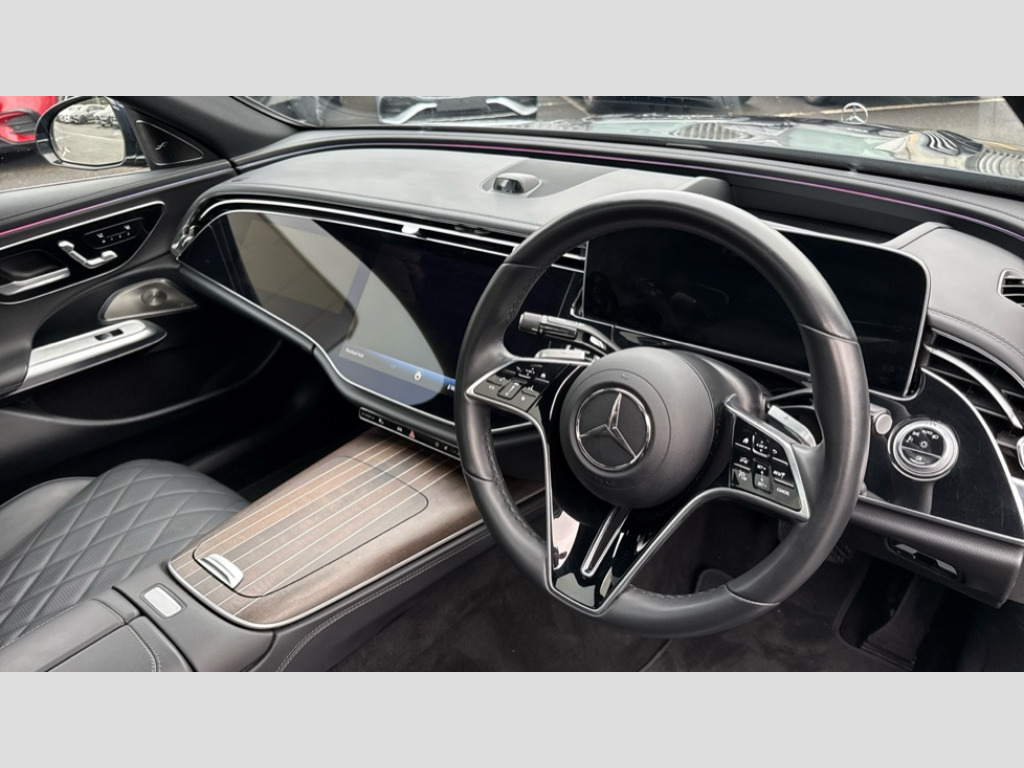 Mercedes-Benz E Class E220d Exclusive Edition 4dr 9G-Tronic 12.3" 3D driver display, 14.4" central media display, 5G Communications module, Attention assist, Augmented reality navigation, Blind spot assist, Brake wear warning display, Direct steer speed sensitive steering, ECO start/stop function, Emergency call assistance, Evasive manoeuvre support, Fluorescent jacket for driver, Hard disc navigation, Head up Display, MBUX Interior assistant, MBUX navigation premium, MBUX voice control, Mercedes connect me, Outside temperature display, Preinstallation for live traffic, Remote bootlid closing, Remote Services Premium, Selfie and video camera, Service indicator (ASSYST), Status display for rear seat belts in instrument cluster, Trip computer in multifunction display showing current fuel consumption, Wireless charging, Wireless smartphone integration with Apple CarPlay and Android auto, 48V Mild hybrid technology, 66 litre fuel tank, 9G TRONIC automatic transmission, Agility control suspension with selective damping and lowering, Bluetec emission control, Diesel particulate filter, Integrated starter generator Gen 2, Residual engine heat utilisation, Burmester 4D premium sound system, DAB Digital radio, Preinstallation for MBUX Entertainment Plus, Sound visualisation, 3rd brake light, Acoustic glass, Adaptive brake lights, Aerial integrated in rear window, Auto dimming driver's door mirror, Auto dimming rear view mirror, Black radiator grille illuminated with Mercedes-Benz start pattern, Digital air vent control, Electric folding door mirrors, Electric windows with one touch opening/closing and obstruction sensors, Electrically adjustable and heated door mirrors, Exclusive bodystyling including classic bonnet mounted Mercedes Benz star, Heat insulating privacy glass, LED daytime running lights, LED digital light including projection functions with adaptive highbeam assist plus, Panoramic sliding sunroof, Pre-installation for roof rail systems, Rear boot, Rear side wing doors, Surround lighting with logo projection, 3 seat bench in 2nd row, 4 way lumbar support, Active ambient lighting, AMG brushed stainless steel sports pedals with rubber studs, Automatic child seat recognition sensor, Central stowage compartment with USB socket for use with Android Auto and Apple CarPlay, Climatised front seats, Comfort seats, Courtesy lights in rear grab handles with reading light functionality, Exclusive interior, Folding rear seat backrest, Front centre armrest with stowage compartment, Glove compartment - lockable, air conditioned and illuminated, Head restraints for driver and front passenger (four-way adjustability) and in rear (two-way), Heated front seats, Illuminated door sills, Instrument panel and door beltlines in artico nappa leather, Multifunction steering wheel in nappa leather, Nappa leather upholstery, Roof liner in black fabric, Seat occupancy sensor for front passenger seat, Single front passenger seat, Sunvisors with illuminated vanity mirrors, Thermotronic 4 zone climate control, Velour floor mats, Energizing package - E Class, Keyless Go comfort package - E Class, Memory package - E Class, Parking package with 360 degree camera - E Class, USB plus package - E Class, 3x3 point rear seatbelts, Active bonnet pedestrian safety measure which detects an impact and raises bonnet, Adaptive brake system with HOLD function and brake drying in the wet, Anti-lock braking system (ABS), Automatic front passenger airbag deactivation, Central airbag, Childproof locks manually operated for rear doors and electrically operated for rear power windows, Driver and adaptive front passenger airbags, Electronic parking brake, Electronic Stability Programme, Hill start assist, ISOFIX child seat attachment points two outer rear seats, Knee airbags, Pedestrian protection, Pre-Safe anticipatory safety system, Tyre pressure monitoring system, Warning triangle and first aid kit, Window airbags, Alarm system with interior monitoring, Central locking with interior switch, automatic locking and crash sensor with emergency opening function, Dashcam, Digital vehicle key, Guard 360 degree vehicle protection plus, Increased anti theft protection, Urban guard vehicle protection plus, Open pore brown maple wood with aluminium lines centre console trim, 21" Exclusive multispoke alloy wheels, Noise reduced tyres, Summer tyres, Tirefit