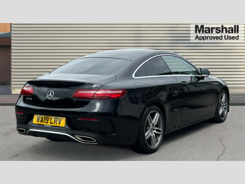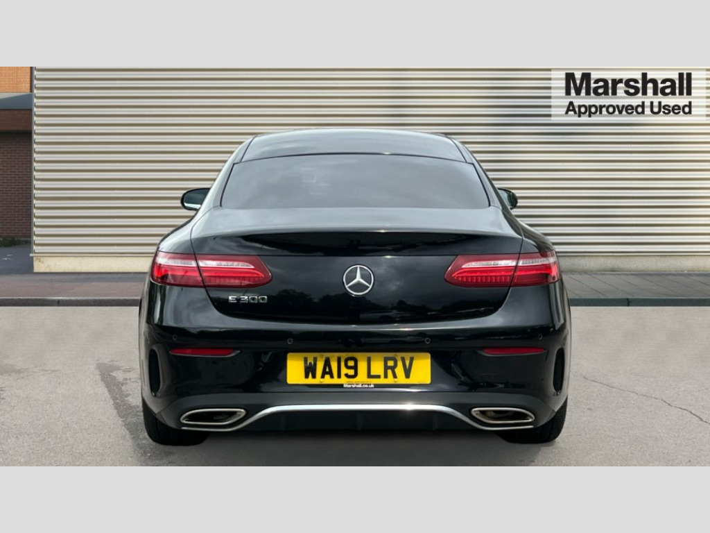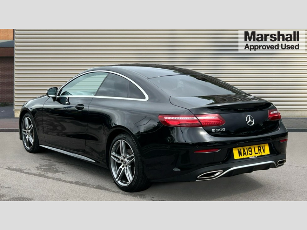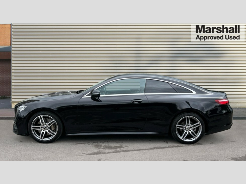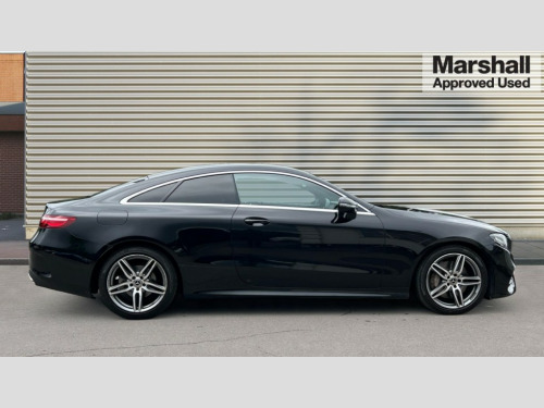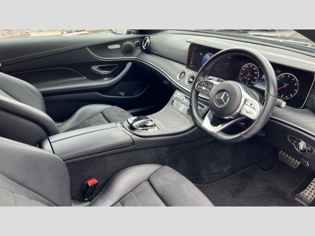 Mercedes-Benz E Class E300 AMG Line 2dr 9G-Tronic Active parking assist including front and rear parking sensors, Analogue clock, Attention assist, Blind spot assist, Bluetooth interface for hands free telephone, Brake wear warning display, Cockpit display 12.3" widescreen digital instrument cluster, Collision prevention assist plus, Direct steer speed sensitive steering, Direct steering, DYNAMIC SELECT with a choice of driving modes (ECO, Comfort, Sport, Sport+ and Individual), ECO start/stop function, Engine start/stop button, High resolution 12.3" multimedia colour display, Mercedes connect me, Multi function trip computer, Outside temperature display, Remote boot release, Reversing camera, SD card based satellite navigation system, Service indicator (ASSYST), Status display for rear seat belts in instrument cluster, Touchpad with control wheel, 66 litre fuel tank, Agility control sports suspension with selective damping system, 2 USB ports in centre console, Audio 20 with USB, touchpad and control wheel with Media Interface with Bluetooth interface and hands-free function, DAB Digital radio, Adaptive brake lights, AMG bodystyling front and rear aprons, side skirts, AMG boot lid spoiler in body colour, AMG front, rear apron and side skirts, Body colour door handles, Body coloured bumpers, Electric windows with one touch opening/closing and obstruction sensors, Exterior mirrors heated and electronically adjustable, Illuminated front door sill panels with Mercedes-Benz lettering, LED high performance headlamps with integrated LED daytime running lights, Magic Vision Control heated windscreen wiper system, Pre-installation for roof rail systems, Privacy glass Includes rear side windows and rear windscreen, Rain sensing windscreen wipers, Rear LED lights, Sports exhaust system, Top surround of side windows in polished aluminium, Visible twin pipe exhaust system integrated into bumper, 3-spoke flat bottom multifunction AMG steering wheel with Touch Control buttons, trimmed in black nappa leather, 4 way adjustable front head restraints and 2 way rear head restraints, 40:20:40 split folding rear seats, Artico man-made leather upper dashboard and beltlines with contrast stitching, Automatic child seat recognition sensor, Automatic two zone climate control, Bag hook in luggage compartment, Belt feeder driver and front passenger seat belt automatically positioned within easier reach, Black roof lining, Central stowage compartment with 12 V socket in centre console, Centre armrest and door handle illumination, Chrome door pins, Easy entry seats, Floor mats with AMG lettering, Front and rear door pockets, Front centre armrest with stowage compartment, Front footwell lights, Glasses compartment in overhead control panel, Glove compartment - lockable, air conditioned and illuminated, Heated front seats, Interior lighting - 64 colour Ambient lighting, Interior rear light/integral reading lights, Isofix rear child seat fastenings, Multi contour front sports seats, Multi function steering wheel, Partial electric front seats/backrest/height adjust, Rear centre armrest with 2 cupholders + storage, Seat occupancy sensor for front passenger seat, Sports pedals in brushed stainless steel with black rubber studs, Steering column manually adjustable for height and reach, Steering wheel gearshift paddles, Steering wheel touch control buttons for audio and onboard settings, Storage net in luggage compartment, Sunvisors with illuminated vanity mirrors, Twin front cupholders, Mirror pack - E Class, Seat comfort pack - E Class, Stowage pack - E Class, Active bonnet, Active brake assist, Adaptive brake system, Adaptive driver and front passenger airbags, Anti-lock braking system (ABS), Crash sensor (auto door unlocking), Drivers knee airbag, Electric parking brake, Electronic Stability Programme, Front and rear window airbags, Front seatbelt pretensioners, Front side airbags, Head airbags, Hill hold function, Perforated front brake discs with "Mercedes-Benz" lettering, Seatbelt warning, Three point rear seat belts, Tyre pressure monitoring system, Warning triangle and first aid kit, Alarm system/interior protection/immobiliser, Central locking with interior switch, automatic locking and crash sensor with emergency opening function, Chrome surround in electric key, Keyless entry go starting function, Black open pore ash wood, Open pore black ash wood centre console, Run flat tyres
