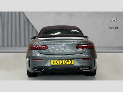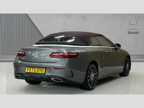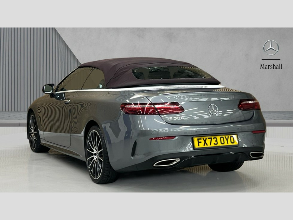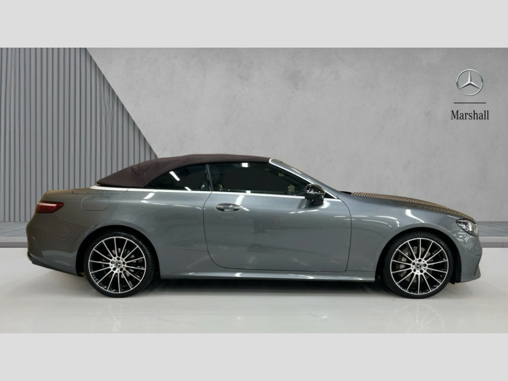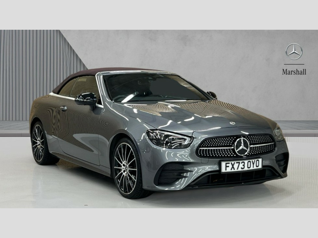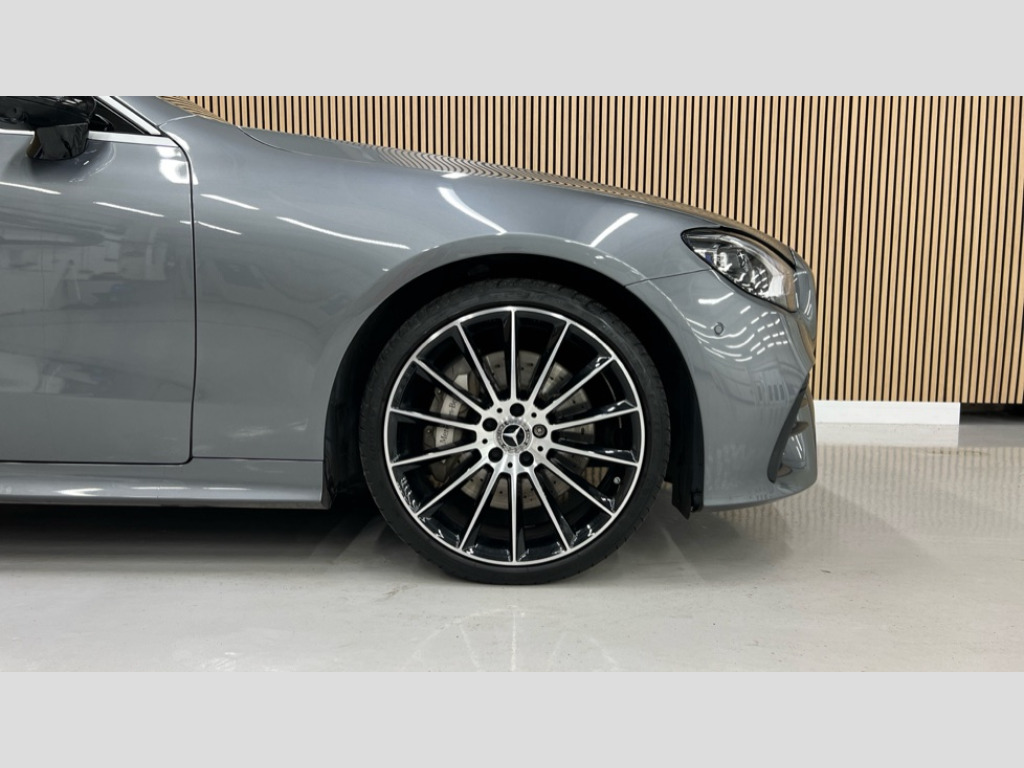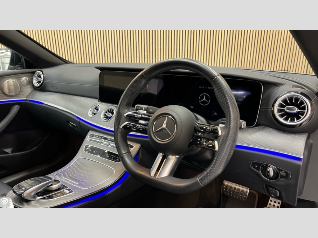 Mercedes-Benz E Class E300 AMG Line Night Ed Premium Plus 2dr 9G-Tronic 360 degree parking camera, Active parking assist including front and rear parking sensors, Analogue clock, Attention assist, Automatic boot separator, Brake wear warning display, Cockpit display 12.3" widescreen digital instrument cluster, Collision prevention assist plus, Direct steer speed sensitive steering, DYNAMIC SELECT with a choice of driving modes (ECO, Comfort, Sport, Sport+ and Individual), E-call, ECO start/stop function, High resolution 12.3" multimedia colour display, MBUX voice control activated by keywords "Hey Mercedes", Mercedes connect me, Outside temperature display, Pre-installation for Vehicle Monitoring, Pre-installation for Vehicle Setup, Remote boot release, Service indicator (ASSYST), Status display for rear seat belts in instrument cluster, Touchpad with controller, Traffic sign assist, Trip computer in multifunction display showing current fuel consumption, Wireless charging, 66 litre fuel tank, 9G TRONIC 9 speed automatic transmission, Agility control sports suspension with selective damping system, 2 USB ports in centre console, 2 USB ports in the rear, Burmester surround sound system with 13 speakers and a 9 channel amplifier with total output of 590 watts, MBUX multimedia system with DAB digital radio and touchpad including satellite navigation, Smartphone integration via Android Auto/Apple CarPlay, Media Interface, USB and Bluetooth interface and touchpad with control wheel, Acoustic soft-top with enhanced climate and noise comfort, Adaptive brake lights, Adaptive high beam assist, AIRCAP wind deflector and draught stop, AMG bodystyling front and rear aprons in polished aluminium, Body colour door handles, Body coloured bumpers, Electric windows with one touch opening/closing and obstruction sensors, Exterior mirrors heated and electronically adjustable, High gloss black exterior mirror housing, High gloss black front apron, High gloss black rear bumper with chrome trim, Illuminated front door sill panels with Mercedes-Benz lettering, LED 3rd brake light, LED daytime running lights, LED high performance headlamps, Magic Vision Control heated windscreen wiper system, Radiator grille with integral star and 2 louvres in matt iridium silver with chrome trim, Radio aerial integrated into rear window, Rain sensing windscreen wipers, Rear boot, Rear LED lights, Top surround of side windows in polished aluminium, Visible twin pipe exhaust system integrated into bumper, Waistline in polished aluminium, 2 seat bench in 2nd row, 3-spoke flat bottom multifunction AMG steering wheel with Touch Control buttons, trimmed in black nappa leather, 50/50 split folding rear seat, Airscarf - neck level heating, Artico man-made leather upper dashboard and beltlines with contrast stitching, Automatic child seat recognition sensor, Belt feeder driver and front passenger seat belt automatically positioned within easier reach, Black door pins, Black roof lining, Central stowage compartment with 12 V socket in centre console, Central stowage compartment with USB socket for use with Android Auto and Apple CarPlay, Centre armrest and door handle illumination, Centre console in grey open-pore ash wood, Floor mats with AMG lettering, Front and rear door pockets, Front centre armrest with stowage compartment, Front footwell lights, Glasses compartment in overhead control panel, Glove compartment - lockable, air conditioned and illuminated, Head restraints for driver and front passenger (four-way adjustability) and in rear (two-way), Heated front seats with partial electric adjustment and electro-pneumatic four-way lumbar support, Interior lighting - 64 colour Ambient lighting, Interior rear light/integral reading lights, Isofix rear child seat fastenings, Multi contour front sports seats, Seat occupancy sensor for front passenger seat, Single front passenger seat, Sports pedals in brushed stainless steel with black rubber studs, Steering column electrically adjustable for height and reach, Steering wheel gearshift paddles, Sunvisors with illuminated vanity mirrors, THERMOTRONIC automatic climate control system with 3 climate zones, Memory pack - E Class, Mirror pack - E Class, Night package - E Class, Stowage pack - E Class, 2 x 3-point rear seatbelts, Active bonnet pedestrian safety measure which detects an impact and raises bonnet, Adaptive brake system with HOLD function and brake drying in the wet, Adaptive driver and front passenger airbags, Airbags - sidebag for driver and front passenger with combined thorax/pelvis bag, Anti-lock braking system (ABS), Drivers knee airbag, Electric parking brake, Electronic Stability Programme, Front and rear window airbags, Head airbags, Hill hold function, Perforated front brake discs with "Mercedes-Benz" lettering, Seatbelt warning, Tyre pressure monitoring system, Warning triangle and first aid kit, Alarm system/interior protection/immobiliser, Central locking with interior switch, automatic locking and crash sensor with emergency opening function, Chrome surround in electric key, Keyless Go entry and starting function, Open-pore grey ash wood trim, 20" AMG multi spoke design alloy wheels painted in high gloss black with high sheen finish, Summer tyres, TIREFIT with tyre inflation compressor