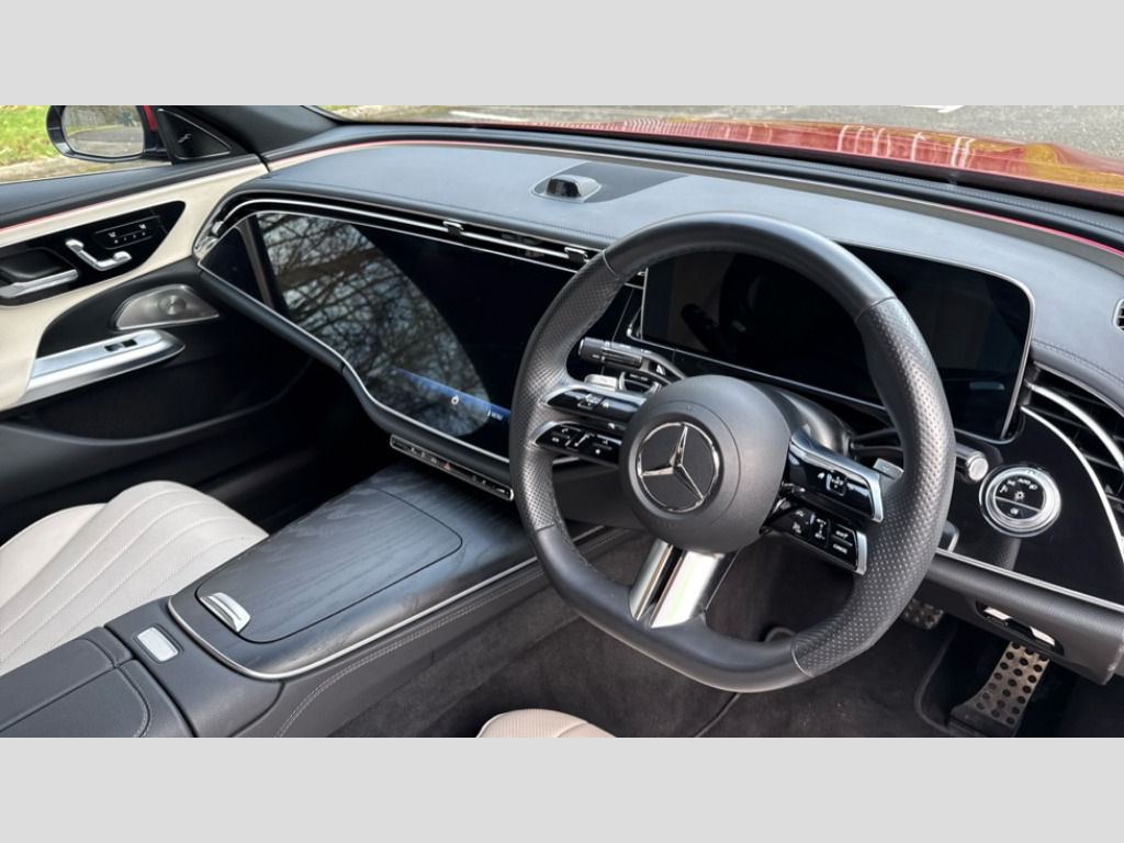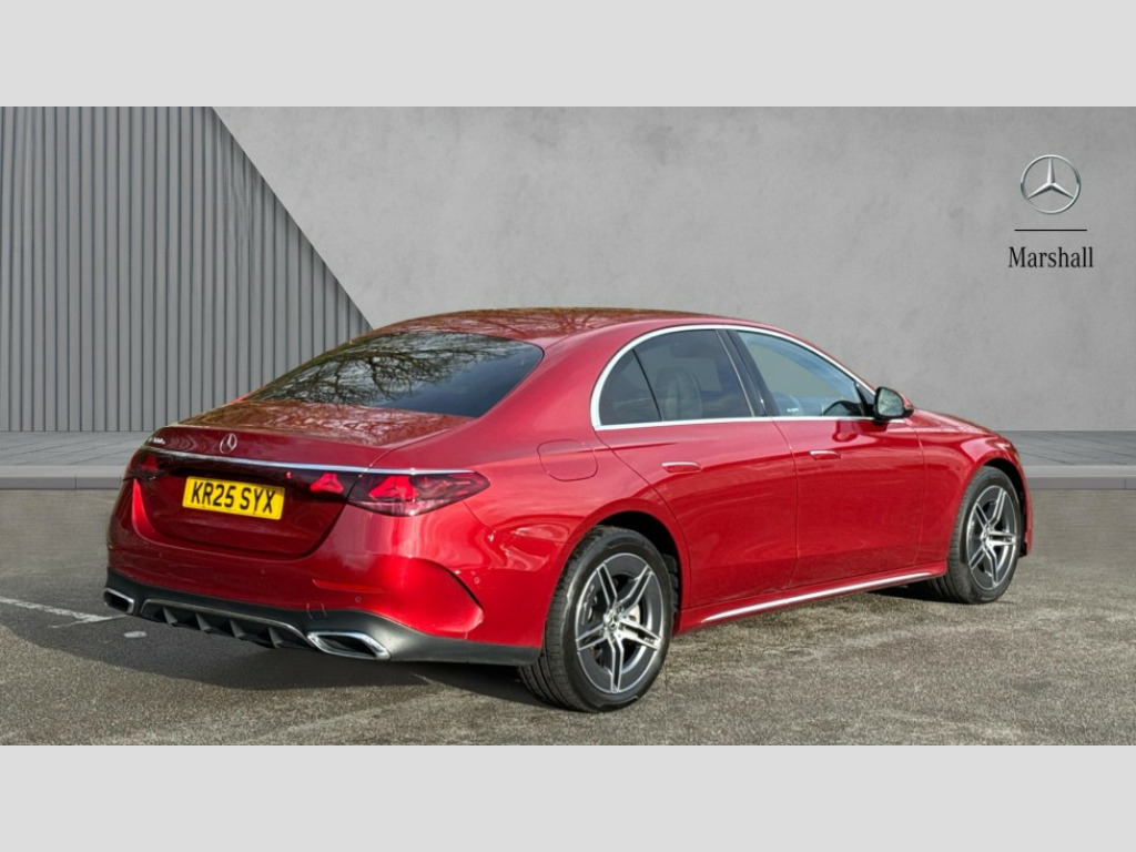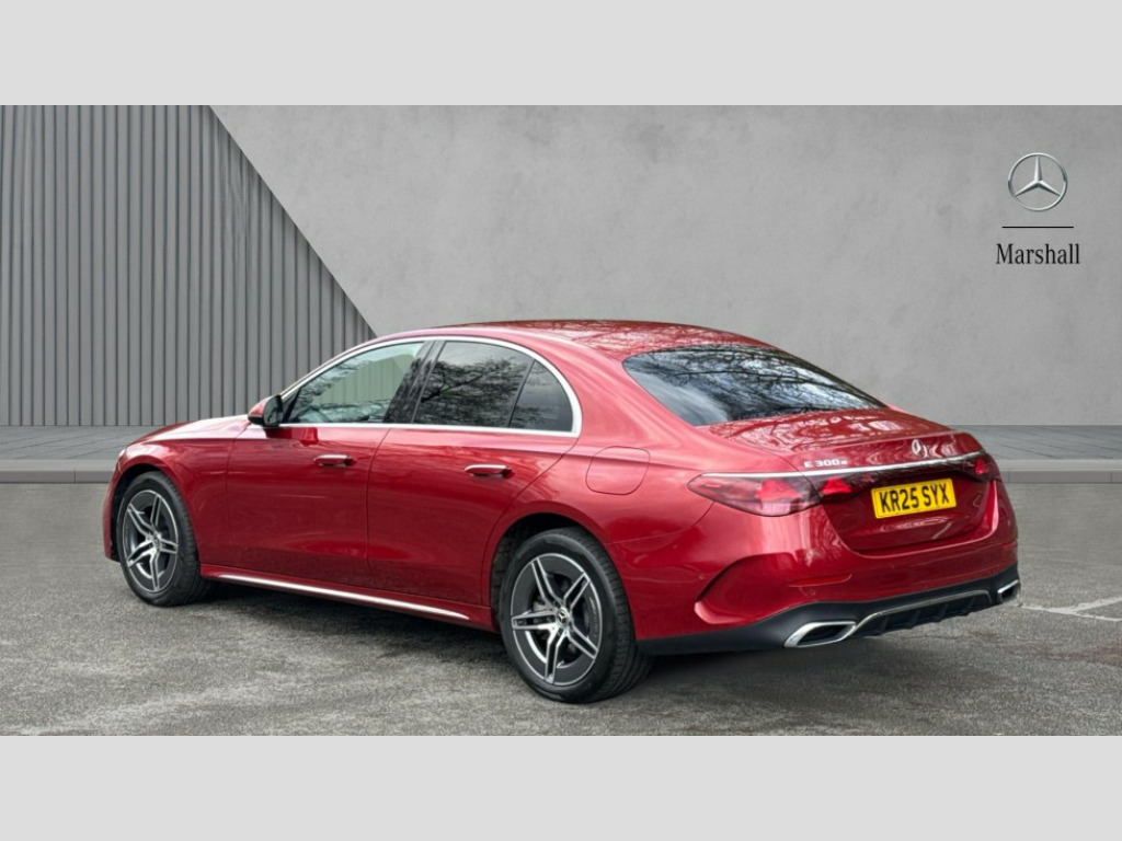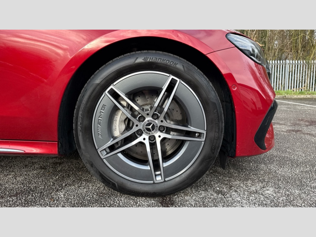 Mercedes-Benz E Class E300e AMG Line Premium 4dr 9G-Tronic 12.3" Driver display screen, 14.4" central media display, 5G Communications module, Acoustic presence indicator, Attention assist, Augmented reality navigation, Blind spot assist, Brake wear warning display, Direct steer speed sensitive steering, ECO start/stop function, Emergency call assistance, Evasive manoeuvre support, Fluorescent jacket for driver, Hard disc navigation, Head up Display, MBUX navigation premium, MBUX voice control, Mercedes connect me, Outside temperature display, Preinstallation for live traffic, Remote and charging services plus, Remote bootlid closing, Selfie and video camera, Service indicator (ASSYST), Status display for rear seat belts in instrument cluster, Trip computer in multifunction display showing current fuel consumption, Wireless charging, Wireless smartphone integration with Apple CarPlay and Android auto, 5m Domestic charging cable, 5m Public charging cable, 9G TRONIC automatic transmission, AC charging, Agility control suspension, Sporty engine sound system, Burmester 4D premium sound system, DAB Digital radio, Preinstallation for MBUX Entertainment Plus, Sound visualisation, 3rd brake light, Acoustic glass, Adaptive brake lights, Aerial integrated in rear window, AMG bodystyling, Auto dimming driver's door mirror, Auto dimming rear view mirror, Black radiator grille, Digital air vent control, Electric folding door mirrors, Electric windows with one touch opening/closing and obstruction sensors, Electrically adjustable and heated door mirrors, Heat insulating privacy glass, LED daytime running lights, LED digital light with adaptive highbeam assist plus, Pre-installation for roof rail systems, Rear boot, Rear side wing doors, Surround lighting with logo projection, 3 seat bench in 2nd row, 4 way lumbar support, Active ambient lighting, AMG brushed stainless steel sports pedals with rubber studs, AMG floor mats, AMG line interior, Automatic child seat recognition sensor, Central stowage compartment with USB socket for use with Android Auto and Apple CarPlay, Comfort seats, Courtesy lights in rear grab handles with reading light functionality, Folding rear seat backrest, Front centre armrest with stowage compartment, Glove compartment - lockable, air conditioned and illuminated, Head restraints for driver and front passenger (four-way adjustability) and in rear (two-way), Heated front seats, Illuminated door sills, Multifunction sports steering wheel in nappa leather, Roof liner in black fabric, Seat occupancy sensor for front passenger seat, Single front passenger seat, Sunvisors with illuminated vanity mirrors, Thermotronic 4 zone climate control, Keyless Go comfort package - E Class, Leather package - E Class, Memory package - E Class, Parking package with 360 degree camera - E Class, USB plus package - E Class, 3x3 point rear seatbelts, Active bonnet pedestrian safety measure which detects an impact and raises bonnet, Adaptive brake system with HOLD function and brake drying in the wet, Anti-lock braking system (ABS), Automatic front passenger airbag deactivation, Central airbag, Childproof locks manually operated for rear doors and electrically operated for rear power windows, Driver and adaptive front passenger airbags, Electronic parking brake, Electronic Stability Programme, Hill start assist, ISOFIX child seat attachment points two outer rear seats, Knee airbags, Pedestrian protection, Pre-Safe anticipatory safety system, Tyre pressure monitoring system, Warning triangle and first aid kit, Window airbags, Alarm system with interior monitoring, Central locking with interior switch, automatic locking and crash sensor with emergency opening function, Dashcam, Digital vehicle key, Guard 360 degree vehicle protection plus, Increased anti theft protection, Urban guard vehicle protection plus, Open pore black ash wood centre console trim, 19" AMG 5 twin spoke bi colour alloy wheels, Summer tyres, Tirefit