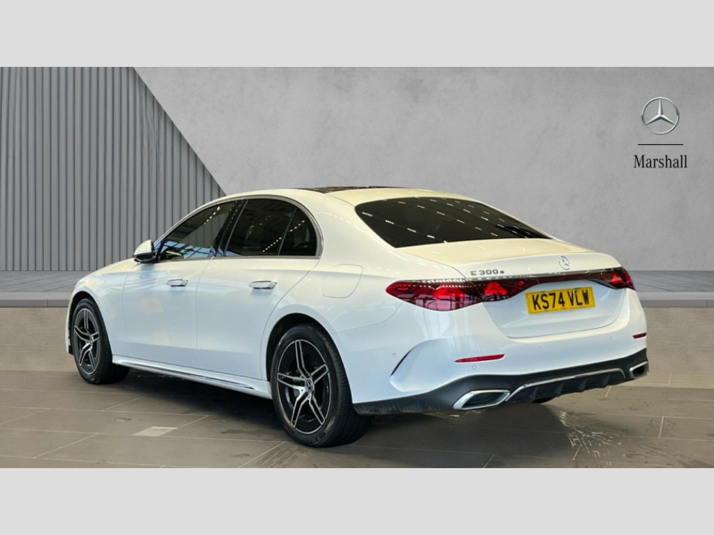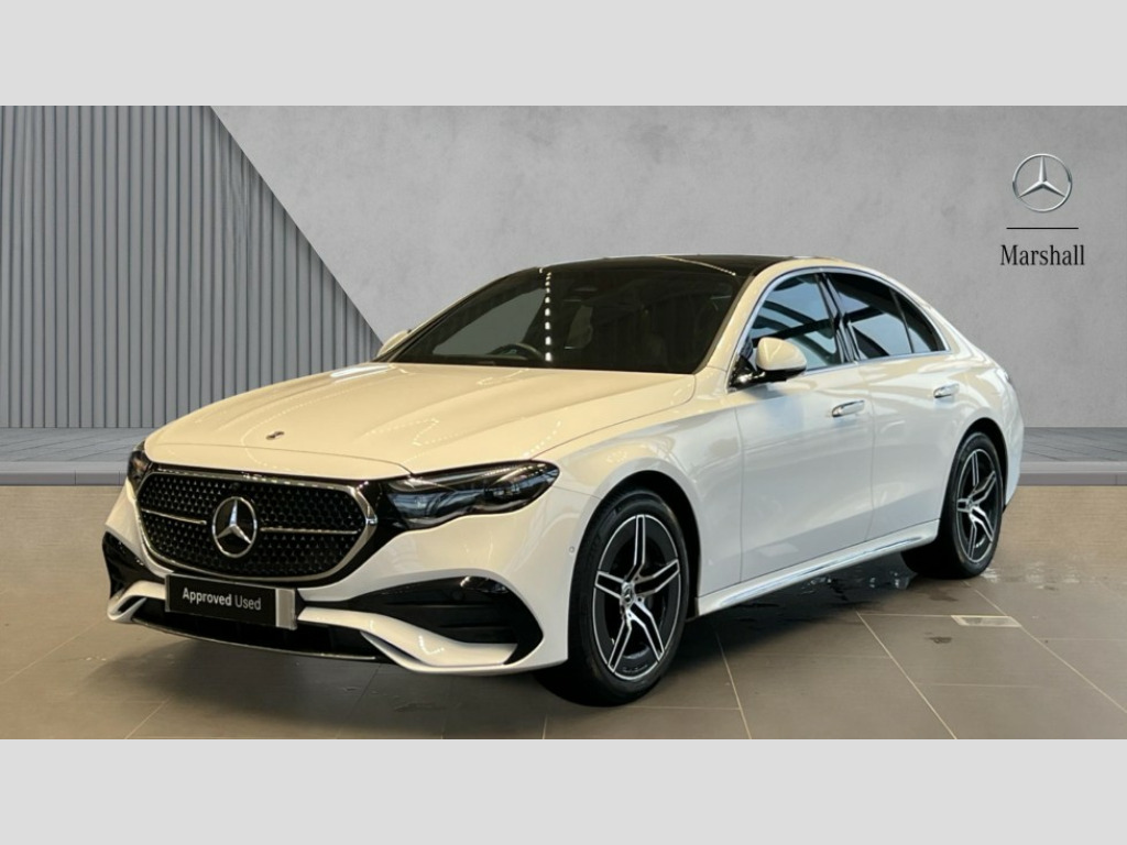Mercedes-Benz E Class E300e AMG Line Premium 4dr 9G-Tronic 12.3" Driver display screen, 14.4" central media display, 5G Communications module, Acoustic presence indicator, Attention assist, Augmented reality navigation, Blind spot assist, Brake wear warning display, Direct steer speed sensitive steering, ECO start/stop function, Emergency call assistance, Evasive manoeuvre support, Fluorescent jacket for driver, Hard disc navigation, Head up Display, MBUX navigation premium, MBUX voice control, Mercedes connect me, Outside temperature display, Preinstallation for live traffic, Remote and charging services plus, Remote bootlid closing, Selfie and video camera, Service indicator (ASSYST), Status display for rear seat belts in instrument cluster, Trip computer in multifunction display showing current fuel consumption, Wireless charging, Wireless smartphone integration with Apple CarPlay and Android auto, 5m Domestic charging cable, 5m Public charging cable, 9G TRONIC automatic transmission, AC charging, Agility control suspension, Sporty engine sound system, Burmester 4D premium sound system, DAB Digital radio, Preinstallation for MBUX Entertainment Plus, Sound visualisation, 3rd brake light, Acoustic glass, Adaptive brake lights, Aerial integrated in rear window, AMG bodystyling, Auto dimming driver's door mirror, Auto dimming rear view mirror, Black radiator grille, Digital air vent control, Electric folding door mirrors, Electric windows with one touch opening/closing and obstruction sensors, Electrically adjustable and heated door mirrors, Heat insulating privacy glass, LED daytime running lights, LED digital light with adaptive highbeam assist plus, Pre-installation for roof rail systems, Rear boot, Rear side wing doors, Surround lighting with logo projection, 3 seat bench in 2nd row, 4 way lumbar support, Active ambient lighting, AMG brushed stainless steel sports pedals with rubber studs, AMG floor mats, AMG line interior, Automatic child seat recognition sensor, Central stowage compartment with USB socket for use with Android Auto and Apple CarPlay, Comfort seats, Courtesy lights in rear grab handles with reading light functionality, Folding rear seat backrest, Front centre armrest with stowage compartment, Glove compartment - lockable, air conditioned and illuminated, Head restraints for driver and front passenger (four-way adjustability) and in rear (two-way), Heated front seats, Illuminated door sills, Multifunction sports steering wheel in nappa leather, Roof liner in black fabric, Seat occupancy sensor for front passenger seat, Single front passenger seat, Sunvisors with illuminated vanity mirrors, Thermotronic 4 zone climate control, Keyless Go comfort package - E Class, Leather package - E Class, Memory package - E Class, Parking package with 360 degree camera - E Class, USB plus package - E Class, 3x3 point rear seatbelts, Active bonnet pedestrian safety measure which detects an impact and raises bonnet, Adaptive brake system with HOLD function and brake drying in the wet, Anti-lock braking system (ABS), Automatic front passenger airbag deactivation, Central airbag, Childproof locks manually operated for rear doors and electrically operated for rear power windows, Driver and adaptive front passenger airbags, Electronic parking brake, Electronic Stability Programme, Hill start assist, ISOFIX child seat attachment points two outer rear seats, Knee airbags, Pedestrian protection, Pre-Safe anticipatory safety system, Tyre pressure monitoring system, Warning triangle and first aid kit, Window airbags, Alarm system with interior monitoring, Central locking with interior switch, automatic locking and crash sensor with emergency opening function, Dashcam, Digital vehicle key, Guard 360 degree vehicle protection plus, Increased anti theft protection, Urban guard vehicle protection plus, Open pore black ash wood centre console trim, 19" AMG 5 twin spoke bi colour alloy wheels, Summer tyres, Tirefit