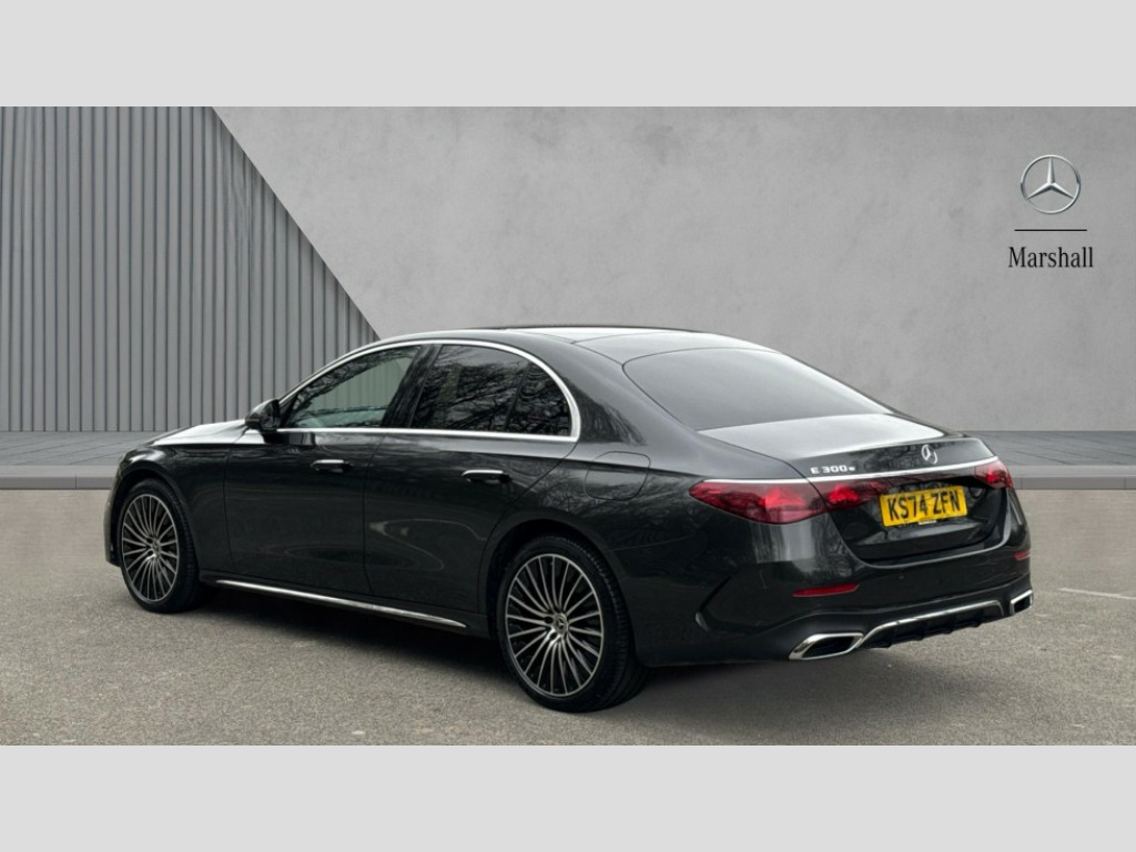 Mercedes-Benz E Class E300e AMG Line Premium Plus 4dr 9G-Tronic 12.3" high resolution cockpit display, 14.4" high resolution central media display with latest MBUX generation, 5G Communications module, Acoustic presence indicator, Attention assist, Blind spot assist, Bluetooth, Brake wear warning display, Direct steer speed sensitive steering, ECO start/stop function, Evasive manoeuvre support, Fingerprint scanner, Fluorescent jacket for driver, Hard disc navigation, Head up Display, MBUX navigation premium, MBUX voice control, Mercedes me connect including emergency call system, accident recovery, breakdown and maintenance management, Outside temperature display, Preinstallation for digital vehicle key, Preinstallation for live traffic, Remote and charging services plus, Remote bootlid closing, Remote Services Premium, Service indicator (ASSYST), Status display for rear seat belts in instrument cluster, Trip computer in multifunction display showing current fuel consumption, Wireless charging, Wireless smartphone integration with Apple CarPlay and Android auto, 60 litre fuel tank with 10 litre reserve, 9G TRONIC automatic transmission, AC charging, Charging cable for household socket, DC charging, Mode 3 charging cable for public charging and domestic charging stations, Residual engine heat utilisation, Sporty engine sound system, Burmester 4D surround sound system, DAB Digital radio, Preinstallation for MBUX Entertainment Plus, Sound visualisation, 3rd brake light, Adaptive brake lights, Aerial integrated in rear window, AMG Line exterior, Auto dimming driver's door mirror, Auto dimming rear view mirror, Digital air vent control, Electric folding door mirrors, Electric windows with one touch opening/closing and obstruction sensors, Electrically adjustable and heated door mirrors, EQ badging, Heat insulating privacy glass, Illuminated front door sills, interchangeable cover with 'Mercedes-Benz' lettering, Illuminated radiator grille, LED daytime running lights, LED digital light with adaptive highbeam assist plus, Panoramic sliding sunroof, Pre-installation for roof rail systems, Rear boot, Rear side wing doors, Surround lighting with logo projection, 3 seat bench in 2nd row, Active ambient lighting, AMG brushed stainless steel sports pedals with rubber studs, AMG floor mats, AMG line interior, Automatic child seat recognition sensor, Central stowage compartment with USB socket for use with Android Auto and Apple CarPlay, Comfort seats, Courtesy lights in rear grab handles with reading light functionality, Folding rear seat backrest, Front centre armrest with stowage compartment, Gearshift paddles in galvanised silver, Glove compartment - lockable, air conditioned and illuminated, Heated front seats, Heated steering wheel, Instrument panel and door beltlines in artico nappa look leather, Leather upholstery, Luxury front head restraints, Multifunction sports steering wheel in nappa leather, Roof liner in black fabric, Seat occupancy sensor for front passenger seat, Single front passenger seat, Steering wheel touch control buttons for audio and onboard settings, Sunvisors with illuminated vanity mirrors, THERMATIC 2 zone automatic climate control, Acoustic comfort pack - E Class, Energizing plus package with air balance - E Class, Keyless Go comfort package - E Class, MBUX superscreen pack - E Class, Memory package - E Class, Night pack - E class, Parking package with 360 degree camera - E Class, USB plus package - E Class, Winter pack - E Class, 3x3 point rear seatbelts, Active bonnet pedestrian safety measure which detects an impact and raises bonnet, Adaptive brake system with HOLD function and brake drying in the wet, Anti-lock braking system (ABS), Automatic front passenger airbag deactivation, Central airbag, Childproof locks manually operated for rear doors and electrically operated for rear power windows, Driver and adaptive front passenger airbags, Electronic parking brake, Electronic Stability Programme, Hill start assist, ISOFIX child seat attachment points two outer rear seats, Knee airbags, Pedestrian protection, Pre-Safe anticipatory safety system, Tyre pressure monitoring system, Warning triangle and first aid kit, Window airbags, Alarm system/interior protection/immobiliser, Central locking with interior switch, automatic locking and crash sensor with emergency opening function, Digital vehicle key, Guard 360 degree vehicle protection plus, Increased anti theft protection, Urban guard vehicle protection plus, Centre console in black open pore ash wood trim and superscreen with passenger screen, 20" AMG multispoke design alloy wheels with black painted inserts and high sheen finish, Noise reduced tyres, Summer tyres, Tirefit