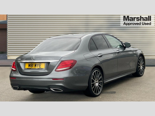 Mercedes-Benz E Class E350d AMG Line Night Edition Prem + 4dr 9G-Tronic Active parking assist and 360 camera, Analogue clock, Attention assist, Blind spot assist, Boot release from drivers seat, Brake wear warning light, COMAND online HDD navigation with media interface with 12.3 inch colour display,WLAN/Wi-Fi hotspot, Car-to-X Communication, Direct steer speed sensitive steering, DYNAMIC SELECT with a choice of driving modes (ECO, Comfort, Sport, Sport+ and Individual), Mercedes connect me, Multi function trip computer, Outside temperature display, Remote boot release, Service indicator (ASSYST), Status display for rear seat belts in instrument cluster, Stop/start system, Touchpad with control wheel, Traffic sign assist, Wireless charging, 25 litre AdBlue tank, 66 litre fuel tank, Agility control sports suspension with selective damping system and lowered by 15mm, Diesel particulate filter, Incorrect fuelling protection, 2 USB ports in centre console, 2 USB ports in the rear, Burmester surround sound system with 13 speakers, DAB Digital radio, Adaptive brake lights, Aerial integrated in rear window, AMG bodystyling front and rear aprons and side skirts in polished aluminium, Body colour door handles, Chrome trim on the front bumper and high gloss black trim on the rear bumper, Electric panoramic glass sunroof, Electric windows with one touch opening/closing and obstruction sensors, Electrically adjustable and heated door mirrors, Front apron in high gloss black, Front LED fog lights with cornering function, High gloss black door mirrors, LED High Performance headlamps including integral LED daytime running lamps, LED rear lights, MULTIBEAM Intelligent Light System with Adaptive Highbeam Assist, Pre-installation for roof rail systems, Privacy glass (rear side windows and rear screen), Radiator grille with integral star and 2 louvres in high gloss black, Rain sensor windscreen wipers, Rear wiper, Top surround of side windows in polished aluminium, Visible twin exhaust tailpipe in bumper, Waistline trim strip in high gloss black, 3 spoke flat bottom AMG steering wheel with trimmed in black nappa leather, 40:20:40 split folding rear bench seat, Artico man-made leather/Microfibre Dinamica upholstery, Auto dual-zone climate control system, Auto Mercedes-Benz child seat recognition sensor, Black roof lining, Chrome door pins, Courtesy lights in rear grab handles with reading light functionality, Electric height/reach adjustable steering column, Floor mats with AMG lettering, Four way partially front electric seat adjustment, Front and rear door pockets, Front centre armrest with storage compartment, Front door sills with illuminated Mercedes lettering, Glasses compartment in overhead control panel, Head restraints for driver and front passenger (four-way adjustability) and in rear (two-way), Heated front seats, Interior lighting - 64 colour Ambient lighting, Interior rear light/integral reading lights, Lockable/illuminated air conditioned glovebox, Sports pedals in brushed stainless steel with black rubber studs, Steering column electrically adjustable for height and reach, Steering wheel multifunction with gearshift paddles, Steering wheel touch control buttons for audio and onboard settings, Storage compartment with 12V socket in centre console, Sunvisors with illuminated vanity mirrors, Keyless Go comfort pack - E Class, Memory pack - E Class, Mirror pack - E Class, Parking package including 360 degree camera - E Class, Seat comfort pack - E Class, Stowage pack - E Class, 3x3 point rear seatbelts, Active bonnet, Active brake assist, Adaptive brake system with HOLD function and brake drying in the wet, Anti-lock braking system (ABS), Black seat belts, Childproof locks manually operated for rear doors and electrically operated for rear power windows, Driver and passenger side/thorax airbags, Driver/front passenger airbag, Drivers knee airbag, Electronic parking brake, Electronic Stability Programme, Hill hold assist, Hill start assist, ISOFIX child seat attachment points two outer rear seats, Perforated front brake discs with "Mercedes-Benz" lettering, Pre-Safe anticipatory safety system, Seat occupancy sensor, Seatbelt warning, Tyre pressure monitoring system, Warning triangle and first aid kit, Window airbags, Alarm system/interior protection/immobiliser, Central locking with interior switch, automatic locking and crash sensor with emergency opening function, Chrome surround in electric key, Black open pore ash wood dashboard and door trim + Centre console in black open pored ash wood, Contrast stitching, 20" AMG multi spoke light alloy wheels painted in high gloss black sheen finish - RVR, Run flat tyres