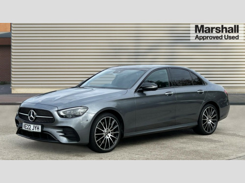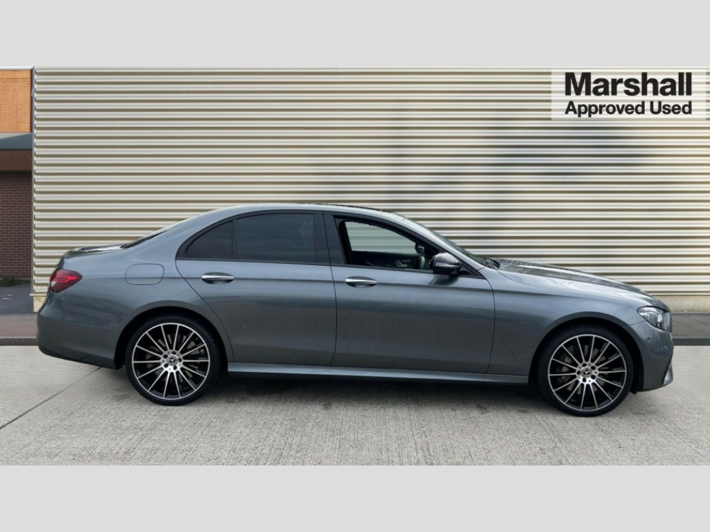 Mercedes-Benz E Class E450 4Matic AMG Line Night Ed Prem+ 4dr 9G-Tronic Attention assist, Brake wear warning display, Cockpit display 10.25" widescreen digital instrument cluster, Direct steer speed sensitive steering, DYNAMIC SELECT with a choice of driving modes (ECO, Comfort, Sport, Sport+ and Individual), ECO start/stop function, Emergency services call system, High resolution 10.25" multimedia colour display, MBUX voice control activated by keywords "Hey Mercedes", Mercedes connect me, Outside temperature display, Remote boot release, Service indicator (ASSYST), Smartphone integration via Android Auto/Apple CarPlay, Media Interface, USB and Bluetooth interface, Status display for rear seat belts in instrument cluster, Touchpad with controller, Traffic sign assist, Trip computer in multifunction display showing current fuel consumption, Wireless charging, 9G TRONIC 9 speed automatic transmission, Agility control sports suspension with selective damping system and lowered by 15mm, 2 USB ports in centre console, 2 USB ports in the rear, Burmester surround sound system with 13 speakers and a 9 channel amplifier with total output of 590 watts, MBUX multimedia system with DAB digital radio and touchpad including satellite navigation, 3rd brake light, Adaptive brake lights, Aerial integrated in rear window, AMG bodystyling front and rear aprons and side sill panels, Electric windows with one touch opening/closing and obstruction sensors, Electrically adjustable and heated door mirrors, Front apron in high gloss black, High gloss black exterior mirror housing, High gloss black rear bumper with chrome trim, Illuminated front door sill panels with Mercedes-Benz lettering, LED High Performance headlamps including integral LED daytime running lamps, LED rear lights, Panoramic electric glass sunroof, Pre-installation for roof rail systems, Privacy glass Includes rear side windows and rear windscreen, Radiator grille with integral star and 2 louvres in high gloss black, Rain sensor with automatic headlight activation, Rear boot, Rear side wing doors, Tail lights, Top surround of side windows in polished aluminium, Visible twin pipe exhaust system integrated into bumper, Waistline trim strip in high gloss black, 3 seat bench in 2nd row, 3 spoke multifunction flat bottom AMG steering wheel with chrome inserts and touch control buttons, trimmed in black nappa leather, 40:20:40 split folding rear bench seat, Artico man-made leather upper dashboard and beltlines with contrast stitching, Automatic child seat recognition sensor, Black door pins, Black roof lining, Central stowage compartment with 12 V socket in centre console, USB socket for use with Android Auto and Apple CarPlay, Courtesy lights in rear grab handles with reading light functionality, Floor mats with AMG lettering, Four way partially front electric seat adjustment, Front centre armrest with stowage compartment, Glasses compartment in overhead control panel, Glove compartment - lockable, air conditioned and illuminated, Head restraints for driver and front passenger (four-way adjustability) and in rear (two-way), Heated front seats, Interior lighting - 64 colour Ambient lighting, Leather upholstery, Seat occupancy sensor for front passenger seat, Single front passenger seat, Sports pedals in brushed stainless steel with black rubber studs, Steering column electrically adjustable for height and reach, Steering wheel multifunction with gearshift paddles, Steering wheel touch control buttons for audio and onboard settings, Sunvisors with illuminated vanity mirrors, THERMOTRONIC automatic climate control system with 3 climate zones, Mirror pack - E Class, Parking package including 360 degree camera - E Class, Seat comfort pack - E Class, Stowage pack - E Class, 3x3 point rear seatbelts, Active bonnet pedestrian safety measure which detects an impact and raises bonnet, Adaptive brake system with HOLD function and brake drying in the wet, Airbags - sidebag for driver and front passenger with combined thorax/pelvis bag, Anti-lock braking system (ABS), Childproof locks manually operated for rear doors and electrically operated for rear power windows, Driver and adaptive front passenger airbags, Drivers knee airbag, Electronic parking brake, Electronic Stability Programme, Hill start assist, ISOFIX child seat attachment points two outer rear seats, Perforated brake discs with Mercedes Benz lettering, Pre-Safe anticipatory safety system, Tyre pressure monitoring system, Warning triangle and first aid kit, Window airbags, Alarm system/interior protection/immobiliser, Central locking with interior switch, automatic locking and crash sensor with emergency opening function, Chrome surround in electric key, Keyless entry go starting function, Grey open pore ash wood trim and centre console in grey open pored ash wood, 20" AMG multi spoke light alloy wheels painted in high gloss black with high sheen finsih, Summer tyres, TIREFIT with tyre inflation compressor