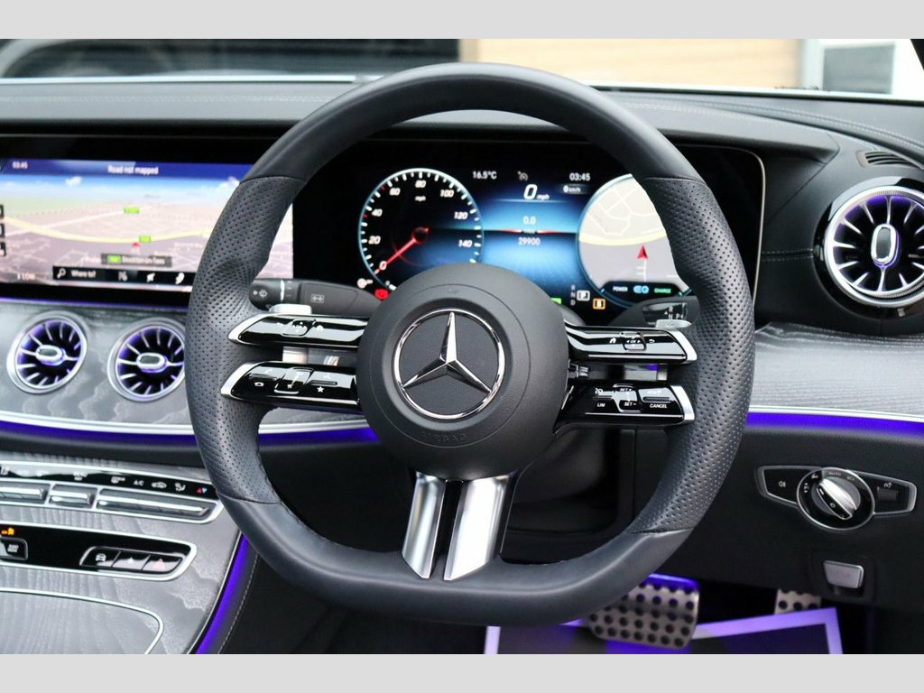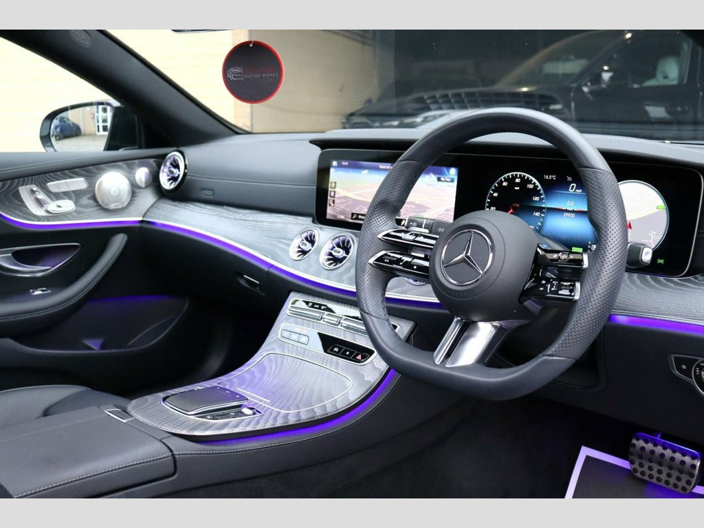 We are delighted to offer this stunning spec, 2022 Mercedes Benz E300dh 2.0 AMG Line Night Edition Premium Plus 4MATIC Coupe which is finished in High Tech Silver. Our example has had one owner from new and has only covered 29,000 miles. Offering Mercedes '4MATIC' four-wheel drive, 281bhp, striking looks and great cargo space, this car is a fantastic all-rounder. Our example boasts an extensive specification which includes: Sliding Panoramic Sunroof, Electric/Memory & Heated Front Seats, Burmester Premium Surround Sound System, Wireless Charging, Keyless Entry and 360 Surround View Cameras. This car has full Mercedes service history and has been serviced at the following mileages: 13,162 (21/04/2023), 23,654 (23/05/2024) and 28,600 (22/07/2025) and as part of this cars preparation before sale we have put a fresh MOT on the car, which has no advisories. **Cash Price £34,495.00, £3,345.00 Deposit, 48 Monthly Payments of £499.99, Guaranteed Future Minimum Value of £16,529.85, Based on 8,000 Miles Per Annum at 9.9% APR** (a) **FOR AUTOTRADER APP USERS, PLEASE SEE THE BELOW TAB 'THIS CAR COMES WITH' TO SEE THE OTHER SPEC'S ON THIS CAR OR VISIT OUR WEBSITE FOR MORE INFO** High Tech Silver, Leather - Black, Sliding Panoramic Roof, Burmester 3D Premium Surround Sound, 360 Surround View Cameras, Electric Front Seats with Memory Functio, 20" AMG Multispoke Alloys, Wireless Charging, Heated Front Seats, Keyless Entry, Apple CarPlay/Android Auto, Ambient Lighting, Dual Zone Climate Control, DAB Radio, Bluetooth, Electric Folding Mirrors, Satellite Navigation, Lane Assist, Drive Mode Select, Electric Tailgate, Rear Privacy Glass, Blind Spot Assist, Cruise Control
