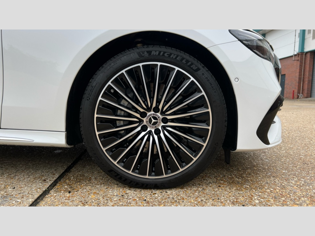 Mercedes-Benz E Class E300e AMG Line Premium Plus 4dr 9G-Tronic 12.3" high resolution cockpit display, 14.4" high resolution central media display with latest MBUX generation, 5G Communications module, Acoustic presence indicator, Attention assist, Bluetooth, Brake wear warning display, Direct steer speed sensitive steering, ECO start/stop function, Fingerprint scanner, Fluorescent jacket for driver, Hard disc navigation, Head up Display, MBUX augmented reality for navigation, MBUX navigation premium, MBUX voice control, Mercedes me connect including emergency call system, accident recovery, breakdown and maintenance management, Outside temperature display, Preinstallation for digital vehicle key, Preinstallation for live traffic, Remote and charging services plus, Remote bootlid closing, Remote Services Premium, Service indicator (ASSYST), Status display for rear seat belts in instrument cluster, Trip computer in multifunction display showing current fuel consumption, Wireless charging, Wireless smartphone integration with Apple CarPlay and Android auto, 50 litre fuel tank, 9G TRONIC automatic transmission, AC charging, Charging cable for household socket, DC charging, Mode 3 charging cable for public charging and domestic charging stations, Residual engine heat utilisation, Sporty engine sound system, Burmester 4D surround sound system, DAB Digital radio, Preinstallation for MBUX Entertainment Plus, Sound visualisation, 3rd brake light, Adaptive brake lights, Aerial integrated in rear window, AMG Line exterior, Auto dimming driver's door mirror, Auto dimming rear view mirror, Digital air vent control, Electric folding door mirrors, Electric windows with one touch opening/closing and obstruction sensors, Electrically adjustable and heated door mirrors, EQ badging, Heat insulating privacy glass, Illuminated front door sills, interchangeable cover with 'Mercedes-Benz' lettering, Illuminated radiator grille, LED daytime running lights, LED digital light with adaptive highbeam assist plus, Panoramic sliding sunroof, Pre-installation for roof rail systems, Rear boot, Rear side wing doors, Surround lighting with logo projection, 3 seat bench in 2nd row, Active ambient lighting, AMG brushed stainless steel sports pedals with rubber studs, AMG floor mats, AMG line interior, Automatic child seat recognition sensor, Central stowage compartment with USB socket for use with Android Auto and Apple CarPlay, Comfort seats, Courtesy lights in rear grab handles with reading light functionality, Folding rear seat backrest, Front centre armrest with stowage compartment, Gearshift paddles in galvanised silver, Glove compartment - lockable, air conditioned and illuminated, Instrument panel and door beltlines in artico nappa look leather, Leather upholstery, Luxury front head restraints, Multifunction sports steering wheel in nappa leather, Roof liner in black fabric, Seat occupancy sensor for front passenger seat, Single front passenger seat, Steering wheel touch control buttons for audio and onboard settings, Sunvisors with illuminated vanity mirrors, THERMATIC 2 zone automatic climate control, Acoustic comfort pack - E Class, Energizing plus package with air balance - E Class, Keyless Go comfort package - E Class, MBUX superscreen pack - E Class, Memory package - E Class, Night pack - E class, Parking package with 360 degree camera - E Class, USB plus package - E Class, Winter pack - E Class, 3x3 point rear seatbelts, Active bonnet pedestrian safety measure which detects an impact and raises bonnet, Adaptive brake system with HOLD function and brake drying in the wet, Anti-lock braking system (ABS), Automatic front passenger airbag deactivation, Central airbag, Childproof locks manually operated for rear doors and electrically operated for rear power windows, Driver and front passenger airbags, Electronic parking brake, Electronic Stability Programme, Hill start assist, ISOFIX child seat attachment points two outer rear seats, Knee airbags, Pedestrian protection, Pre-Safe anticipatory safety system, Tyre pressure monitoring system, Warning triangle and first aid kit, Window airbags, Alarm system/interior protection/immobiliser, Central locking with interior switch, automatic locking and crash sensor with emergency opening function, Dashcam, Guard 360 degree vehicle protection plus, Increased anti theft protection, Urban guard vehicle protection plus, Centre console trim in open pore black ash wood, Noise reduced tyres, Summer tyres, TIREFIT with tyre inflation compressor