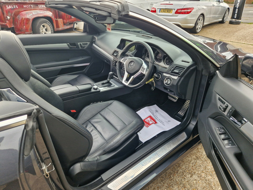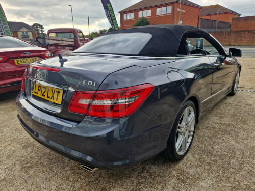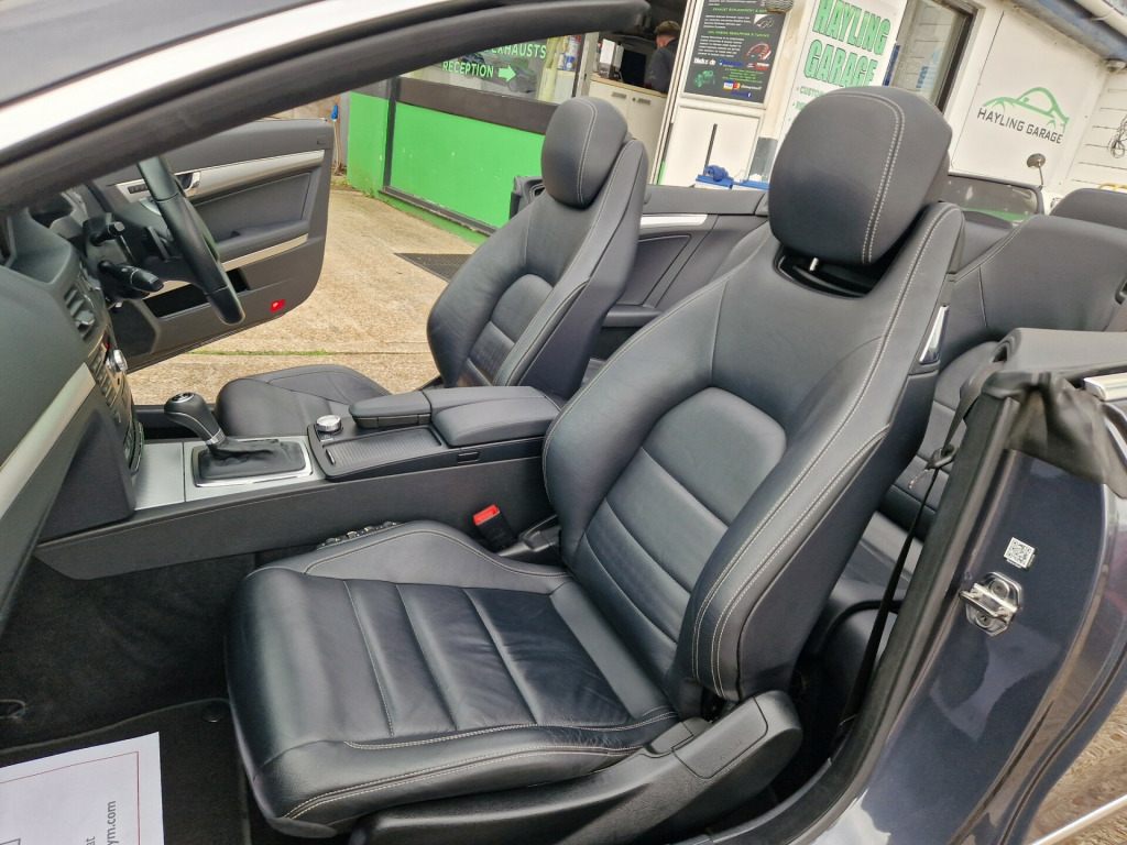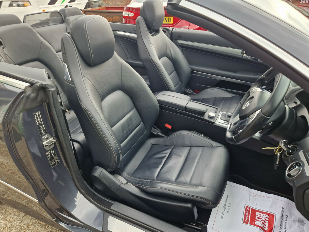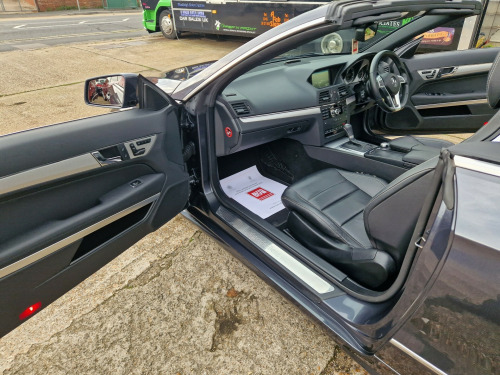 2012 Mercedes-Benz E Class E350 CDI BlueEFFICIENCY [265] Sport 2dr Tip Auto convertible with 77,176 miles on the clock and a diesel engine. This car comes with MOT valid until 21/05/2025. The sleek vehicle has 4 seats and 2 doors, making it a stylish and comfortable ride. Some key features of this car include attention assist, front and rear parking sensors, on board computer, parameter steering, and service indicator (ASSYST PLUS). Don't miss out on the chance to own this luxurious and well-maintained Mercedes-Benz. tention assist, front and rear parking sensors, on board computer, parameter steering, service indicator (assyst plus), agility control sports suspension with selective damping system, diesel particulate filter, auxiliary input socket, amg bodystyling, automatic rain sensing wipers, body coloured bumpers, body coloured door handles and locks, chrome window highlights, electric front/rear windows with one touch/auto up/down, electric heated + adjustable door mirrors, electric soft-top with auto roll-over bar, heated windscreen wash system, led daytime running lights, twin oval tailpipes, wind deflector, 3 spoke amg steering wheel in nappa leather, amg floormats, centre armrest and door handle illumination, centre rear armrest with through load facility, child seat recognition sensor, door sill panels with stainless steel inlays, easy entry seats, front centre armrest with storage compartment, front door pockets, front footwell lights, front head restraints, front seat back map pockets, heated front seats, height/reach adjust steering wheel, integrated rear head restraints, isofix rear child seat fastenings, leather gear knob, multi contour front sports seats, multi function steering wheel, rear centre armrest with 2 cupholders + storage, sports pedals with stainless steel surfaces and rubber studs, steering wheel gearshift paddles, sunvisors with illuminated vanity mirrors, twin front cupholders, lights pack - e class, mirror pack - e class, abs + bas, adaptive brake system, adaptive driver and front passenger airbags, drivers knee airbag, esp with asr, front side airbags, pre-safe anticipatory safety system, sports braking system, tyre pressure monitoring system, warning triangle and first aid kit, window airbags, alarm system/interior protection/immobiliser, locking wheel bolts, remote central locking, space saver spare wheel, 18'' Alloys