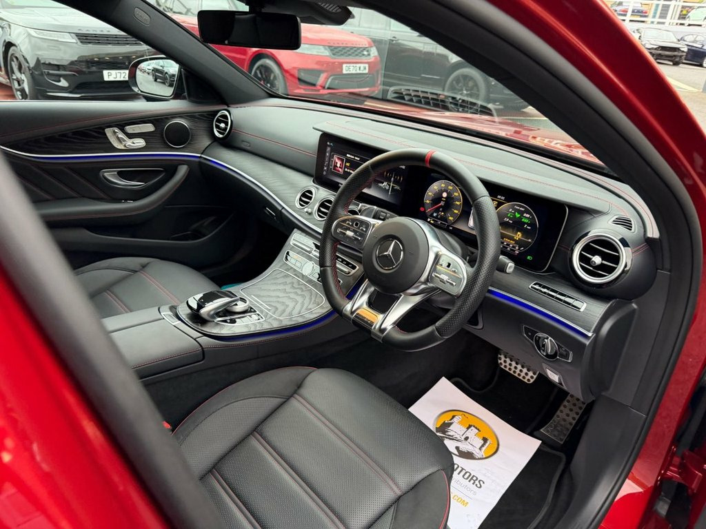 457PS E53 AMG Estate 4MATIC EQ Boost in beautiful Hyacinth Red Metallic with Black Premium Nappa leather & Suede stitched in Red, PREMIUM Package, 20-inch Polished and Black AMG wheels, Black Exterior Package inc Black Exhaust, twin widescreen displays, 360 degree surround view cameras, interior ambient lighting, heated & electric memory adjustable seats, Red Stitching & seat belts, power tailgate, multifunction AMG steering wheel, cruise control and much more. Only 16,750 miles covered, one owner since 9 months old & immaculate throughout with Mercedes service history (5-services) 19in Alloy Wheels - AMG 5-Twin-Spoke Des, 20in Alloy Wheels - AMG 5-Twin-Spoke Des, ABS - Anti-Lock Braking System, Active Bonnet - Pedestrian Safety Measur, Active Braking Assist, Active Parking Assist and 360 Degree Cam, Adaptive Brake Lights, Adaptive Brake System with HOLD Function, Airbag - Kneebag for Driver, Airbags - Driver and Front Passenger wit, Airbags - Sidebag for Driver and Front P, Airbags - Windowbags, Alarm System with Immobiliser and Interi, AMG Bodystyling - Front and Rear Aprons , AMG Dynamic Select with a Choice of Driv, AMG Lettering on the Centre Console, AMG Performance Exhaust System, AMG Ride Control Sports Suspension, Analogue Clock in Centre Console, Anodised Sil
