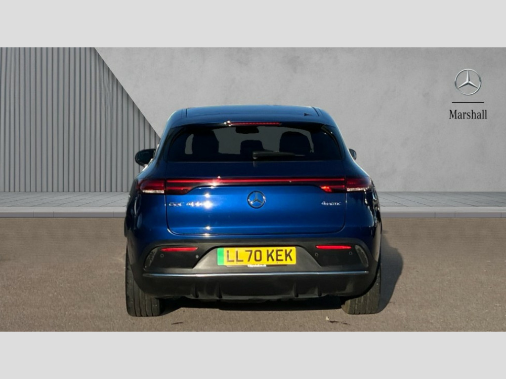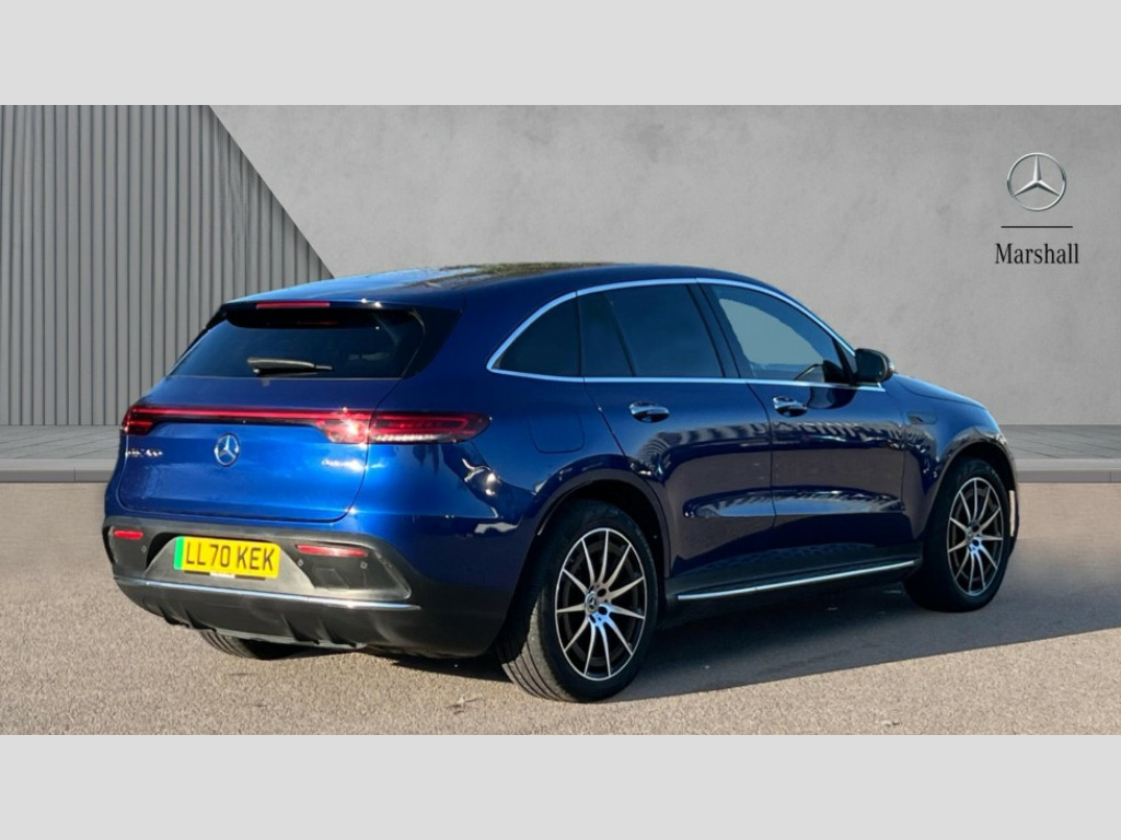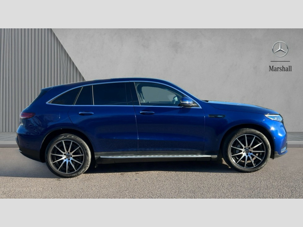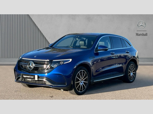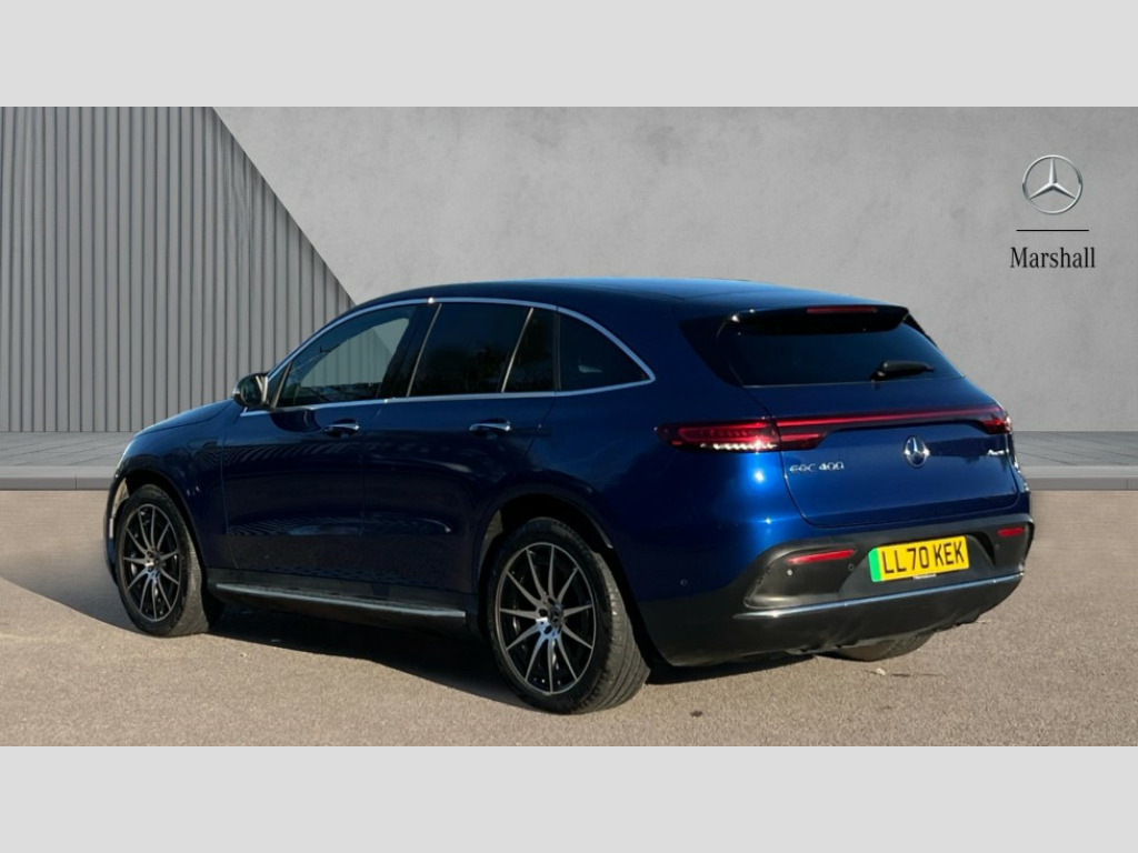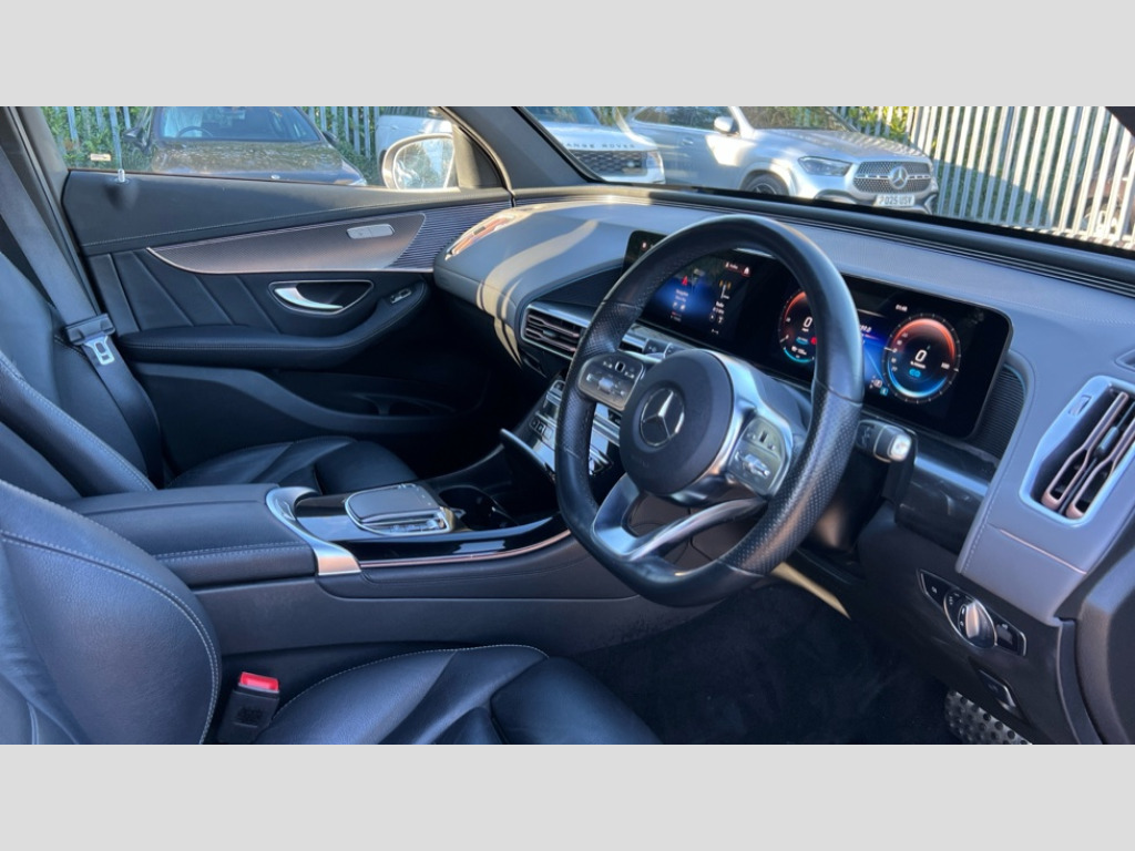 Mercedes-Benz Eqc EQC 400 300kW AMG Line 80kWh 5dr Auto Acoustic ambient protection, DYNAMIC SELECT with a choice of driving modes (max range, ECO, comfort and sport), Easy-pack tailgate, Electronic Power Steering (EPS), EQ navigation services - map (range display), display charging stations, programming of charging settings and pre entry climate control, Hard-disk navigation, Mercedes Benz emergency call system, Mercedes me connect, Traffic sign assist, 4MATIC all wheel drive, Charging cable for wall box and public charging station - Type 2(mode 3) 5m, Charging system - AC charging system rated at 7.4kW and 110kW DC charging system, Combined charging system CCS-2 connector, Comfort suspension with self levelling rear air suspension, DAB Digital radio, MBUX multimedia system with 10.25" instrument and 10.25" media display with touchscreen, Mercedes Benz sound system with 4 mid range speakers, 2 tweeters, 2 Frontbass speakers, 1 centre speaker and 225 W amplifier output, Aluminium running boards, AMG specific black panel radiator grille with twin blade design and high gloss black surround, AMG specific rear apron with visible air outlets, black diffuser insert and chrome trim elements, Badge on the wing in high gloss black with chrome stripes and blue EQC lettering, Front and rear LED light band, Heat and noise insulating acoustic glass, High gloss black exterior mirror housing, Multibeam LED headlights with inner housing and high gloss black tubes/blue stripes, adaptive highbeam assist +, cornering and cross traffic functions, Privacy glass, 12V Accessory socket in the load area, 3 spoke AMG multifunction sports steering wheel in nappa leather with chrome control panels and flattened bottom section with perforated grip area, 40:20:40 split folding rear seats, AMG brushed stainless steel sports pedals with aluminium rubber studs, AMG floor mats, AMG sports seats, Black fabric roof liner, Charging socket, Dashboard in ARTICO man-made leather with metallised look finish and rose gold piping, Front and rear head restraints, Heated front seats, Interior lighting - 64 colour Ambient lighting, Leather upholstery, Interior light package - EQC, Keyless go comfort package - EQC, Mirror package with heated door mirror - EQC, Parking package with active park assist with reversing camera - EQC, Seat comfort pack - EQC, Stowage package - EQC, 3 rear seatbelts, 6 airbags - Driver, front passenger, curtain and side airbags, ABS, Radar-based recuperation, Urban guard vehicle protection, Anthracite carbon fibre look trim with high gloss centre console, 20" AMG multispoke wheels painted black with high sheen finish, Summer tyres, Tirefit