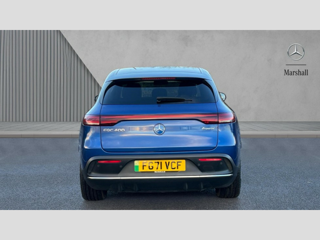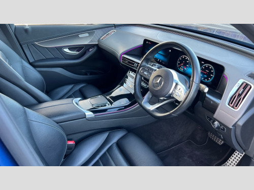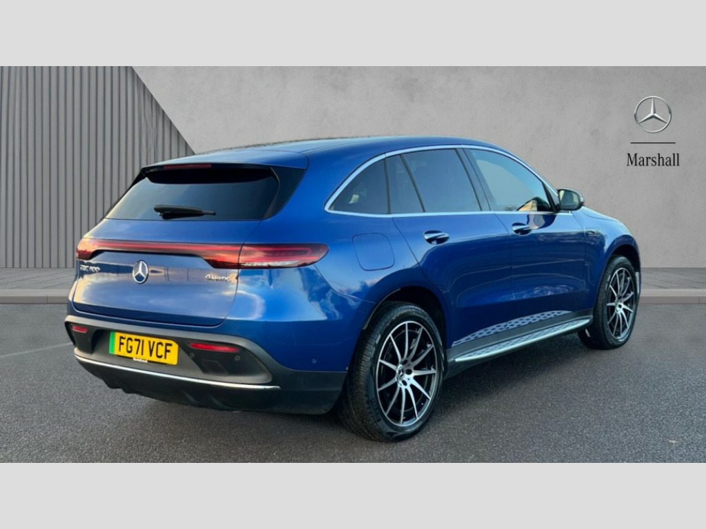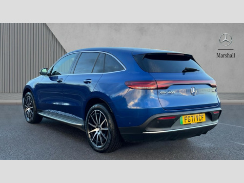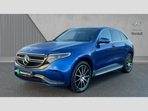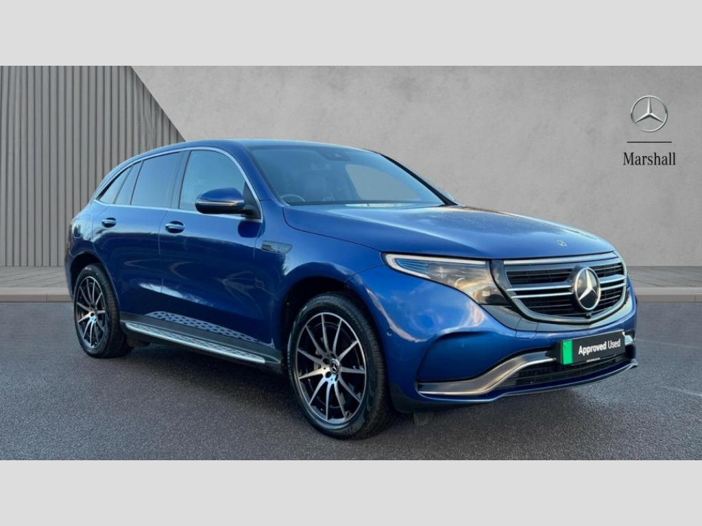 Mercedes-Benz Eqc EQC 400 300kW AMG Line 80kWh 5dr Auto Acoustic ambient protection, DYNAMIC SELECT with a choice of driving modes (max range, ECO, comfort and sport), Easy-pack tailgate, Electronic Power Steering (EPS), EQ navigation services - map (range display), display charging stations, programming of charging settings and pre entry climate control, Hard-disk navigation, Mercedes Benz emergency call system, Mercedes me connect, Traffic sign assist, 11KW onboard charger, 4MATIC all wheel drive, Charging cable for wall box and public charging station - Type 2(mode 3) 5m, Charging system - AC charging system rated at 7.4kW and 110kW DC charging system, Combined charging system CCS-2 connector, Comfort suspension with self levelling rear air suspension, DAB Digital radio, MBUX multimedia system with 10.25" instrument and 10.25" media display with touchscreen, Mercedes Benz sound system with 4 mid range speakers, 2 tweeters, 2 Frontbass speakers, 1 centre speaker and 225 W amplifier output, Aluminium running boards, AMG specific black panel radiator grille with twin blade design and high gloss black surround, AMG specific rear apron with visible air outlets, black diffuser insert and chrome trim elements, Badge on the wing in high gloss black with chrome stripes and blue EQC lettering, Front and rear LED light band, Heat and noise insulating acoustic glass, High gloss black exterior mirror housing, Multibeam LED headlights with inner housing and high gloss black tubes/blue stripes, adaptive highbeam assist +, cornering and cross traffic functions, Privacy glass, 12V Accessory socket in the load area, 3 spoke AMG multifunction sports steering wheel in nappa leather with chrome control panels and flattened bottom section with perforated grip area, 40:20:40 split folding rear seats, AMG brushed stainless steel sports pedals with aluminium rubber studs, AMG floor mats, AMG sports seats, Black fabric roof liner, Charging socket, Dashboard in ARTICO man-made leather with metallised look finish and rose gold piping, Front and rear head restraints, Heated front seats, Interior lighting - 64 colour Ambient lighting, Leather upholstery, Interior light package - EQC, Keyless go comfort package - EQC, Mirror package with heated door mirror - EQC, Parking package with active park assist with reversing camera - EQC, Seat comfort pack - EQC, Stowage package - EQC, 3 rear seatbelts, 6 airbags - Driver, front passenger, curtain and side airbags, ABS, Radar-based recuperation, Urban guard vehicle protection, Anthracite carbon fibre look trim with high gloss centre console, 20" AMG multispoke wheels painted black with high sheen finish, Summer tyres, Tirefit