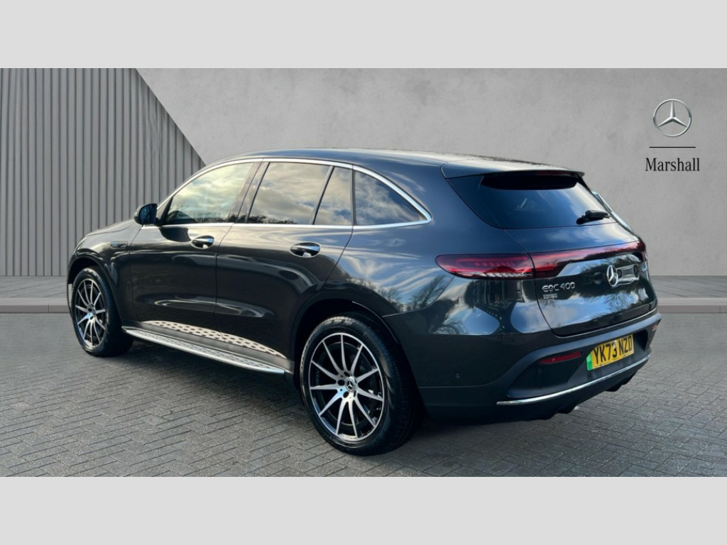 Mercedes-Benz Eqc EQC 400 300kW AMG Line Edition 80kWh 5dr Auto Acoustic ambient protection, Active lane departure warning system, Cruise control, DYNAMIC SELECT with a choice of driving modes (max range, ECO, comfort and sport), Easy-pack tailgate, Electronic Power Steering (EPS), EQ navigation services - map (range display), display charging stations, programming of charging settings and pre entry climate control, Hard-disk navigation, Mercedes Benz emergency call system, Mercedes me connect, Traffic sign assist, 11KW onboard charger, 4MATIC all wheel drive, Charging cable for domestic plug socket, Type G (Mode 2) 5m, Charging cable for wall box and public charging station - Type 2(mode 3) 5m, Combined charging system CCS-2 connector, Comfort suspension with self levelling rear air suspension, Advanced sound system, DAB Digital radio, MBUX multimedia system with widescreen cockpit (2x 10.25" displays with touchpad), Aluminium running boards, AMG specific black panel radiator grille with twin blade design and high gloss black surround, AMG specific front apron with jet wing design, visible air intakes with chrome trim parts and high gloss black inserts and air curtains, AMG specific rear apron with visible air outlets, black diffuser insert and chrome trim elements, Badge on the wing in high gloss black with chrome stripes and blue EQC lettering, Daytime running lights, Edition badge, Front and rear LED light band, Heat and noise insulating acoustic glass, High gloss black exterior mirror housing, LED third brake light, Multibeam LED headlights with Adaptive highbeam assist+,cornering light/cross traffic function and City light/country road light/motorway light modes, Privacy glass, Rear side wing doors, Rear wiper, Vehicle Monitoring, Vehicle Setup, 12V Accessory socket in the load area, 3 seat bench in 2nd row, 3 spoke AMG multifunction sports steering wheel in nappa leather with chrome control panels and flattened bottom section with perforated grip area, 40:20:40 split folding rear seats, AMG brushed stainless steel sports pedals with black rubber studs, AMG floor mats, AMG sports seats, Black fabric roof liner, Charging socket, Front and rear head restraints, Heated front seats, Interior lighting - 64 colour Ambient lighting, Leather upholstery, Single front passenger seat, Thermatic climate control, Complete care pack - EQC, Interior light package - EQC, Keyless go comfort package - EQC, Mirror package - EQC, Parking package with active park assist with reversing camera - EQC, Seat comfort pack - EQC, Stowage package - EQC, 3 rear seatbelts, 6 airbags - Driver, front passenger, curtain and side airbags, ABS, Child locks on rear doors, Radar-based recuperation, Urban guard vehicle protection, Anthracite carbon fibre look trim with high gloss centre console, Artico man-made leather dashboard, 20" AMG multi spoke light alloy wheels aerodynamically optimised in high gloss black with high sheen finish, Summer tyres, Tirefit