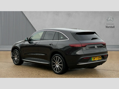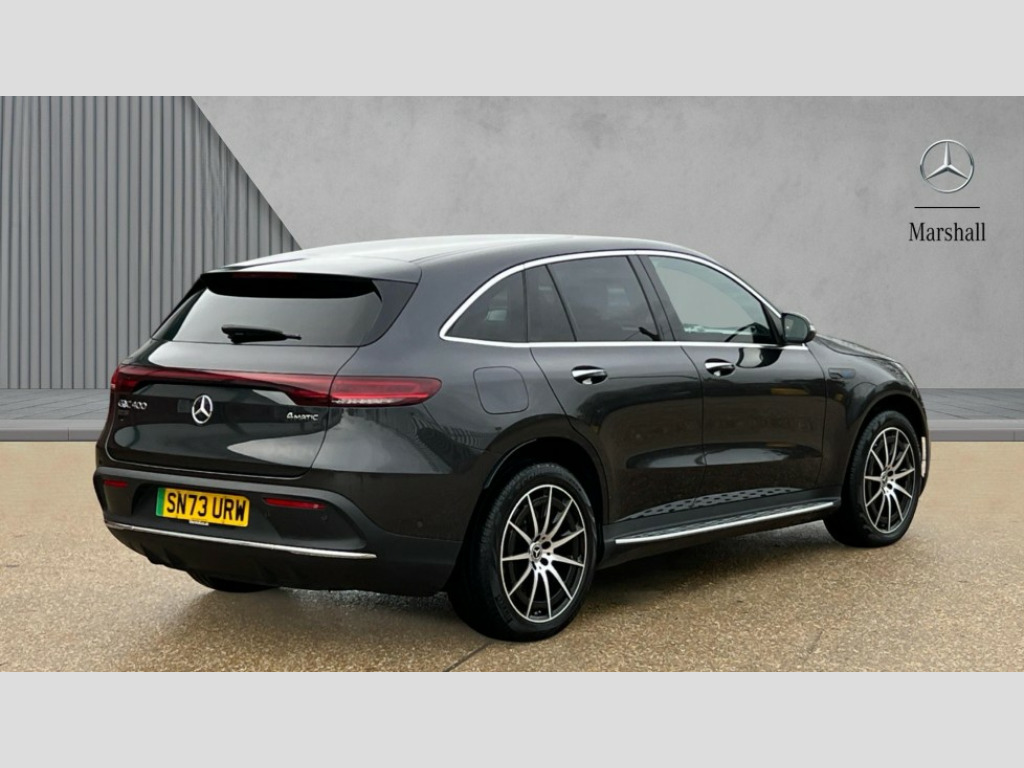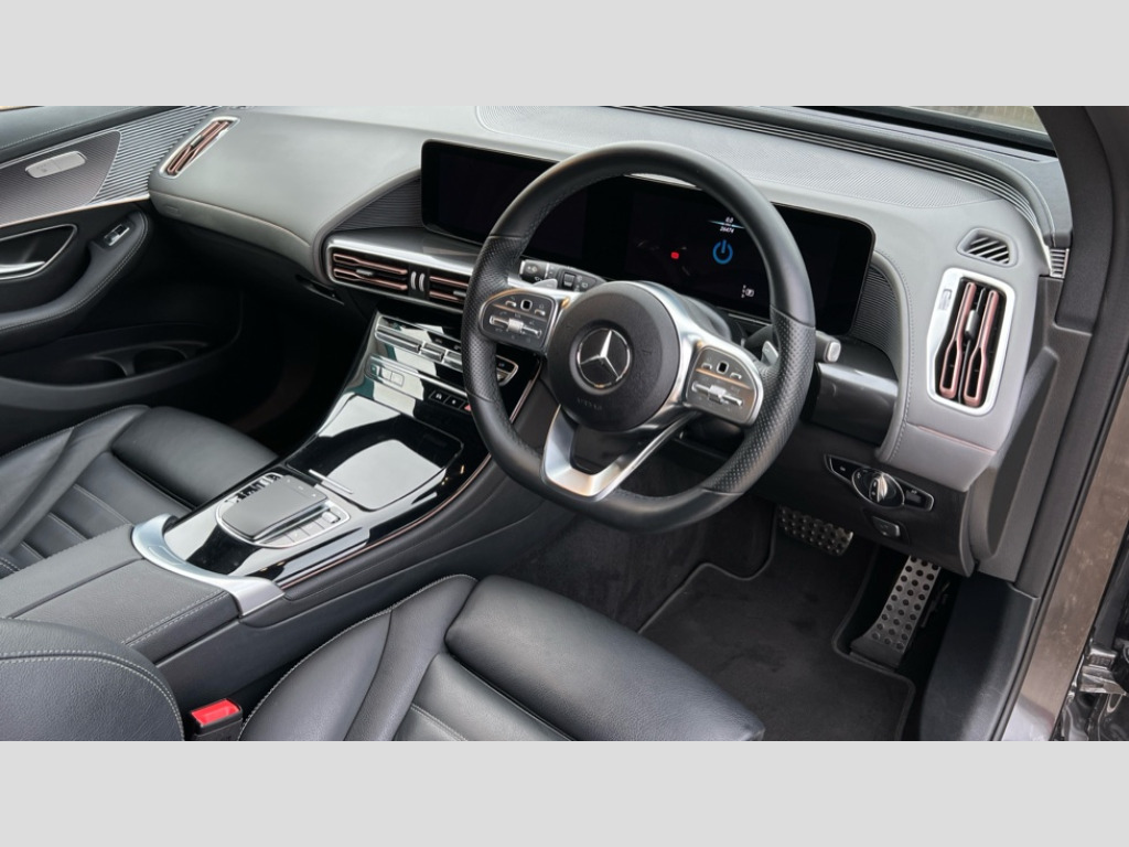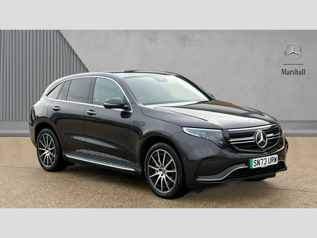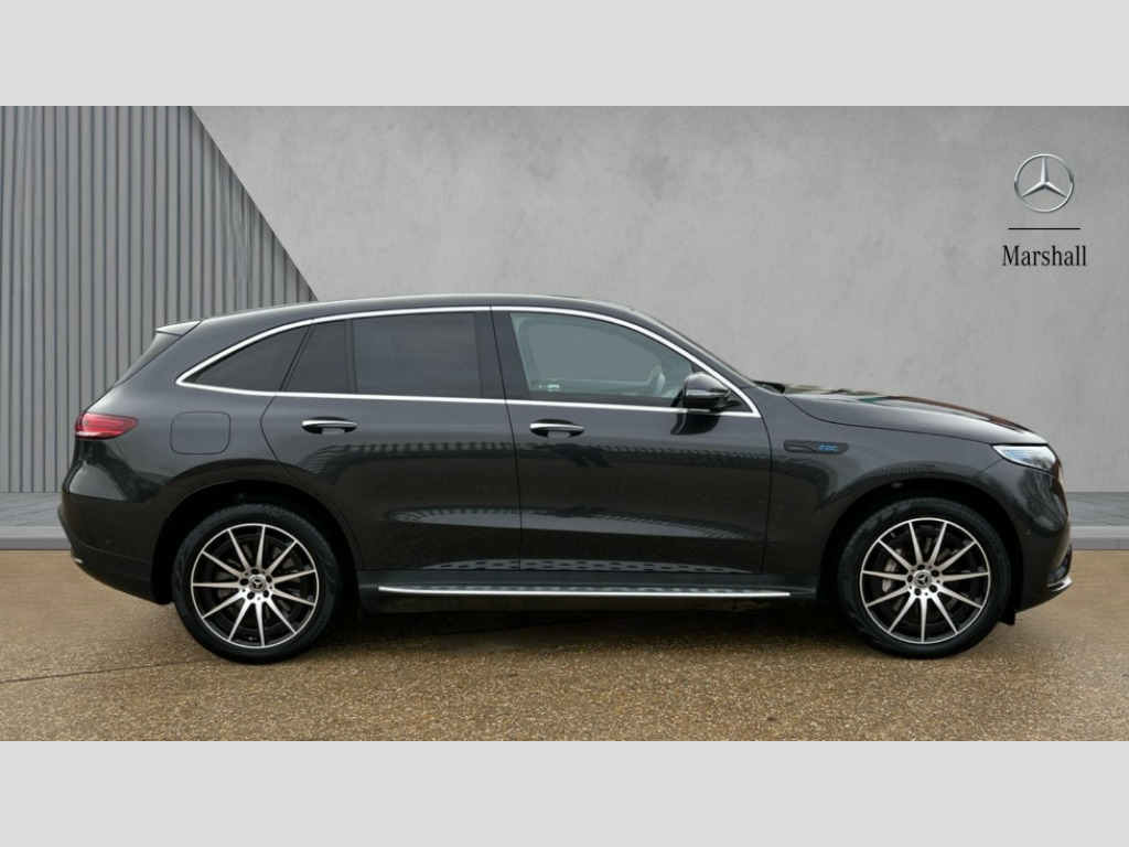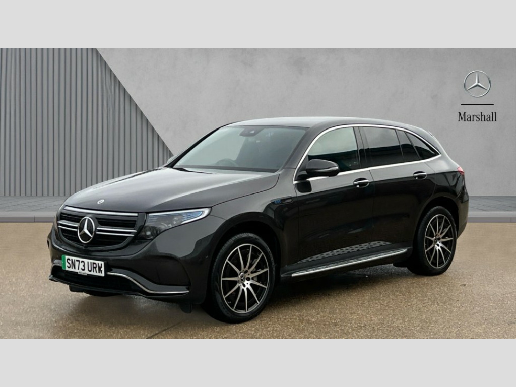Mercedes-Benz Eqc EQC 400 300kW AMG Line Edition 80kWh 5dr Auto Acoustic ambient protection, Active lane departure warning system, Cruise control, DYNAMIC SELECT with a choice of driving modes (max range, ECO, comfort and sport), Easy-pack tailgate, Electronic Power Steering (EPS), EQ navigation services - map (range display), display charging stations, programming of charging settings and pre entry climate control, Hard-disk navigation, Mercedes Benz emergency call system, Mercedes me connect, Traffic sign assist, 11KW onboard charger, 4MATIC all wheel drive, Charging cable for domestic plug socket, Type G (Mode 2) 5m, Charging cable for wall box and public charging station - Type 2(mode 3) 5m, Combined charging system CCS-2 connector, Comfort suspension with self levelling rear air suspension, Advanced sound system, DAB Digital radio, MBUX multimedia system with widescreen cockpit (2x 10.25" displays with touchpad), Aluminium running boards, AMG specific black panel radiator grille with twin blade design and high gloss black surround, AMG specific front apron with jet wing design, visible air intakes with chrome trim parts and high gloss black inserts and air curtains, AMG specific rear apron with visible air outlets, black diffuser insert and chrome trim elements, Badge on the wing in high gloss black with chrome stripes and blue EQC lettering, Daytime running lights, Edition badge, Front and rear LED light band, Heat and noise insulating acoustic glass, High gloss black exterior mirror housing, LED third brake light, Multibeam LED headlights with Adaptive highbeam assist+,cornering light/cross traffic function and City light/country road light/motorway light modes, Privacy glass, Rear side wing doors, Rear wiper, Vehicle Monitoring, Vehicle Setup, 12V Accessory socket in the load area, 3 seat bench in 2nd row, 3 spoke AMG multifunction sports steering wheel in nappa leather with chrome control panels and flattened bottom section with perforated grip area, 40:20:40 split folding rear seats, AMG brushed stainless steel sports pedals with black rubber studs, AMG floor mats, AMG sports seats, Black fabric roof liner, Charging socket, Front and rear head restraints, Heated front seats, Interior lighting - 64 colour Ambient lighting, Leather upholstery, Single front passenger seat, Thermatic climate control, Complete care pack - EQC, Interior light package - EQC, Keyless go comfort package - EQC, Mirror package - EQC, Parking package with active park assist with reversing camera - EQC, Seat comfort pack - EQC, Stowage package - EQC, 3 rear seatbelts, 6 airbags - Driver, front passenger, curtain and side airbags, ABS, Child locks on rear doors, Radar-based recuperation, Urban guard vehicle protection, Anthracite carbon fibre look trim with high gloss centre console, Artico man-made leather dashboard, 20" AMG multi spoke light alloy wheels aerodynamically optimised in high gloss black with high sheen finish, Summer tyres, Tirefit