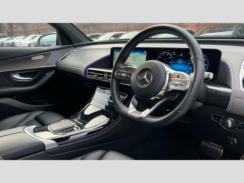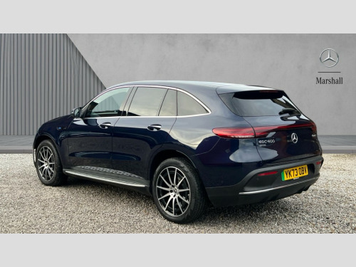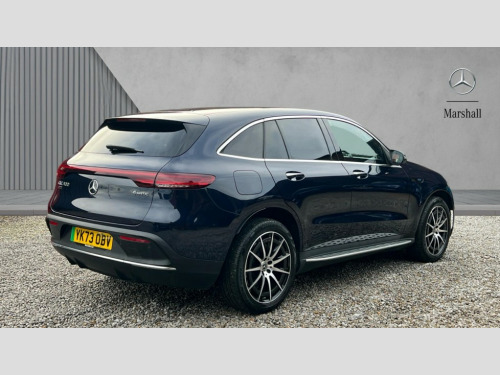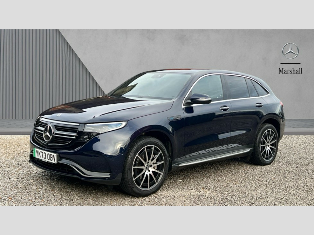 Mercedes-Benz Eqc EQC 400 300kW AMG Line Edition 80kWh 5dr Auto Acoustic ambient protection, Active lane departure warning system, Cruise control, DYNAMIC SELECT with a choice of driving modes (max range, ECO, comfort and sport), Easy-pack tailgate, Electronic Power Steering (EPS), EQ navigation services - map (range display), display charging stations, programming of charging settings and pre entry climate control, Hard-disk navigation, Mercedes Benz emergency call system, Mercedes me connect, Traffic sign assist, 11KW onboard charger, 4MATIC all wheel drive, Charging cable for domestic plug socket, Type G (Mode 2) 5m, Charging cable for wall box and public charging station - Type 2(mode 3) 5m, Combined charging system CCS-2 connector, Comfort suspension with self levelling rear air suspension, Advanced sound system, DAB Digital radio, MBUX multimedia system with widescreen cockpit (2x 10.25" displays with touchpad), Aluminium running boards, AMG specific black panel radiator grille with twin blade design and high gloss black surround, AMG specific front apron with jet wing design, visible air intakes with chrome trim parts and high gloss black inserts and air curtains, AMG specific rear apron with visible air outlets, black diffuser insert and chrome trim elements, Badge on the wing in high gloss black with chrome stripes and blue EQC lettering, Daytime running lights, Edition badge, Front and rear LED light band, Heat and noise insulating acoustic glass, High gloss black exterior mirror housing, LED third brake light, Multibeam LED headlights with Adaptive highbeam assist+,cornering light/cross traffic function and City light/country road light/motorway light modes, Privacy glass, Rear side wing doors, Rear wiper, Vehicle Monitoring, Vehicle Setup, 12V Accessory socket in the load area, 3 seat bench in 2nd row, 3 spoke AMG multifunction sports steering wheel in nappa leather with chrome control panels and flattened bottom section with perforated grip area, 40:20:40 split folding rear seats, AMG brushed stainless steel sports pedals with black rubber studs, AMG floor mats, AMG sports seats, Black fabric roof liner, Charging socket, Front and rear head restraints, Heated front seats, Interior lighting - 64 colour Ambient lighting, Leather upholstery, Single front passenger seat, Thermatic climate control, Complete care pack - EQC, Interior light package - EQC, Keyless go comfort package - EQC, Mirror package - EQC, Parking package with active park assist with reversing camera - EQC, Seat comfort pack - EQC, Stowage package - EQC, 3 rear seatbelts, 6 airbags - Driver, front passenger, curtain and side airbags, ABS, Child locks on rear doors, Radar-based recuperation, Urban guard vehicle protection, Anthracite carbon fibre look trim with high gloss centre console, Artico man-made leather dashboard, 20" AMG multi spoke light alloy wheels aerodynamically optimised in high gloss black with high sheen finish, Summer tyres, Tirefit