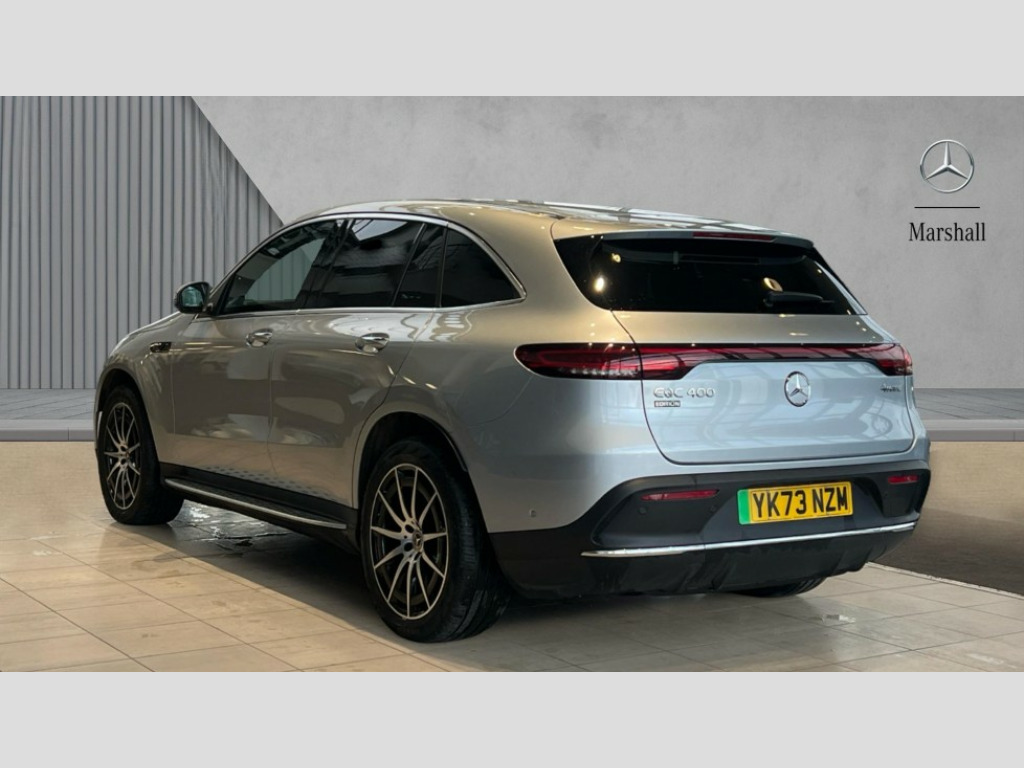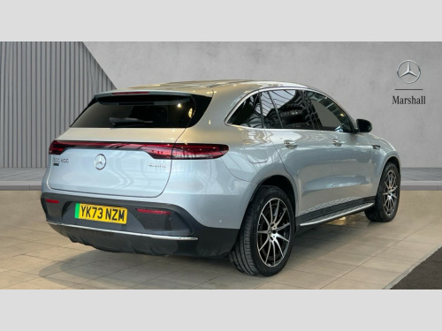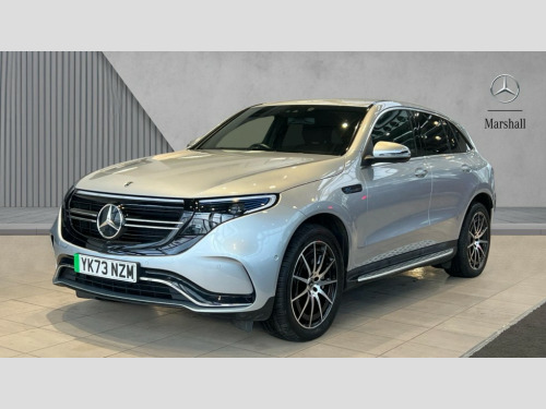 Mercedes-Benz Eqc EQC 400 300kW AMG Line Edition 80kWh 5dr Auto Acoustic ambient protection, Active lane departure warning system, Cruise control, DYNAMIC SELECT with a choice of driving modes (max range, ECO, comfort and sport), Easy-pack tailgate, Electronic Power Steering (EPS), EQ navigation services - map (range display), display charging stations, programming of charging settings and pre entry climate control, Hard-disk navigation, Mercedes Benz emergency call system, Mercedes me connect, Traffic sign assist, 11KW onboard charger, 4MATIC all wheel drive, Charging cable for domestic plug socket, Type G (Mode 2) 5m, Charging cable for wall box and public charging station - Type 2(mode 3) 5m, Combined charging system CCS-2 connector, Comfort suspension with self levelling rear air suspension, Advanced sound system, DAB Digital radio, MBUX multimedia system with widescreen cockpit (2x 10.25" displays with touchpad), Aluminium running boards, AMG specific black panel radiator grille with twin blade design and high gloss black surround, AMG specific front apron with jet wing design, visible air intakes with chrome trim parts and high gloss black inserts and air curtains, AMG specific rear apron with visible air outlets, black diffuser insert and chrome trim elements, Badge on the wing in high gloss black with chrome stripes and blue EQC lettering, Daytime running lights, Edition badge, Front and rear LED light band, Heat and noise insulating acoustic glass, High gloss black exterior mirror housing, LED third brake light, Multibeam LED headlights with Adaptive highbeam assist+,cornering light/cross traffic function and City light/country road light/motorway light modes, Privacy glass, Rear side wing doors, Rear wiper, Vehicle Monitoring, Vehicle Setup, 12V Accessory socket in the load area, 3 seat bench in 2nd row, 3 spoke AMG multifunction sports steering wheel in nappa leather with chrome control panels and flattened bottom section with perforated grip area, 40:20:40 split folding rear seats, AMG brushed stainless steel sports pedals with black rubber studs, AMG floor mats, AMG sports seats, Black fabric roof liner, Charging socket, Front and rear head restraints, Heated front seats, Interior lighting - 64 colour Ambient lighting, Leather upholstery, Single front passenger seat, Thermatic climate control, Complete care pack - EQC, Interior light package - EQC, Keyless go comfort package - EQC, Mirror package - EQC, Parking package with active park assist with reversing camera - EQC, Seat comfort pack - EQC, Stowage package - EQC, 3 rear seatbelts, 6 airbags - Driver, front passenger, curtain and side airbags, ABS, Child locks on rear doors, Radar-based recuperation, Urban guard vehicle protection, Anthracite carbon fibre look trim with high gloss centre console, Artico man-made leather dashboard, 20" AMG multi spoke light alloy wheels aerodynamically optimised in high gloss black with high sheen finish, Summer tyres, Tirefit