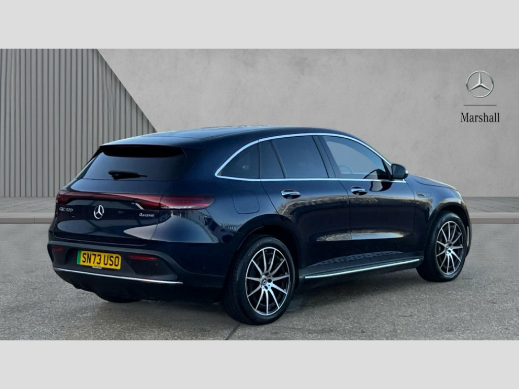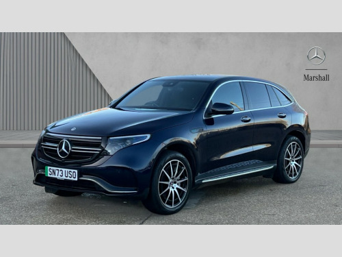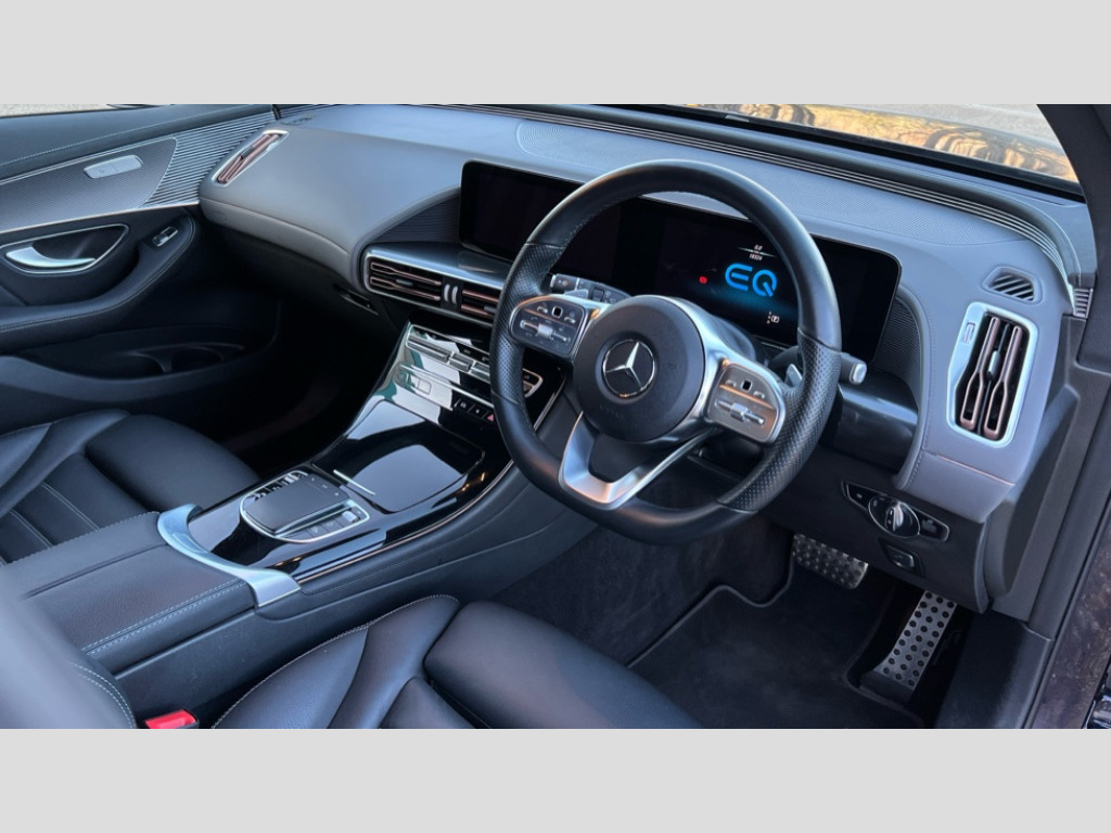 Mercedes-Benz Eqc EQC 400 300kW AMG Line Edition 80kWh 5dr Auto Acoustic ambient protection, Active lane departure warning system, Cruise control, DYNAMIC SELECT with a choice of driving modes (max range, ECO, comfort and sport), Easy-pack tailgate, Electronic Power Steering (EPS), EQ navigation services - map (range display), display charging stations, programming of charging settings and pre entry climate control, Hard-disk navigation, Mercedes Benz emergency call system, Mercedes me connect, Traffic sign assist, 11KW onboard charger, 4MATIC all wheel drive, Charging cable for domestic plug socket, Type G (Mode 2) 5m, Charging cable for wall box and public charging station - Type 2(mode 3) 5m, Combined charging system CCS-2 connector, Comfort suspension with self levelling rear air suspension, Advanced sound system, DAB Digital radio, MBUX multimedia system with widescreen cockpit (2x 10.25" displays with touchpad), Aluminium running boards, AMG specific black panel radiator grille with twin blade design and high gloss black surround, AMG specific front apron with jet wing design, visible air intakes with chrome trim parts and high gloss black inserts and air curtains, AMG specific rear apron with visible air outlets, black diffuser insert and chrome trim elements, Badge on the wing in high gloss black with chrome stripes and blue EQC lettering, Daytime running lights, Edition badge, Front and rear LED light band, Heat and noise insulating acoustic glass, High gloss black exterior mirror housing, LED third brake light, Multibeam LED headlights with Adaptive highbeam assist+,cornering light/cross traffic function and City light/country road light/motorway light modes, Privacy glass, Rear side wing doors, Rear wiper, Vehicle Monitoring, Vehicle Setup, 12V Accessory socket in the load area, 3 seat bench in 2nd row, 3 spoke AMG multifunction sports steering wheel in nappa leather with chrome control panels and flattened bottom section with perforated grip area, 40:20:40 split folding rear seats, AMG brushed stainless steel sports pedals with black rubber studs, AMG floor mats, AMG sports seats, Black fabric roof liner, Charging socket, Front and rear head restraints, Heated front seats, Interior lighting - 64 colour Ambient lighting, Leather upholstery, Single front passenger seat, Thermatic climate control, Complete care pack - EQC, Interior light package - EQC, Keyless go comfort package - EQC, Mirror package - EQC, Parking package with active park assist with reversing camera - EQC, Seat comfort pack - EQC, Stowage package - EQC, 3 rear seatbelts, 6 airbags - Driver, front passenger, curtain and side airbags, ABS, Child locks on rear doors, Radar-based recuperation, Urban guard vehicle protection, Anthracite carbon fibre look trim with high gloss centre console, Artico man-made leather dashboard, 20" AMG multi spoke light alloy wheels aerodynamically optimised in high gloss black with high sheen finish, Summer tyres, Tirefit