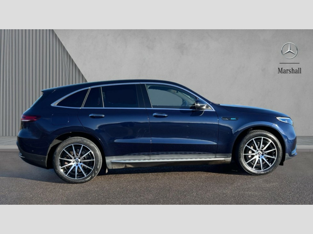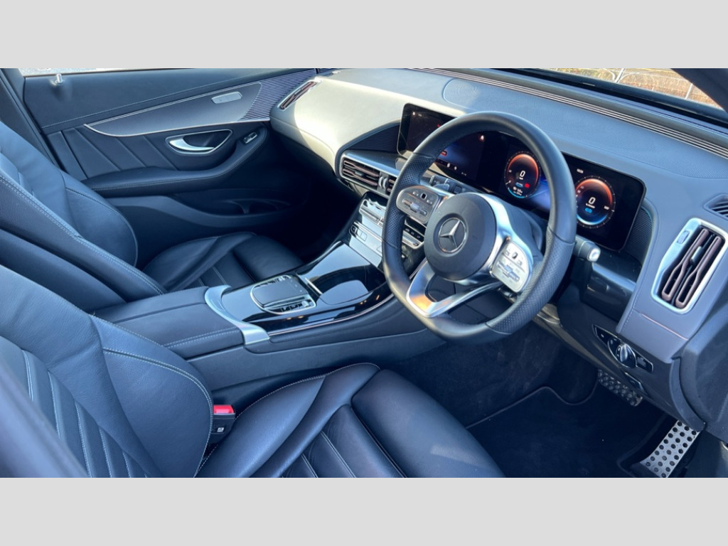 Mercedes-Benz Eqc EQC 400 300kW AMG Line Edition 80kWh 5dr Auto Acoustic ambient protection, Active lane departure warning system, Cruise control, DYNAMIC SELECT with a choice of driving modes (max range, ECO, comfort and sport), Easy-pack tailgate, Electronic Power Steering (EPS), EQ navigation services - map (range display), display charging stations, programming of charging settings and pre entry climate control, Hard-disk navigation, Mercedes Benz emergency call system, Mercedes me connect, Traffic sign assist, 11KW onboard charger, 4MATIC all wheel drive, Charging cable for domestic plug socket, Type G (Mode 2) 5m, Charging cable for wall box and public charging station - Type 2(mode 3) 5m, Combined charging system CCS-2 connector, Comfort suspension with self levelling rear air suspension, Advanced sound system, DAB Digital radio, MBUX multimedia system with widescreen cockpit (2x 10.25" displays with touchpad), Aluminium running boards, AMG specific black panel radiator grille with twin blade design and high gloss black surround, AMG specific front apron with jet wing design, visible air intakes with chrome trim parts and high gloss black inserts and air curtains, AMG specific rear apron with visible air outlets, black diffuser insert and chrome trim elements, Badge on the wing in high gloss black with chrome stripes and blue EQC lettering, Daytime running lights, Edition badge, Front and rear LED light band, Heat and noise insulating acoustic glass, High gloss black exterior mirror housing, LED third brake light, Multibeam LED headlights with Adaptive highbeam assist+,cornering light/cross traffic function and City light/country road light/motorway light modes, Privacy glass, Rear side wing doors, Rear wiper, Vehicle Monitoring, Vehicle Setup, 12V Accessory socket in the load area, 3 seat bench in 2nd row, 3 spoke AMG multifunction sports steering wheel in nappa leather with chrome control panels and flattened bottom section with perforated grip area, 40:20:40 split folding rear seats, AMG brushed stainless steel sports pedals with black rubber studs, AMG floor mats, AMG sports seats, Black fabric roof liner, Charging socket, Front and rear head restraints, Heated front seats, Interior lighting - 64 colour Ambient lighting, Leather upholstery, Single front passenger seat, Thermatic climate control, Complete care pack - EQC, Interior light package - EQC, Keyless go comfort package - EQC, Mirror package - EQC, Parking package with active park assist with reversing camera - EQC, Seat comfort pack - EQC, Stowage package - EQC, 3 rear seatbelts, 6 airbags - Driver, front passenger, curtain and side airbags, ABS, Child locks on rear doors, Radar-based recuperation, Urban guard vehicle protection, Anthracite carbon fibre look trim with high gloss centre console, Artico man-made leather dashboard, 20" AMG multi spoke light alloy wheels aerodynamically optimised in high gloss black with high sheen finish, Summer tyres, Tirefit