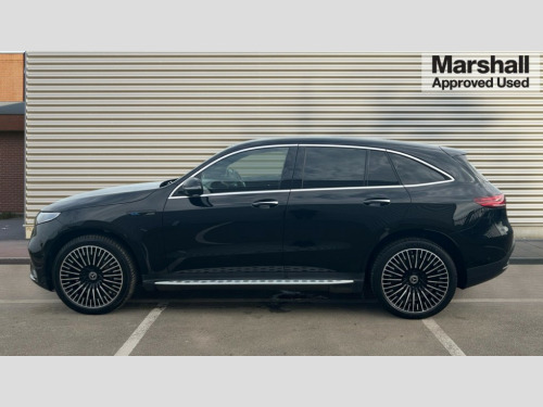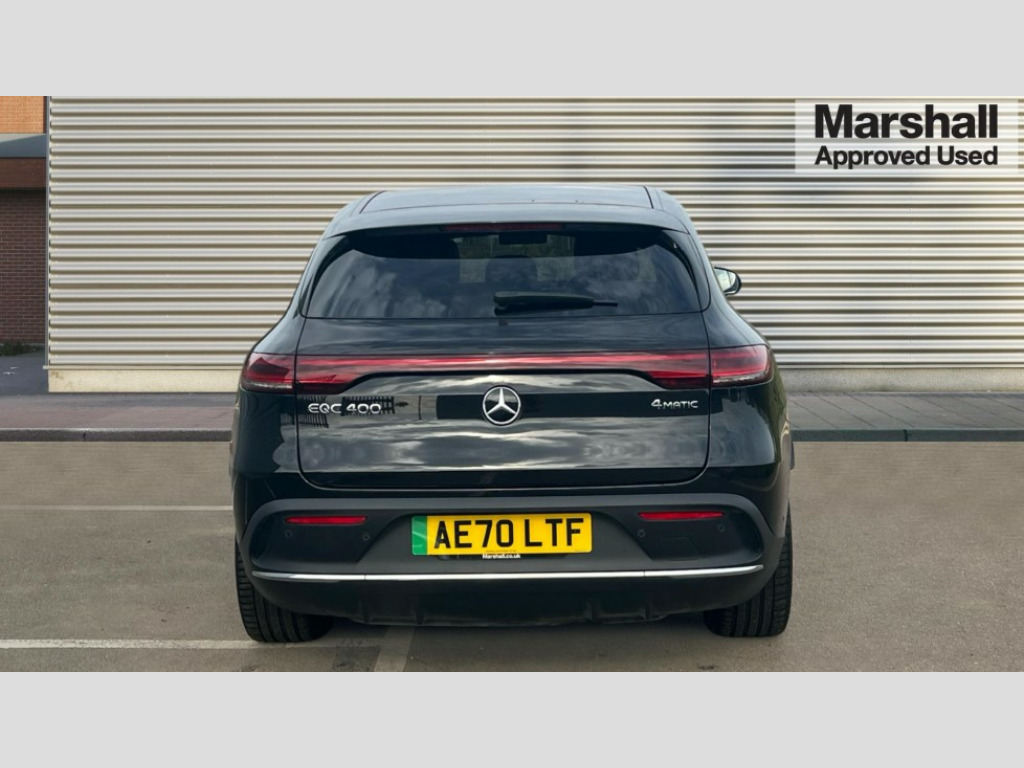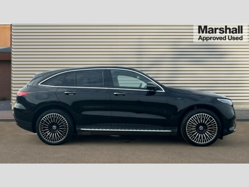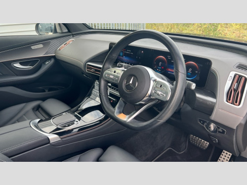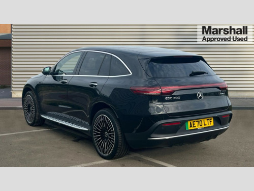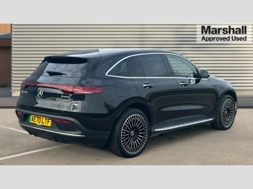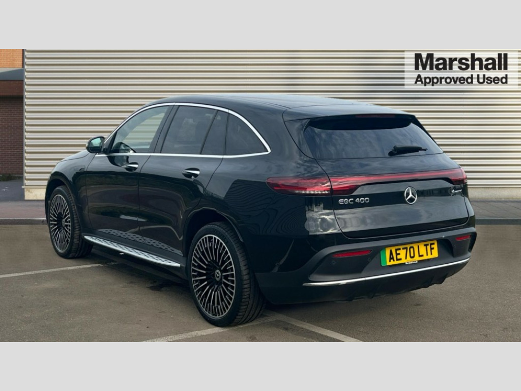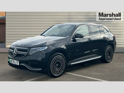 Mercedes-Benz Eqc EQC 400 300kW AMG Line Premium 80kWh 5dr Auto Acoustic ambient protection, DYNAMIC SELECT with a choice of driving modes (max range, ECO, comfort and sport), Easy-pack tailgate, Electronic Power Steering (EPS), EQ navigation services - map (range display), display charging stations, programming of charging settings and pre entry climate control, Hard-disk navigation, MBUX augmented reality for navigation, Mercedes Benz emergency call system, Mercedes me connect, Traffic sign assist, Wireless smartphone charging, 11KW onboard charger, 4MATIC all wheel drive, Charging cable for wall box and public charging station - Type 2(mode 3) 5m, Charging system - AC charging system rated at 7.4kW and 110kW DC charging system, Combined charging system CCS-2 connector, Comfort suspension with self levelling rear air suspension, Burmester surround sound system - 13 high performance speakers and 9 channel DSP amplifier + total 590 W output power, DAB Digital radio, MBUX multimedia system with 10.25" instrument and 10.25" media display with touchscreen, Aluminium running boards, AMG specific black panel radiator grille with twin blade design and high gloss black surround, AMG specific rear apron with visible air outlets, black diffuser insert and chrome trim elements, Badge on the wing in high gloss black with chrome stripes and blue EQC lettering, Electric sliding sunroof, Front and rear LED light band, Heat and noise insulating acoustic glass, High gloss black exterior mirror housing, Multibeam LED headlights with inner housing and high gloss black tubes/blue stripes, adaptive highbeam assist +, cornering and cross traffic functions, Privacy glass, 12V Accessory socket in the load area, 3 spoke AMG multifunction sports steering wheel in nappa leather with chrome control panels and flattened bottom section with perforated grip area, 40:20:40 split folding rear seats, AMG brushed stainless steel sports pedals with aluminium rubber studs, AMG floor mats, AMG sports seats, Black fabric roof liner, Charging socket, Dashboard in ARTICO man-made leather with metallised look finish and rose gold piping, Front and rear head restraints, Heated front seats, Interior lighting - 64 colour Ambient lighting, Leather upholstery, Air balance package - EQC, Energizing package - EQC, Interior light package - EQC, Keyless go comfort package - EQC, Mirror package with heated door mirror - EQC, Parking package with active park assist with reversing camera - EQC, Seat comfort pack - EQC, Stowage package - EQC, 3 rear seatbelts, 6 airbags - Driver, front passenger, curtain and side airbags, ABS, Radar-based recuperation, Urban guard vehicle protection, Anthracite carbon fibre look trim with high gloss centre console, 21" AMG mutli spoke alloy wheels painted black with high sheen finish, Summer tyres, Tirefit