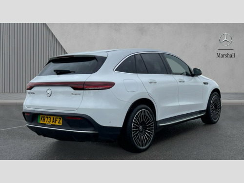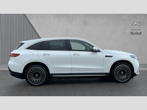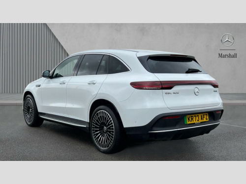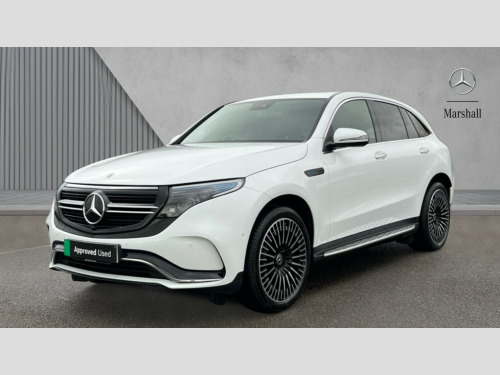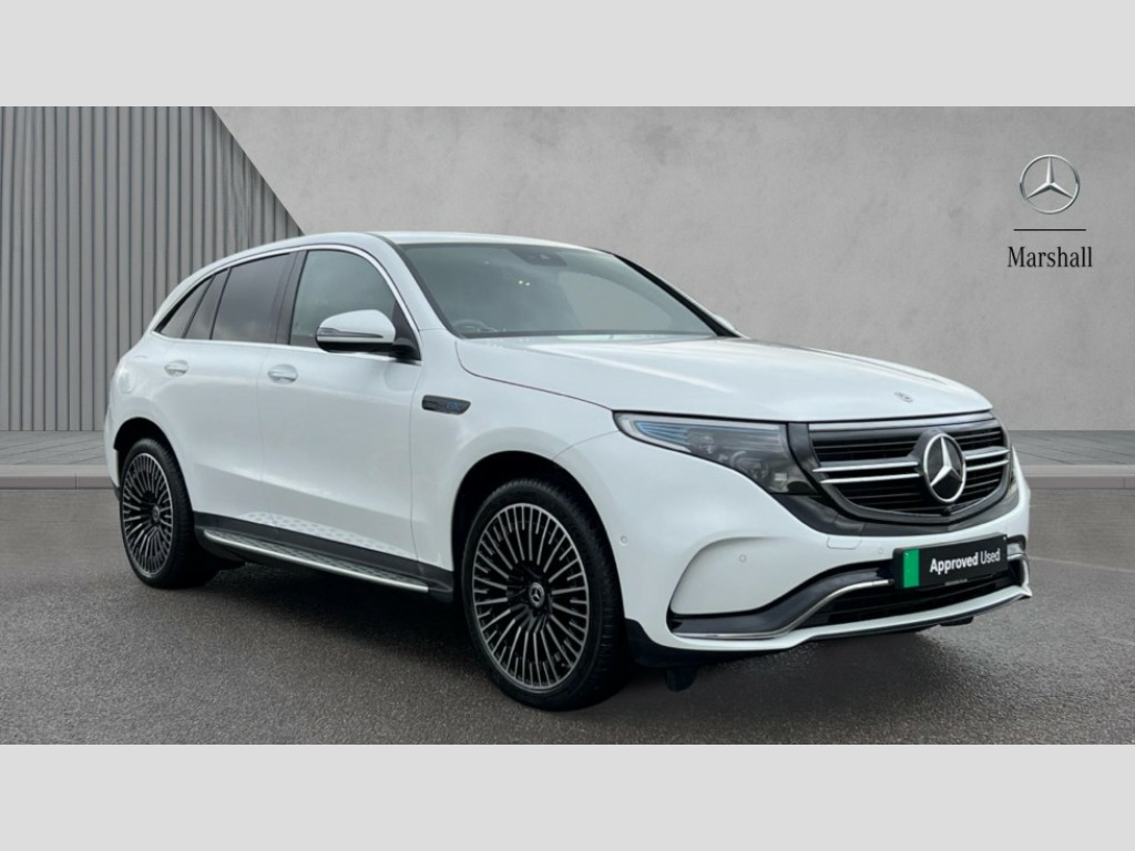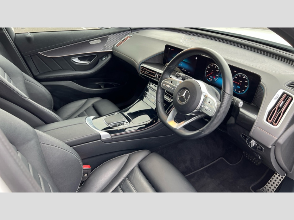 Mercedes-Benz Eqc EQC 400 300kW AMG Line Premium 80kWh 5dr Auto Acoustic ambient protection, Active lane departure warning system, Cruise control, DYNAMIC SELECT with a choice of driving modes (max range, ECO, comfort and sport), Easy-pack tailgate, Electronic Power Steering (EPS), EQ navigation services - map (range display), display charging stations, programming of charging settings and pre entry climate control, Hard-disk navigation, Mercedes Benz emergency call system, Mercedes me connect, Smartphone integration, Traffic sign assist, 11KW onboard charger, 4MATIC all wheel drive, Charging cable for domestic plug socket, Type G (Mode 2) 5m, Charging cable for wall box and public charging station - Type 2(mode 3) 5m, Combined charging system CCS-2 connector, Comfort suspension with self levelling rear air suspension, Advanced sound system, DAB Digital radio, MBUX multimedia system with widescreen cockpit (2x 10.25" displays with touchpad), Aluminium running boards, AMG specific black panel radiator grille with twin blade design and high gloss black surround, AMG specific front apron with jet wing design, visible air intakes with chrome trim parts and high gloss black inserts and air curtains, AMG specific rear apron with visible air outlets, black diffuser insert and chrome trim elements, Badge on the wing in high gloss black with chrome stripes and blue EQC lettering, Daytime running lights, Electric sliding sunroof, Front and rear LED light band, Heat and noise insulating acoustic glass, High gloss black exterior mirror housing, LED third brake light, Multibeam LED headlights with Adaptive highbeam assist+,cornering light/cross traffic function and City light/country road light/motorway light modes, Privacy glass, Rear side wing doors, Rear wiper, Vehicle Monitoring, Vehicle Setup, 12V Accessory socket in the load area, 3 seat bench in 2nd row, 3 spoke AMG multifunction sports steering wheel in nappa leather with chrome control panels and flattened bottom section with perforated grip area, 40:20:40 split folding rear seats, AMG brushed stainless steel sports pedals with black rubber studs, AMG floor mats, AMG sports seats, Black fabric roof liner, Charging socket, Front and rear head restraints, Heated front seats, Interior lighting - 64 colour Ambient lighting, Leather upholstery, Single front passenger seat, Air balance package - EQC, Energizing package - EQC, Interior light package - EQC, Keyless go comfort package - EQC, Mirror package - EQC, Parking package with active park assist with reversing camera - EQC, Seat comfort pack - EQC, Stowage package - EQC, 3 rear seatbelts, 6 airbags - Driver, front passenger, curtain and side airbags, ABS, Child locks on rear doors, Radar-based recuperation, Urban guard vehicle protection, Anthracite carbon fibre look trim with high gloss centre console, Artico man-made leather dashboard, 21" AMG multispoke light alloy wheels aerodynamically optimised in high gloss black with high sheen finish, Summer tyres, Tirefit