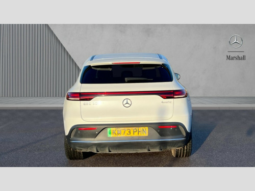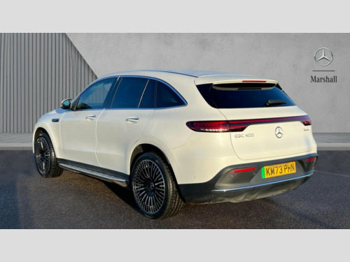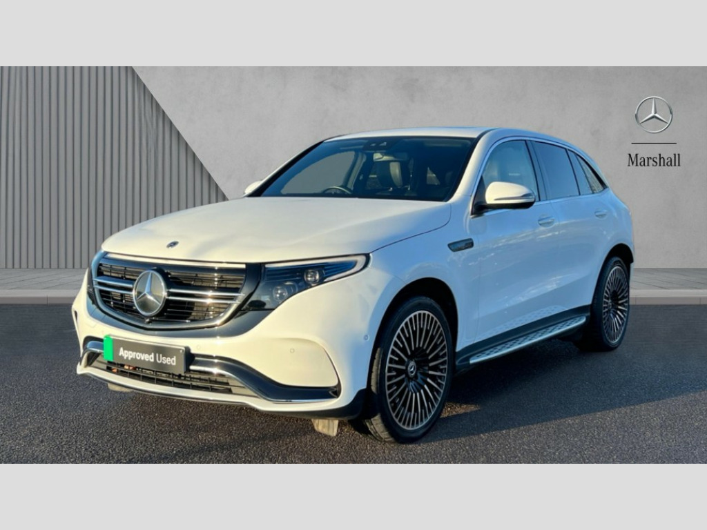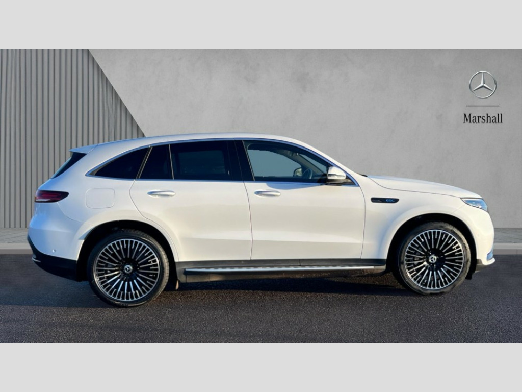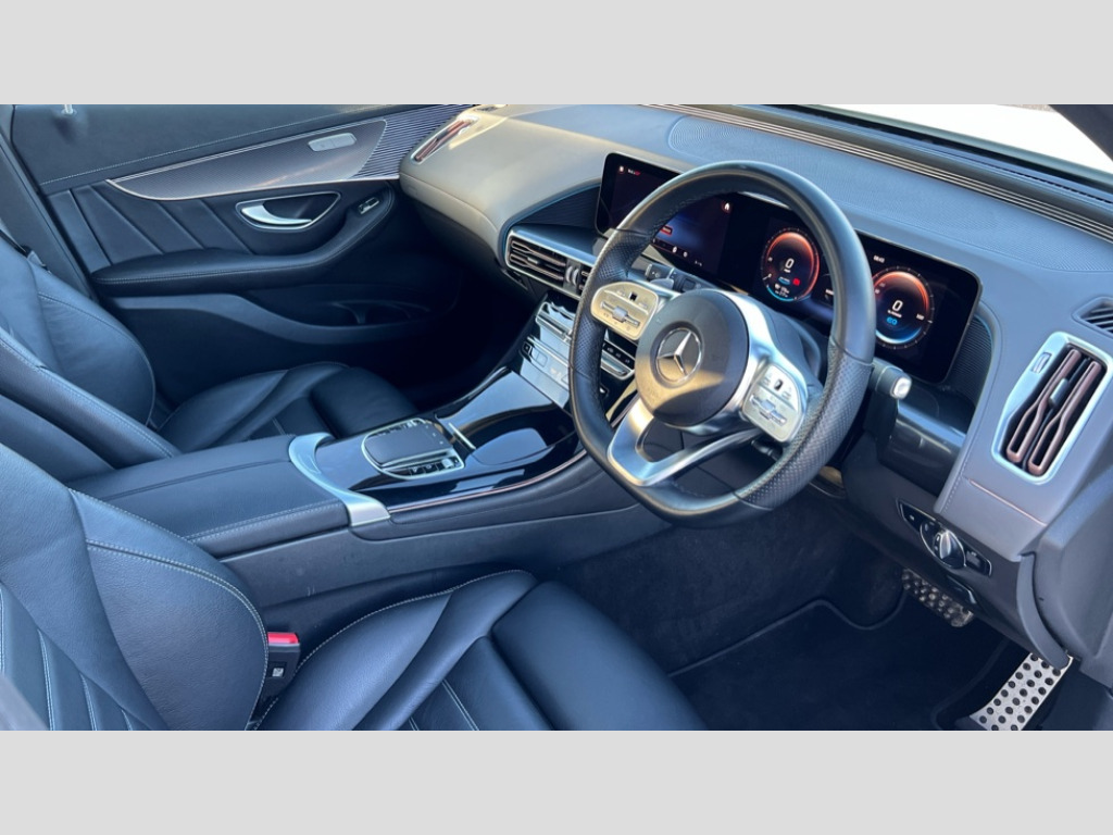 Mercedes-Benz Eqc EQC 400 300kW AMG Line Premium 80kWh 5dr Auto Acoustic ambient protection, Active lane departure warning system, Blind spot assist, Cruise control, DYNAMIC SELECT with a choice of driving modes (max range, ECO, comfort and sport), Easy-pack tailgate, Electronic Power Steering (EPS), EQ navigation services - map (range display), display charging stations, programming of charging settings and pre entry climate control, Hard-disk navigation, Mercedes Benz emergency call system, Mercedes me connect, Smartphone integration, Traffic sign assist, 11KW onboard charger, 4MATIC all wheel drive, Charging cable for wall box and public charging station - 4m - Type 2 (mode 3), Charging system - AC charging system rated at 7.4kW and 110kW DC charging system, Combined charging system CCS-2 connector, Comfort suspension with self levelling rear air suspension, DAB Digital radio, MBUX multimedia system with 10.25" instrument and 10.25" media display with touchscreen, Mercedes Benz sound system with 4 mid range speakers, 2 tweeters, 2 Frontbass speakers, 1 centre speaker and 225 W amplifier output, Aluminium running boards, AMG specific black panel radiator grille with twin blade design and high gloss black surround, AMG specific front apron with jet wing design, visible air intakes with chrome trim parts and high gloss black inserts and air curtains, AMG specific rear apron with visible air outlets, black diffuser insert and chrome trim elements, Badge on the wing in high gloss black with chrome stripes and blue EQC lettering, Daytime running lights, Electric sliding sunroof, Front and rear LED light band, Heat and noise insulating acoustic glass, High gloss black exterior mirror housing, LED third brake light, Multibeam LED headlights with inner housing and high gloss black tubes/blue stripes, adaptive highbeam assist +, cornering and cross traffic functions, Privacy glass, Rear side wing doors, Rear wiper, Vehicle Monitoring, Vehicle Setup, 12V Accessory socket in the load area, 3 seat bench in 2nd row, 3 spoke AMG multifunction sports steering wheel in nappa leather with chrome control panels and flattened bottom section with perforated grip area, 40:20:40 split folding rear seats, AMG brushed stainless steel sports pedals with black rubber studs, AMG floor mats, AMG sports seats, Black fabric roof liner, Charging socket, Dashboard in ARTICO man-made leather with metallised look finish and rose gold piping, Front and rear head restraints, Heated front seats, Interior lighting - 64 colour Ambient lighting, Leather upholstery, Single front passenger seat, Air balance package - EQC, Energizing package - EQC, Interior light package - EQC, Keyless go comfort package - EQC, Mirror package with heated door mirror - EQC, Parking package with active park assist with reversing camera - EQC, Seat comfort pack - EQC, Stowage package - EQC, 3 rear seatbelts, 6 airbags - Driver, front passenger, curtain and side airbags, ABS, Active brake assist, Child locks on rear doors, Radar-based recuperation, Urban guard vehicle protection, Anthracite carbon fibre look trim with high gloss centre console, 21" AMG mutli spoke alloy wheels painted black with high sheen finish, Summer tyres, Tirefit