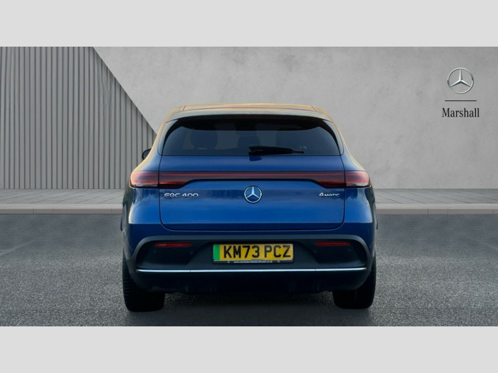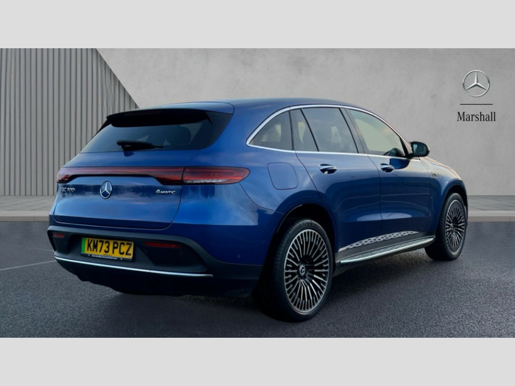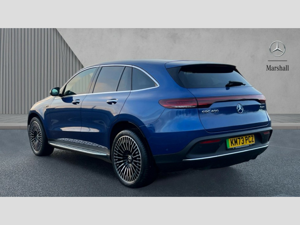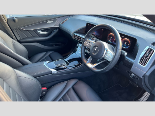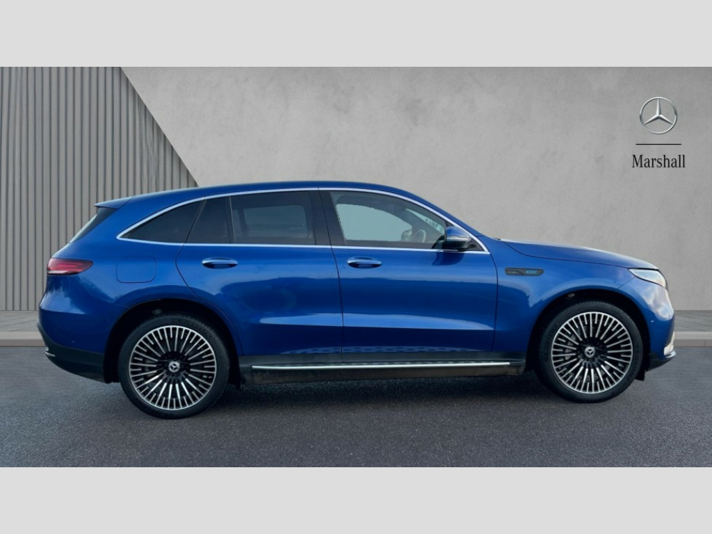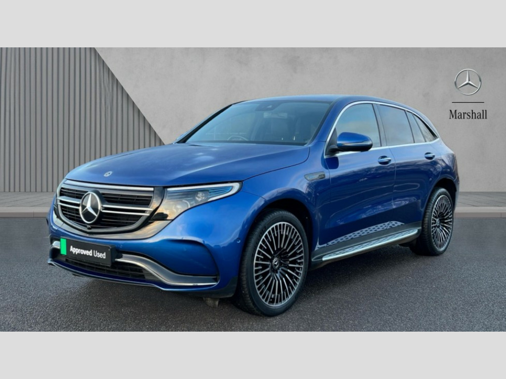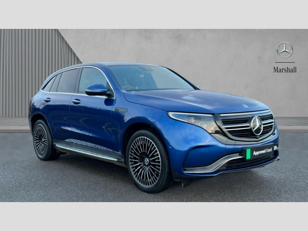 Mercedes-Benz Eqc EQC 400 300kW AMG Line Premium 80kWh 5dr Auto Acoustic ambient protection, Active lane departure warning system, Blind spot assist, Cruise control, DYNAMIC SELECT with a choice of driving modes (max range, ECO, comfort and sport), Easy-pack tailgate, Electronic Power Steering (EPS), EQ navigation services - map (range display), display charging stations, programming of charging settings and pre entry climate control, Hard-disk navigation, Mercedes Benz emergency call system, Mercedes me connect, Smartphone integration, Traffic sign assist, 11KW onboard charger, 4MATIC all wheel drive, Charging cable for wall box and public charging station - 4m - Type 2 (mode 3), Charging system - AC charging system rated at 7.4kW and 110kW DC charging system, Combined charging system CCS-2 connector, Comfort suspension with self levelling rear air suspension, DAB Digital radio, MBUX multimedia system with 10.25" instrument and 10.25" media display with touchscreen, Mercedes Benz sound system with 4 mid range speakers, 2 tweeters, 2 Frontbass speakers, 1 centre speaker and 225 W amplifier output, Aluminium running boards, AMG specific black panel radiator grille with twin blade design and high gloss black surround, AMG specific front apron with jet wing design, visible air intakes with chrome trim parts and high gloss black inserts and air curtains, AMG specific rear apron with visible air outlets, black diffuser insert and chrome trim elements, Badge on the wing in high gloss black with chrome stripes and blue EQC lettering, Daytime running lights, Electric sliding sunroof, Front and rear LED light band, Heat and noise insulating acoustic glass, High gloss black exterior mirror housing, LED third brake light, Multibeam LED headlights with inner housing and high gloss black tubes/blue stripes, adaptive highbeam assist +, cornering and cross traffic functions, Privacy glass, Rear side wing doors, Rear wiper, Vehicle Monitoring, Vehicle Setup, 12V Accessory socket in the load area, 3 seat bench in 2nd row, 3 spoke AMG multifunction sports steering wheel in nappa leather with chrome control panels and flattened bottom section with perforated grip area, 40:20:40 split folding rear seats, AMG brushed stainless steel sports pedals with black rubber studs, AMG floor mats, AMG sports seats, Black fabric roof liner, Charging socket, Dashboard in ARTICO man-made leather with metallised look finish and rose gold piping, Front and rear head restraints, Heated front seats, Interior lighting - 64 colour Ambient lighting, Leather upholstery, Single front passenger seat, Air balance package - EQC, Energizing package - EQC, Interior light package - EQC, Keyless go comfort package - EQC, Mirror package with heated door mirror - EQC, Parking package with active park assist with reversing camera - EQC, Seat comfort pack - EQC, Stowage package - EQC, 3 rear seatbelts, 6 airbags - Driver, front passenger, curtain and side airbags, ABS, Active brake assist, Child locks on rear doors, Radar-based recuperation, Urban guard vehicle protection, Anthracite carbon fibre look trim with high gloss centre console, 21" AMG mutli spoke alloy wheels painted black with high sheen finish, Summer tyres, Tirefit