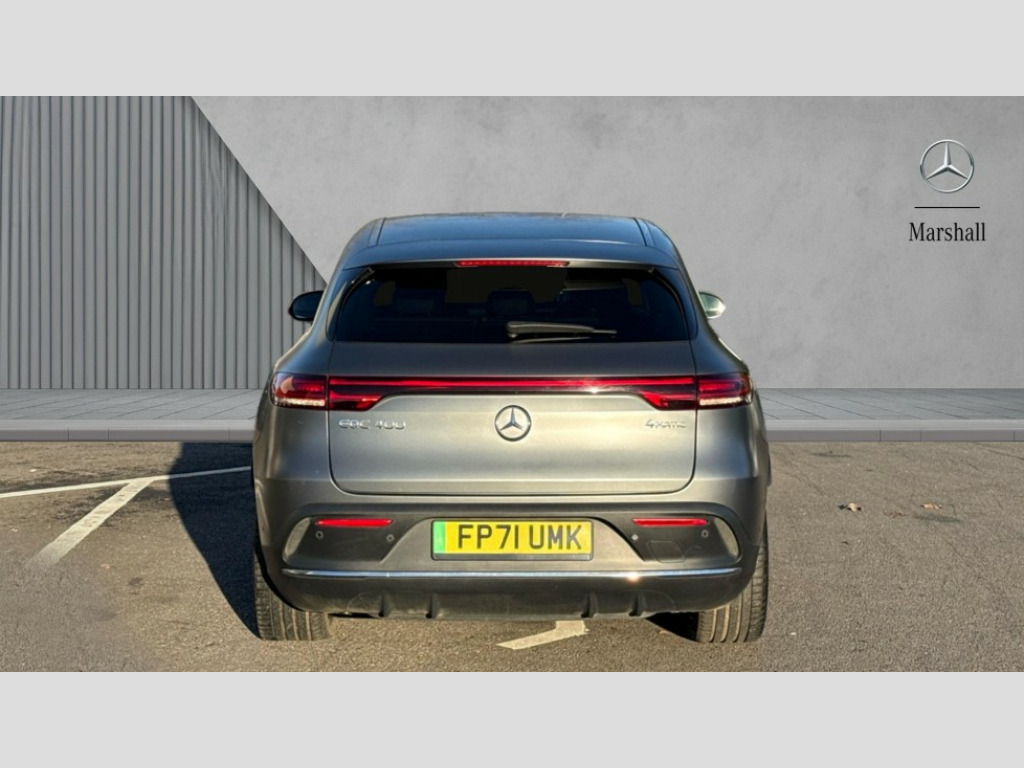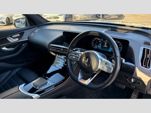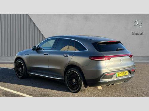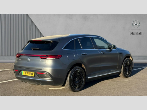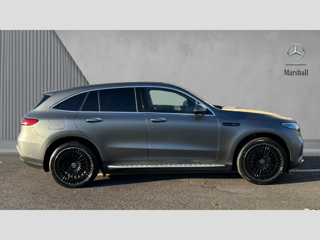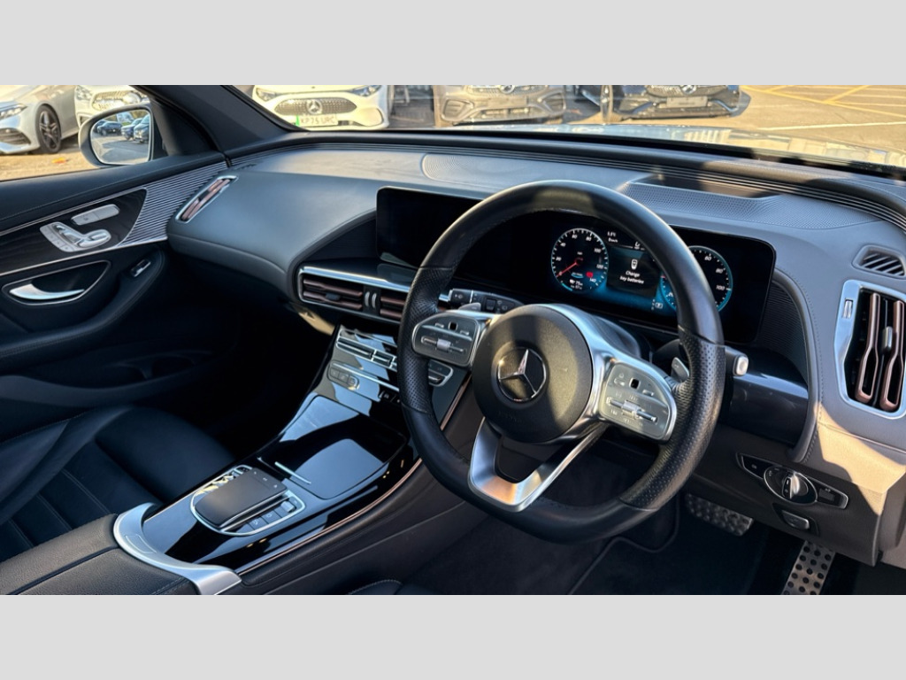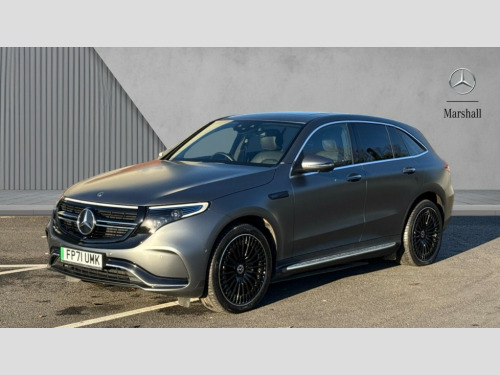 Mercedes-Benz Eqc EQC 400 300kW AMG Line Premium Plus 80kWh 5dr Auto Acoustic ambient protection, DYNAMIC SELECT with a choice of driving modes (max range, ECO, comfort and sport), Easy-pack tailgate, Electronic Power Steering (EPS), EQ navigation services - map (range display), display charging stations, programming of charging settings and pre entry climate control, Hard-disk navigation, Head up Display, MBUX Interior assistant, Mercedes Benz emergency call system, Mercedes me connect, Smartphone integration, Traffic sign assist, 11KW onboard charger, 4MATIC all wheel drive, Charging cable for wall box and public charging station - Type 2(mode 3) 5m, Charging system - AC charging system rated at 7.4kW and 110kW DC charging system, Combined charging system CCS-2 connector, Comfort suspension with self levelling rear air suspension, DAB Digital radio, MBUX multimedia system with 10.25" instrument and 10.25" media display with touchscreen, Aluminium running boards, AMG specific black panel radiator grille with twin blade design and high gloss black surround, AMG specific front apron with jet wing design, visible air intakes with chrome trim parts and high gloss black inserts and air curtains, AMG specific rear apron with visible air outlets, black diffuser insert and chrome trim elements, Badge on the wing in high gloss black with chrome stripes and blue EQC lettering, Electric sliding sunroof, Front and rear LED light band, Heat and noise insulating acoustic glass, High gloss black exterior mirror housing, Multibeam LED headlights with inner housing and high gloss black tubes/blue stripes, adaptive highbeam assist +, cornering and cross traffic functions, Privacy glass, 12V Accessory socket in the load area, 3 spoke AMG multifunction sports steering wheel in nappa leather with chrome control panels and flattened bottom section with perforated grip area, 40:20:40 split folding rear seats, AMG brushed stainless steel sports pedals with aluminium rubber studs, AMG floor mats, AMG sports seats, Black fabric roof liner, Charging socket, Dashboard in ARTICO man-made leather with metallised look finish and rose gold piping, Front and rear head restraints, Heated front seats, Interior lighting - 64 colour Ambient lighting, Leather upholstery, Air balance package - EQC, Energizing package - EQC, Interior light package - EQC, Keyless go comfort package - EQC, Mirror package with heated door mirror - EQC, Parking package with active parking assist and 360 degree camera - EQC, Stowage package - EQC, 3 rear seatbelts, 6 airbags - Driver, front passenger, curtain and side airbags, ABS, Radar-based recuperation, Urban guard vehicle protection, Black open pore ash wood trim with high gloss centre console, 21" AMG multi spoke alloy wheels in black, Summer tyres, Tirefit