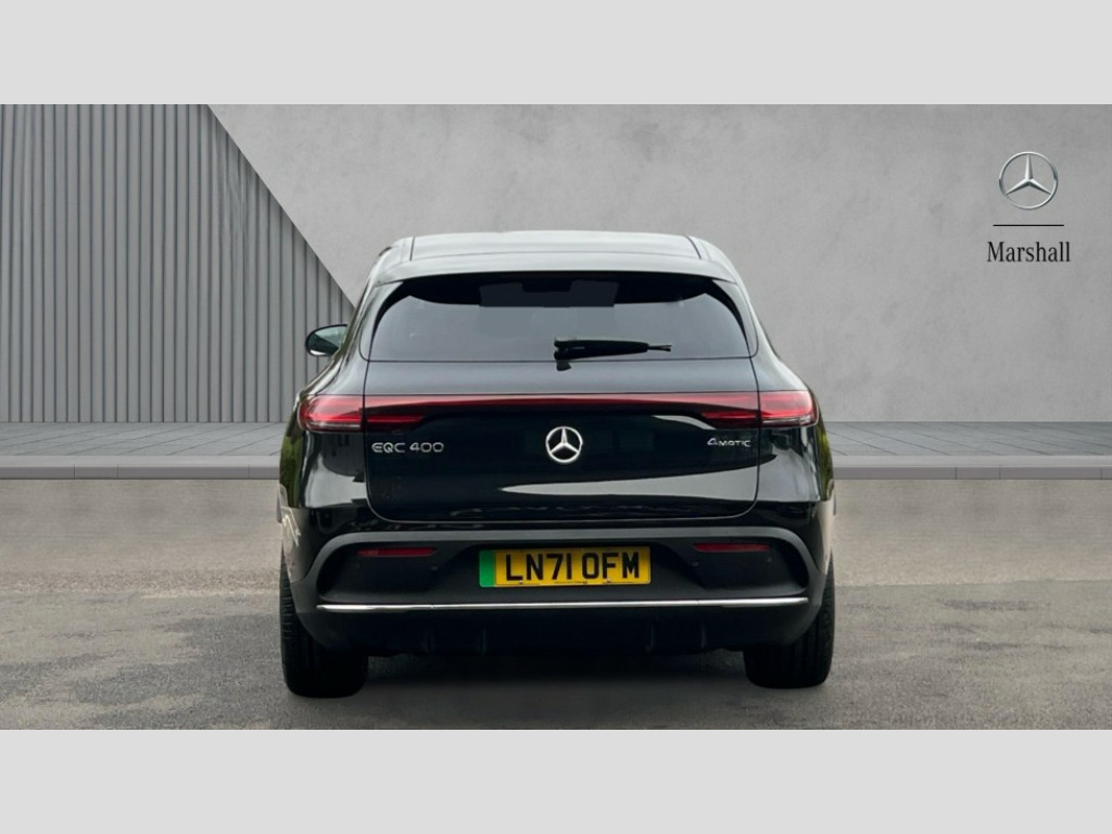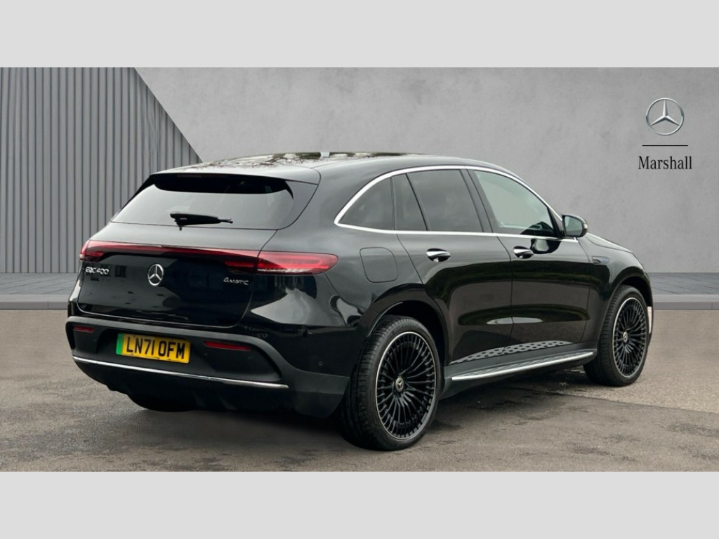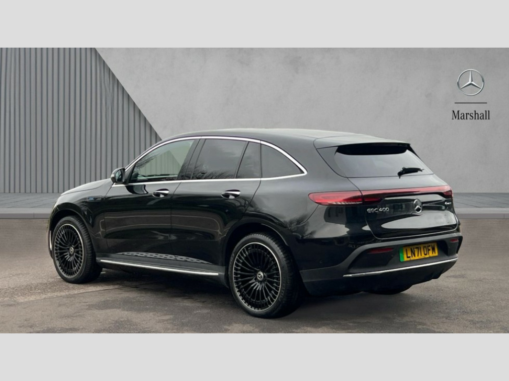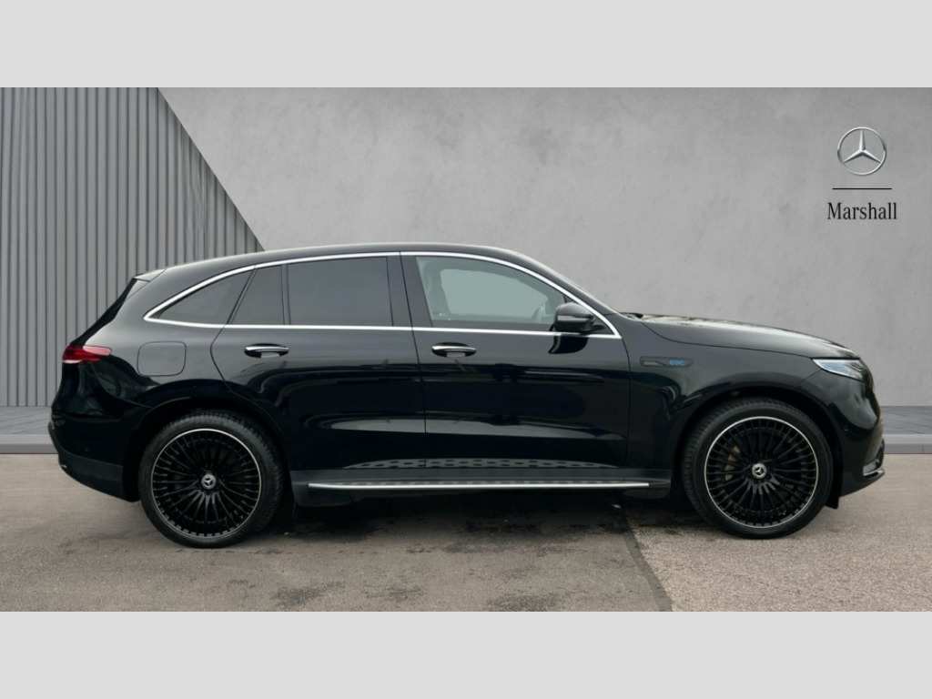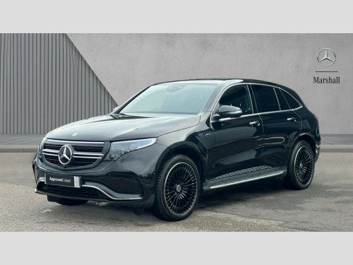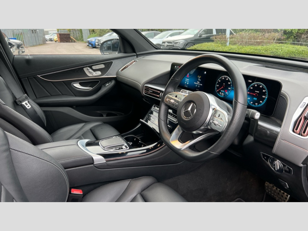 Mercedes-Benz Eqc EQC 400 300kW AMG Line Premium Plus 80kWh 5dr Auto Acoustic ambient protection, DYNAMIC SELECT with a choice of driving modes (max range, ECO, comfort and sport), Easy-pack tailgate, Electronic Power Steering (EPS), EQ navigation services - map (range display), display charging stations, programming of charging settings and pre entry climate control, Hard-disk navigation, Head up Display, MBUX Interior assistant, Mercedes Benz emergency call system, Mercedes me connect, Smartphone integration, Traffic sign assist, 11KW onboard charger, 4MATIC all wheel drive, Charging cable for wall box and public charging station - Type 2(mode 3) 5m, Charging system - AC charging system rated at 7.4kW and 110kW DC charging system, Combined charging system CCS-2 connector, Comfort suspension with self levelling rear air suspension, DAB Digital radio, MBUX multimedia system with 10.25" instrument and 10.25" media display with touchscreen, Aluminium running boards, AMG specific black panel radiator grille with twin blade design and high gloss black surround, AMG specific front apron with jet wing design, visible air intakes with chrome trim parts and high gloss black inserts and air curtains, AMG specific rear apron with visible air outlets, black diffuser insert and chrome trim elements, Badge on the wing in high gloss black with chrome stripes and blue EQC lettering, Electric sliding sunroof, Front and rear LED light band, Heat and noise insulating acoustic glass, High gloss black exterior mirror housing, Multibeam LED headlights with inner housing and high gloss black tubes/blue stripes, adaptive highbeam assist +, cornering and cross traffic functions, Privacy glass, 12V Accessory socket in the load area, 3 spoke AMG multifunction sports steering wheel in nappa leather with chrome control panels and flattened bottom section with perforated grip area, 40:20:40 split folding rear seats, AMG brushed stainless steel sports pedals with aluminium rubber studs, AMG floor mats, AMG sports seats, Black fabric roof liner, Charging socket, Dashboard in ARTICO man-made leather with metallised look finish and rose gold piping, Front and rear head restraints, Heated front seats, Interior lighting - 64 colour Ambient lighting, Leather upholstery, Air balance package - EQC, Energizing package - EQC, Interior light package - EQC, Keyless go comfort package - EQC, Mirror package with heated door mirror - EQC, Parking package with active parking assist and 360 degree camera - EQC, Stowage package - EQC, 3 rear seatbelts, 6 airbags - Driver, front passenger, curtain and side airbags, ABS, Radar-based recuperation, Urban guard vehicle protection, Black open pore ash wood trim with high gloss centre console, 21" AMG multi spoke alloy wheels in black, Summer tyres, Tirefit