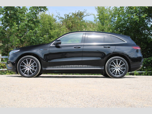 Finished in Obsidian Black metallic with full black leather interior. Features include 10.25” instrument cluster and infotainment display, satellite navigation, keyless go comfort package, 20” diamond turned multispoke aero-design alloy wheels, 360-degree park distance control with rear view camera, park assist, heated front sport seats with electric adjustment, digital dual zone climate control with automatic air conditioning, Bluetooth connectivity with media streaming, DAB digital radio, Multibeam LED headlights, rain sensor, cruise control, dynamic select, traffic sign assist, lane keeping assist, brake assist, blind spot assist, attention assist, electric folding exterior mirrors, rear privacy glass, interior ambient lighting, anthracite carbon fibre effect interior trim, running boards, illuminated EQC door sills, voice control, electric tailgate, multifunctional leather steering wheel, automatic transmission plus much more standard specification. This EQC400 80kWh 4Matic is offered in excellent condition having covered 37700 miles from new by its 1 owner. Car comes complete with a full Mercedes service history consisting of the following - 27/04/2022 at 9389 miles, 17/05/2023 at 18873 miles and 22/05/2024 at 28566 miles.