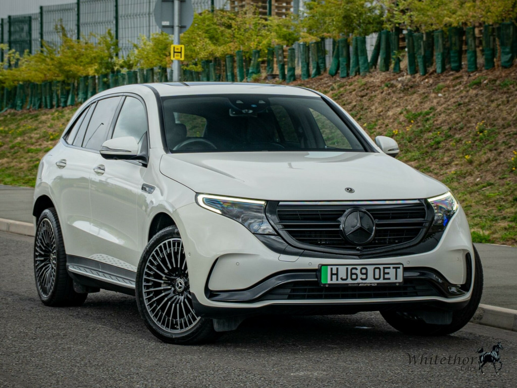 FREE DELIVERY WITHIN 200 MILES- Here we have a superb Mercedes-Benz EQC Premium Plus finished in Designo White Metallic. This is the highest level trim being a Premium Plus with options such as: 21in Alloy Wheels AMG Multi-Spoke Design -- 110kW DC & 7.4kW On-board Charger -- Blind Spot Assist -- Burmester Surround Sound System -- Sunroof -- 360 Camera -- RARE Exterior Extended Black Pack -- MBUX Multimedia System with 10.25-inch Instrument Display and 10.25-inch Media Display with Touchscreen -- KEYLESS-GO Comfort Package -- Interior Lighting Package -- Head-Up Display and much more! The car has Full Service history with 7 Services ( 5 Mercedes, 2 Independent) Last Serviced at 35k Miles. MOT Expires 22/08/2025, 3 Month £2000 Claim Limit Warranty is included with the sale but the option to upgrade to a 12M, 24M, & 36M £5000 Claim Limit Nation Wide Premium Autoguard Warranty with Breakdown Cover is available. Multiple Finance Options, Competitive Part Exchange Prices. All Cars Are HPI, MotorCheck & Experian Clear. Further Vehicle Delivery Options Also Available. All Rights Reserved - Whitethor cars exercise all reasonable care and skill in providing you with vehicle information and data. The specification is attained through HPI, Experian & Autotrader VRM. Options Sold as packs may be shown individually, spec check is a guide so please contact us or physically verify any info that is crucial.
