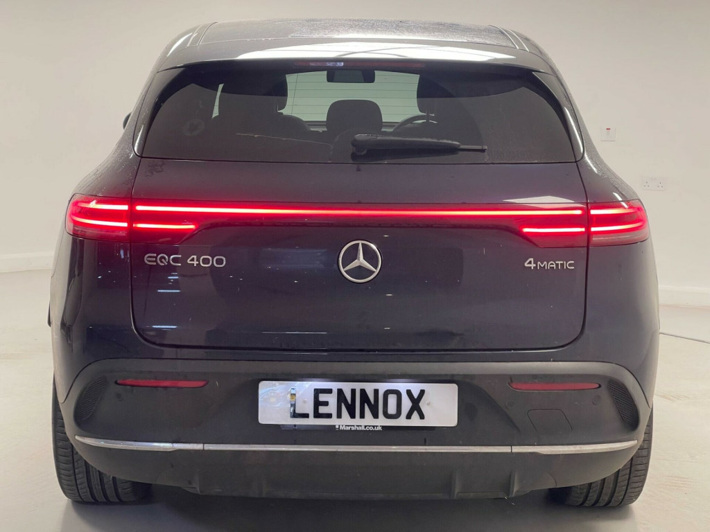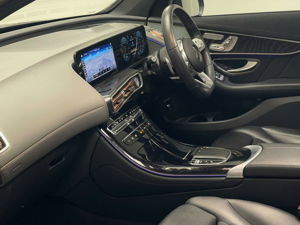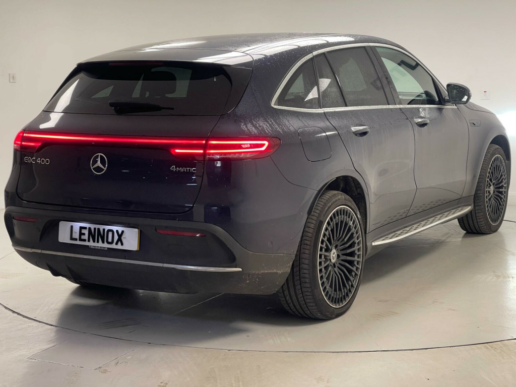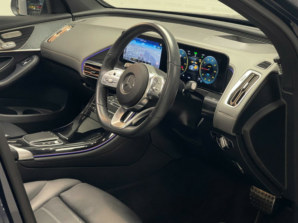 This 2021 Mercedes-Benz EQC 400 AMG Line (Premium Plus) has been cherished by just one owner since new. As an all electric, four wheel drive SUV, it offers a sophisticated driving experience. The EQC 400 AMG Line (Premium Plus) boasts a substantial 88 kWh battery, providing a maximum range of 244 miles when new. Charging is convenient, with a full charge at home taking approximately 12 hours and 13 minutes using a 7kW charger, while rapid public charging can replenish the battery from empty to 80% in as little as 45 minutes. Notable features include advanced MULTIBEAM LED headlights for superior visibility, Blind Spot Assist to enhance safety, and a comprehensive Parking Package with a 360 degree camera and parking sensors for effortless manoeuvring. The KEYLESS-GO Comfort Package ensures easy access, and the electric sliding sunroof adds an open and airy feel to the cabin.Experience impressive performance with the Mercedes-Benz EQC, capable of accelerating from 0 to 62mph in a swift 5.1 seconds, demonstrating its dynamic capabilities. This electric SUV also offers a generous boot space, making it practical for everyday use and longer journeys. The combination of its electric powertrain, advanced technology, and luxurious appointments positions the EQC 400 AMG Line (Premium Plus) as a compelling choice for those seeking an electric vehicle that excels in both performance and refinement. 0kw dc on-board charger, 11kw on-board charger, 12v socket in load area, 21in alloy wheels - amg multi-spoke design - painted black with high-sheen finish, abs - anti-lock braking system, amg brushed stainless steel sports pedals with black rubber studs, amg-specifc rear apron with visible air outlets, amg-specific black panel radiator grille in a twin-blade design and surround in high-gloss black, active brake assist, active lane departure warning, air balance package, airbags - driver and front passenger, aluminium - running boards, ambient lighting, augmented reality navigation, badge on the wing in high-gloss black with chrome stripes and blue eqc lettering, blind spot assist, burmester surround sound system, ccs-2 connector - combined charging system - compatible with ac and dc, charging cable for wallbox and public charging stations - type 2 mode 3 - 4m, comfort suspension - including self-levelling rear air suspension, cruise control, dashboard in artico, digital radio, door mirrors - high gloss black, dynamic select, easy-pack electric tailgate, eq navigation services, electric sliding sunroof, electric windows - front and rear, energizing package, floor mats - amg, front and rear led light bands, hard-disk navigation, head-up display, heat and noise insulating acoustic glass, heated front seats, ionity 1 year, interior lighting package, keyless-go comfort package, live traffic information, mbux - mercedes-benz user experience - infotainment system, mbux interior assistant, mbux multimedia system with 10.25-inch instrument display and 10.25-inch media display with touchscreen, multibeam led headlights, memory package, mercedes me charge (3 year subscription from new), mercedes me connect, mercedes me connect - vehicle monitoring, mercedes me connect - vehicle set-up, mirror package, multifunction sports steering wheel in nappa leather with control panels in chrome - flattened bottom section and perforated grip area, parking package with parking assist parktronic and 360 camera, power assisted steering, privacy glass, roof lining - black fabric, seats - amg sports in leather, seats - rear split folding 40-20-40, smartphone integration, start button illuminated in white, stowage package, tirefit, trim - anthracite carbon-fibre look trim with high gloss black centre console, urban guard vehicle protection, wireless smartphone charging