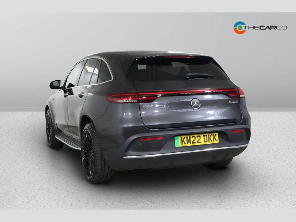 This 2022 Mercedes Benz EQC 400 AMG Line (Premium Plus) offers an exceptional blend of electric performance and luxury. As a fully electric vehicle with four wheel drive, it delivers a smooth and responsive driving experience. The substantial 88 kWh battery provides a maximum range of 253 miles when new, ensuring ample capability for your journeys. Charging is convenient, with a full charge at home taking approximately 12 hours and 13 minutes using a 7kW charger, while rapid public charging can achieve 80% capacity in just 45 minutes. This EQC is equipped with the desirable AMG Line trim, enhancing its sporty appeal. The EQC 400 AMG Line (Premium Plus) stands out with a suite of premium features designed for comfort and convenience. The Parking Package, complete with Parking Assist PARKTRONIC and a 360 camera, makes manoeuvring effortless. Enjoy immersive audio with the Burmester Surround Sound System, and experience an open, airy cabin thanks to the electric sliding sunroof. Stay connected and powered up with wireless smartphone charging, and relax on colder days with heated front seats. The impressive acceleration of 0-62mph in just 5.1 seconds highlights its dynamic capabilities, setting it apart from many other electric vehicles. Furthermore, the generous boot space ensures practicality for all your needs. 110kW DC On-board Charger, 11kW On-Board Charger, 12V Socket in Load Area, 21in Alloy Wheels - AMG Multi-Spoke Desi, ABS - Anti-Lock Braking System, AMG Brushed Stainless Steel Sports Pedal, AMG-Specifc Rear Apron with Visible Air , AMG-Specific Black Panel Radiator Grille, Active Brake Assist, Active Lane Departure Warning, Air Balance Package, Airbags - Driver and Front Passenger, Aluminium - Running Boards, Ambient Lighting, Augmented Reality Navigation, Badge on the Wing in High-Gloss Black wi, Blind Spot Assist, Burmester Surround Sound System, CCS-2 Connector - Combined Charging Syst, Charging Cable for Wallbox and Public Ch, Comfort Suspension - including Self-Leve, Cruise Control, Da