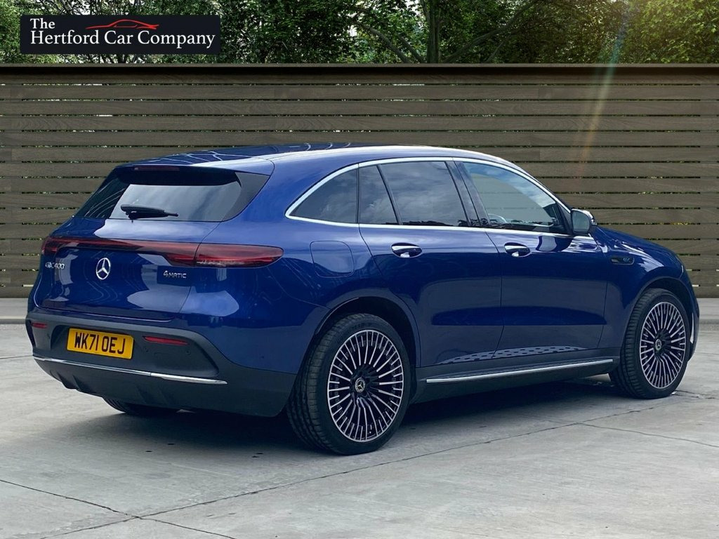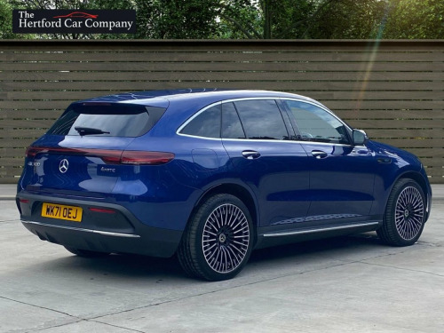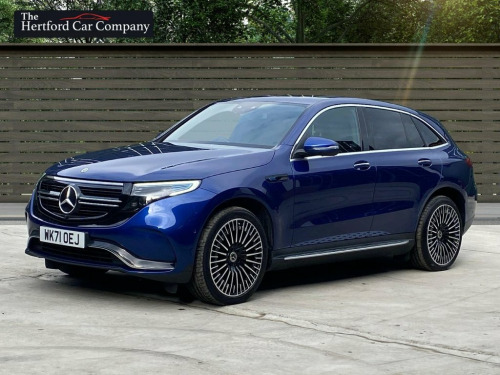 This 2021 Mercedes-Benz EQC 400 AMG Line (Premium Plus) has had only one owner from new, offering a pristine example of this electric four wheel drive SUV. As an EQC 400, it boasts an 88 kWh battery providing a maximum range of 244 miles when new. Charging at home using a 7kW charger will take approximately 12 hours and 13 minutes for a full charge, while rapid public charging can replenish the battery from empty to 80% in just 45 minutes. This particular model comes with the desirable AMG Line trim and includes a wealth of premium features such as heated front seats, a comprehensive Parking Package with a 360 degree camera and front and rear sensors, and advanced MULTIBEAM LED headlights. Further enhancing the driving experience are the Head-Up Display and the KEYLESS-GO Comfort Package for effortless entry and starting. The Mercedes-Benz EQC 400 AMG Line (Premium Plus) offers a compelling blend of performance and practicality. Its electric drivetrain delivers instant torque, propelling it from 0-60mph in a swift 5.1 seconds, a performance that sets it apart from many other electric SUVs. The generous boot space ensures you have ample room for luggage or shopping. The combination of its impressive acceleration, extensive range, and advanced technology, including the parking assistance and head up display, makes this EQC a superior choice for those seeking a sophisticated and capable electric vehicle. 110kW DC On-board Charger, 11kW On-Board Charger, 12V Socket in Load Area, 21in Alloy Wheels - AMG Multi-Spoke Desi, ABS - Anti-Lock Braking System, AMG Brushed Stainless Steel Sports Pedal, AMG-Specifc Rear Apron with Visible Air , AMG-Specific Black Panel Radiator Grille, AMG-Specific Front Apron in a Jet-Wing D, Active Brake Assist, Active Lane Departure Warning, Airbags - Driver and Front Passenger, Aluminium - Running Boards, Ambient Lighting, Badge on the Wing in High-Gloss Black wi, Blind Spot Assist, CCS-2 Connector - Combined Charging Syst, Charging Cable for Domestic Plug Socket , Charging Cable for Wallbox and Public Ch, Cruise Control, Dashboard in ARTICO, Digital Radio, Door Mir