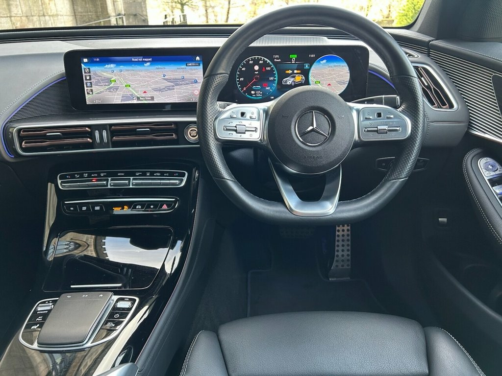 This 2022 Mercedes Benz EQC 400 AMG Line (Premium Plus) is presented in excellent condition, having had only one owner since new. As a fully electric vehicle, it offers a sophisticated driving experience with its Four Wheel Drive drivetrain. The substantial 88 kWh battery provides a maximum range of 253 miles when new, and can be fully charged at home using a 7kW charger in approximately 12 hours and 13 minutes. For quicker top ups, it can reach 80% charge in just 45 minutes at a compatible public charging station. This EQC comes equipped with the desirable AMG Line trim and the Premium Plus package, enhancing its already impressive specification. The driving performance of this electric Mercedes Benz is truly remarkable, achieving 0-60mph in a swift 5.1 seconds, demonstrating its dynamic capability. Notable features include Electric Sliding Panoramic Roof, THERMATIC Climate Control for consistent cabin comfort, the KEYLESS-GO Comfort Package for effortless access and starting, and Heated Front Seats for those colder journeys. Safety and visibility are enhanced by Blind Spot Assist, Camera and advanced MULTIBEAM LED Headlights. These features collectively contribute to a superior driving experience, setting this EQC apart from other vehicles in its class. Graphite Grey, 110kW DC On-board Charger, 11kW On-Board Charger, 12V Socket in Load Area, 21in Alloy Wheels - AMG Multi-Spoke Desi, ABS - Anti-Lock Braking System, Active Brake Assist, Active Lane Departure Warning, Air Balance Package, Airbags - Driver and Front Passenger, Aluminium - Running Boards, Ambient Lighting, Blind Spot Assist, CCS-2 Connector - Combined Charging Syst, Charging Cable for Wallbox and Public Ch, Cruise Control, DAB Digital Radio, Dashboard - Leather-look, Dynamic Select, EASY-PACK Electric Tailgate, EQ Navigation Services, Electric Sliding Sunroof, Electric Windows - Front and Rear, Energizing Package, Floor Mats - AMG, Front and Rear LED Light Bands, Hard-Disk Navig