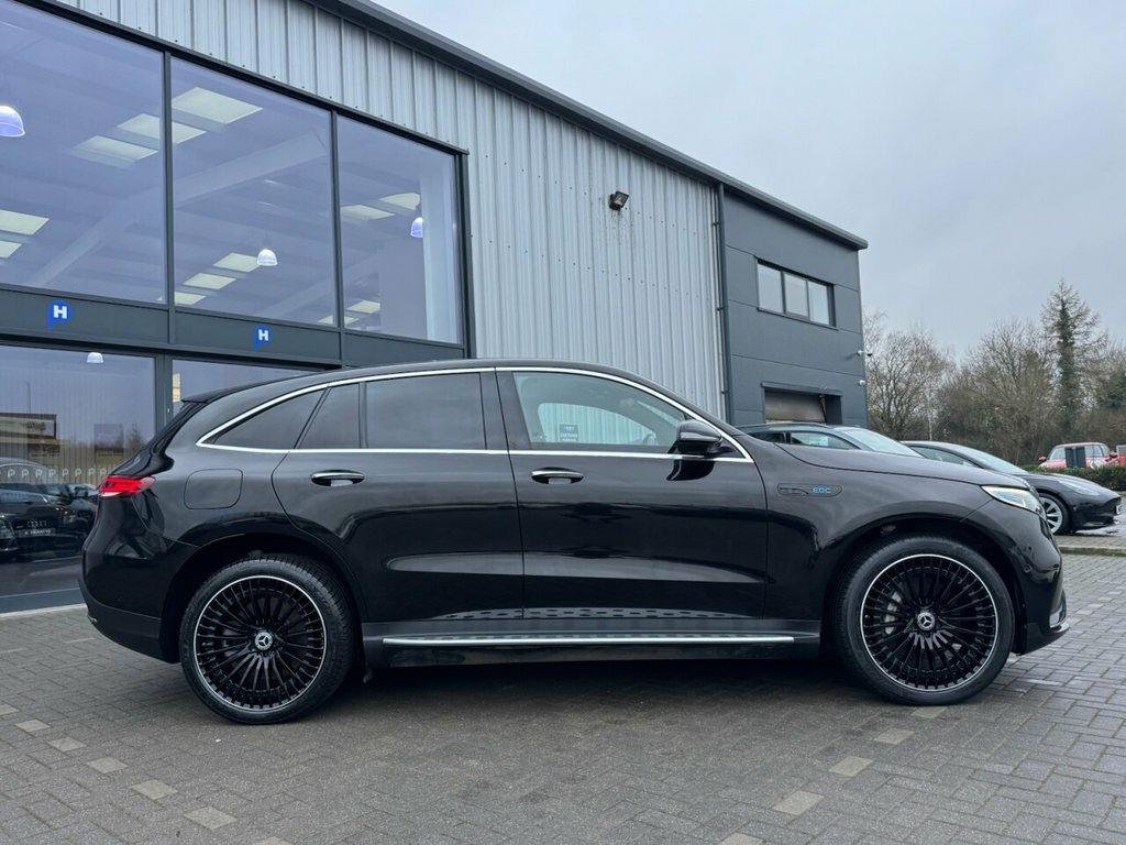 DRIVE HOME TODAY IN THIS UTTERLY SUPERB 2022 MERCEDES BENZ EQC 400 80KWH AMG LINE PREMIUM PLUS 4MATIC 408BHP ELECTRIC 5 DOOR FINISHED IN OBSIDIAN BLACK AND TRIMMED WITH FULL HEATED AND ELECTRIC MEMORY BLACK LEATHER SEATING. ONE KEEPER FROM NEW WITH ONLY 34K MILES WITH A SERVICE HISTORY AND JUST SERVICED ON THE 13-01-2026. A WONDERFUL COMBINATION OF STYLE, LUXURY AND ECONOMY. HUGE SPECIFICTION INC 21"ALLOY WHEELS, PRIVACY GLASS, HEAD UP DISPALY, 360 CAMERA, NAVIGATION, ELECTRIC TAIL GATE, LARGE SCREEN NAVIGATION, KEY LESS, ELECTRIC FOLDING MIRRORS, GLASS PANORAMIC SUN-ROOF ALONG WITH ALL THE USUAL MERCEDES REFINEMENTS Leather - Black, Obsidian Black, 110kW DC On-board Charger, 11kW On-Board Charger, 12V Socket in Load Area, 21in Alloy Wheels - AMG Multi-Spoke Desi, ABS - Anti-Lock Braking System, AMG Brushed Stainless Steel Sports Pedal, AMG-Specifc Rear Apron with Visible Air , AMG-Specific Black Panel Radiator Grille, AMG-Specific Front Apron in a Jet-Wing D, Active Brake Assist, Active Lane Departure Warning, Airbags - Driver and Front Passenger, Aluminium - Running Boards, Ambient Lighting, Badge on the Wing in High-Gloss Black wi, Blind Spot Assist, CCS-2 Connector - Combined Charging Syst, Charging Cable for Wallbox and Public Ch, Cruise Control, Dashboard in ARTICO, Digital Radio, Door Mirrors - Hi