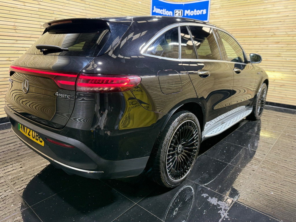 This Mercedes EQC AMG Premium Puls has only 1 owner and comes with Battery Certification A at 96% battery capacity , long Mot , 2 keys This is Top of the range model with Fantastic spec including Electric Sunroof , Head up display , Memory seats , Heated Black Leather Trim , 360 cameras , electric tailgate , electric adjustable steering wheel , Satellite Navigation , Bluetooth Connectivity , 21 '' alloys Junction 21 Motors Ltd is a family-run business with over 15 years of experience in the motor trade. We are an AA Approved Garage, conveniently located at Rolstone Farm, just half a mile from M5 Junction 21. FCA Registered - working with a wide panel of trusted finance providers Part Exchange Welcome All Viewings by Appointment Only (fees may apply) Opening Hours: •Monday - Friday: 9:30am - 6:00pm •Saturday: 10:00am - 5:00pm •Sunday: Hours vary (please call to confirm) Call us on 01934 268 001 Visit our website for directions and to browse our latest stock. 0kw dc on-board charger, 11kw on-board charger, active lane departure warning, blind spot assist, charging cable for wallbox and public charging stations - type 2 mode 3 - 4m, cruise control, dynamic select, head-up display, power assisted steering, traffic sign assist, 12v socket in load area, dab digital radio, hard-disk navigation, ionity 1 year, live traffic information, mbux - mercedes-benz user experience - infotainment system, mbux multimedia system with 10.25-inch instrument display and 10.25-inch media display with touchscreen, mercedes me charge (3 year subscription from new), mercedes me connect, mercedes-benz emergency call system, mercedes-benz sound system, smartphone integration, wireless smartphone charging, 21in alloy wheels - amg multi-spoke design - aerodynamically optimised - painted high-gloss black with a high-sheen rim, aluminium - running boards, ccs-2 connector - combined charging system - compatible with ac and dc, electric sliding sunroof, electric windows - front and rear, front and rear led light bands, heat and noise insulating acoustic glass, mirror package, privacy glass, summer tyres, tirefit, abs - anti-lock braking system, active brake assist, airbags - driver and front passenger, parking package with parking assist parktronic and 360 camera, urban guard vehicle protection, air balance package, ambient lighting, dashboard - leather-look, easy-pack electric tailgate, eq navigation services, energizing package, floor mats - amg, heated front seats, interior lighting package, keyless-go comfort package, mbux interior assistant, memory package, multifunction sports steering wheel in nappa leather with control panels in chrome - flattened bottom section and perforated grip area, roof lining - black fabric, seats - rear split folding 40-20-40, stowage package, thermatic climate control, trim - black open-pore ash wood with high gloss centre console, multibeam led headlights