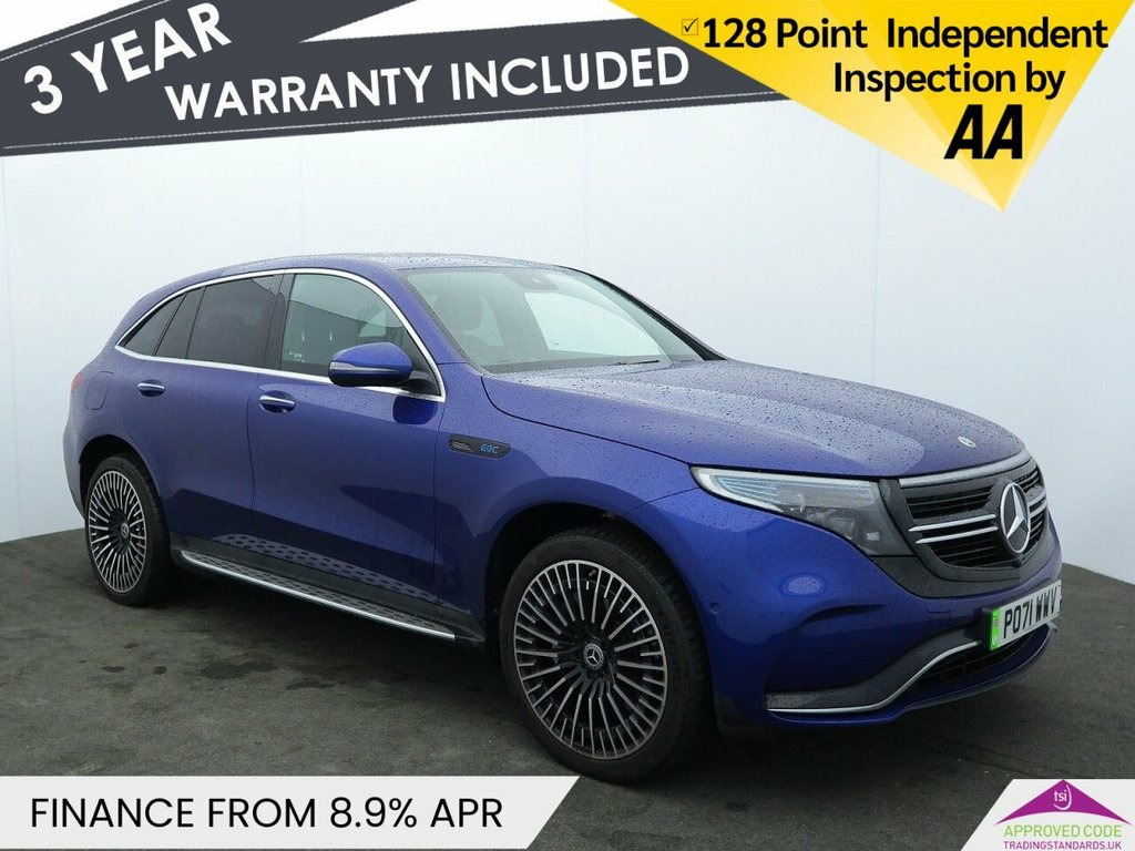This 2021 Mercedes-Benz EQC 400 AMG Line (Premium) boasts a clear vehicle history and a long MOT, offering peace of mind for its next owner. As an all electric, four wheel drive SUV, it combines advanced technology with impressive performance. The AMG Line trim enhances its sporty appeal, while features like the Parking Package with Parking Assist PARKTRONIC and Rear Camera, Blind Spot Assist, and KEYLESS-GO Comfort Package ensure convenience and safety. Enjoy an open and airy cabin with the Electric Sliding Sunroof and brilliant visibility at night thanks to the MULTIBEAM LED Headlights. Experience the thrill of instant acceleration with the EQC 400, reaching 0-60mph in a swift 5.1 seconds, a performance that sets it apart from many other electric vehicles. With a substantial 88 kWh battery, you can expect a maximum range of 245 miles when new, and charging is efficient, taking approximately 12 hours and 13 minutes at home using a 7kW charger, or a rapid 45 minutes from empty to 80% at a public charging station. This Mercedes-Benz also offers generous boot space, making it a practical choice for everyday life and longer journeys. 12V Socket in Load Area, Digital Radio, Hard-Disk Navigation, Live Traffic Information, MBUX - Mercedes-Benz User Experience - I, MBUX Multimedia System with Widescreen C, Mercedes Me Connect, Mercedes-Benz Emergency Call System, Smartphone Integration, 21in Alloy Wheels - AMG Multi-Spoke Desi, Aluminium - Running Boards, AMG-Specifc Rear Apron with Visible Air , AMG-Specific Black Panel Radiator Grille, AMG-Specific Front Apron in a Jet-Wing D, Badge on the Wing in High-Gloss Black wi, CCS-2 Connector - Combined Charging Syst, Door Mirrors - High Gloss Black, Electric Sliding Sunroof, Electric Windows - Front and Rear, Front and Rear LED Light Bands, Heat and Noise Insulating Acoustic Glass