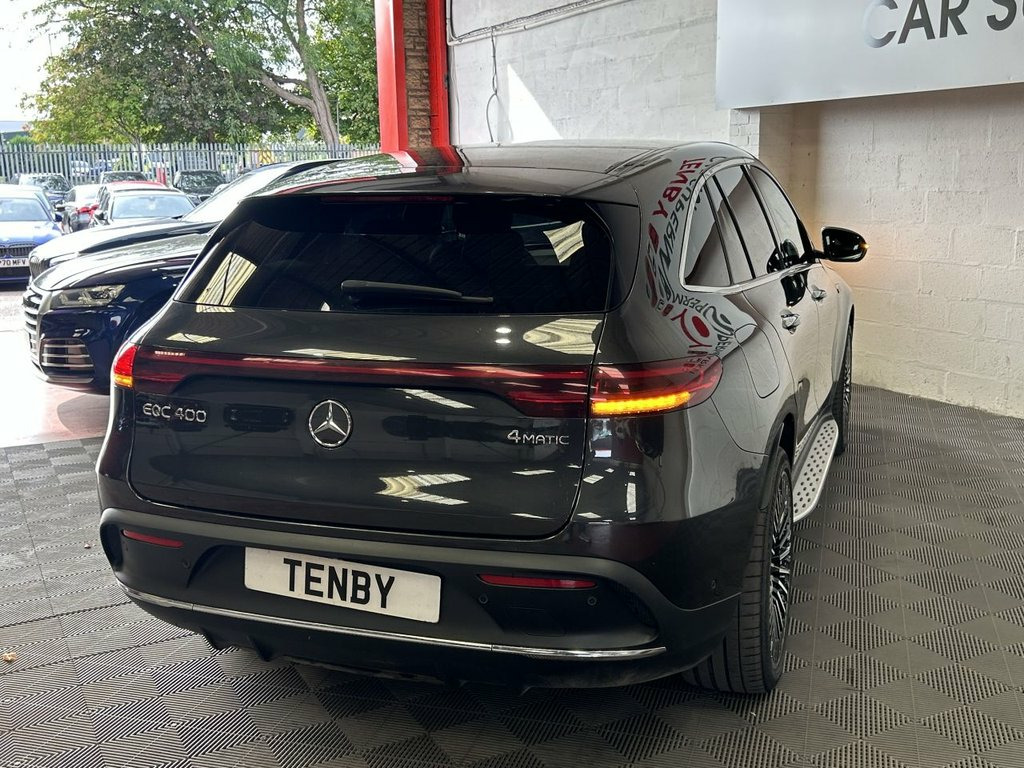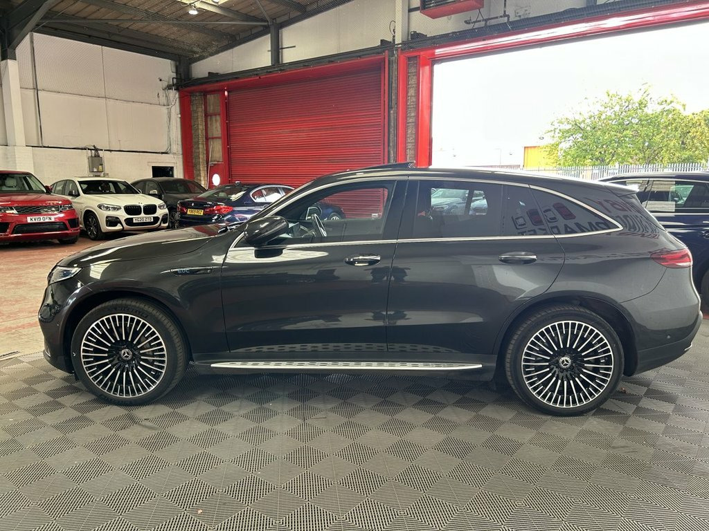 MERCEDES-BENZ EQC EQC 400 80kWh AMG Line (Premium) SUV 5dr Electric Auto 4MATIC (408 ps); COMES WITH; - SUN ROOF - BURMESTER AUDIO - REVERSE CAMERA - LANE ASSIST - MULTI COLOUR AMBIENT LIGHTS - APPLE CARPLAY - ANDROID AUTO - FRONT HEATED SEATS - FM/AM/DAB - CRUISE CONTROL - VOICE COMMANDS - 2 ZONE CLIMATE CONTROL - STEERING WHEEL WITH COMMANDS&PADDLE SHIFTERS - AUTO LIGHTS - AUTO WIPERS - AUTO FOLD MIRRORS DISCLAIMER: THE MILEAGE OF THE CAR MIGHT INCREASE SLIGHTLY DUE TO TEST DRIVES Please note : We have completed a DVSA database check to establish whether any manufacturers' recall is pending on this vehicle. If a recall has been identified it is referred to in the vehicle description and we will use our best endeavours to ensure that the recall is completed before the time of sale. If there is no reference to a manufacturers' recall, it is based on the information supplied by the DVSA at the time of the check but customers are reminded that the DVSA database is only an indicative check and cannot be relied upon as wholly accurate. Customers are encouraged to independently verify the information before proceeding. Any recall detailed will in any event be dealt with by the manufacturer / manufacturers dealer free of charge. 110kW DC On-board Charger, 12V Socket in Load Area, 21in Alloy Wheels - AMG Multi-Spoke Desi, 7.4kW On-board Charger, ABS - Anti-Lock Braking System, AMG Brushed Stainless Steel Sports Pedal, AMG-Specifc Rear Apron with Visible Air , AMG-Specific Black Panel Radiator Grille, Active Brake Assist, Active Lane Departure Warning, Air Balance Package, Airbags - Driver and Front Passenger, Aluminium - Running Boards, Ambient Lighting, Augmented Reality Navigation, Badge on the Wing in High-Gloss Black wi, Blind Spot Assist, Burmester Surround Sound System, CCS-2 Connector - Combined Charging Syst, Charging Cable for Wallbox and Public Ch, Comfort Suspension - including Self-Leve, Cruise Control, D