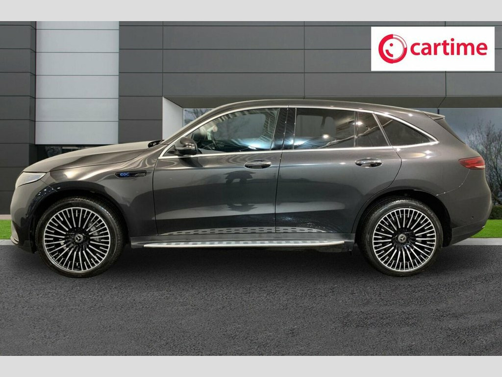 This 2021 Mercedes Benz EQC 400 AMG Line (Premium) boasts a clear vehicle history and has had only one owner. As an electric vehicle with four wheel drive, it offers a substantial 88 kWh battery providing a maximum range of 245 miles when new. Charging at home using a 7kW charger will take approximately 12 hours and 13 minutes, while rapid public charging can replenish the battery from empty to 80% in just 45 minutes. This EQC comes equipped with the desirable AMG Line trim and features the KEYLESS GO Comfort Package for effortless entry and start, alongside a Parking Package with Parking Assist PARKTRONIC and a rear camera for confident manoeuvring. Further enhancing the driving experience are the electric sliding sunroof, advanced MULTIBEAM LED headlights, and Blind Spot Assist for added safety. The MOT is valid until November 2026. The Mercedes Benz EQC 400 AMG Line (Premium) excels with its impressive performance, accelerating from 0 to 60mph in a swift 5.1 seconds, demonstrating a dynamic driving capability. This acceleration figure is notably quicker than many other vehicles in its class, offering a more engaging drive. The large boot space provides excellent practicality for everyday use and longer journeys, making it a versatile choice. The combination of its electric powertrain, four wheel drive system, and comprehensive suite of premium features positions this EQC as a compelling option for those seeking a blend of performance, luxury, and electric efficiency. 110kW DC On-board Charger, 11kW On-Board Charger, 12V Socket in Load Area, 21in Alloy Wheels - AMG Multi-Spoke Desi, ABS - Anti-Lock Braking System, Active Brake Assist, Active Lane Departure Warning, Airbags - Driver and Front Passenger, Aluminium - Running Boards, Ambient Lighting, AMG Brushed Stainless Steel Sports Pedal, AMG-Specifc Rear Apron with Visible Air , AMG-Specific Black Panel Radiator Grille, AMG-Specific Front Apron in a Jet-Wing D, Badge on the Wing in High-Gloss Black wi, Blind Spot Assist, CCS-2 Connector - Combined Charging Syst, Charging Cable for Domestic Plug Socket , Charging Cable for Wallbox and Public Ch, Cruise Control, Dashboard in ARTICO, Digital Radio, Door Mir