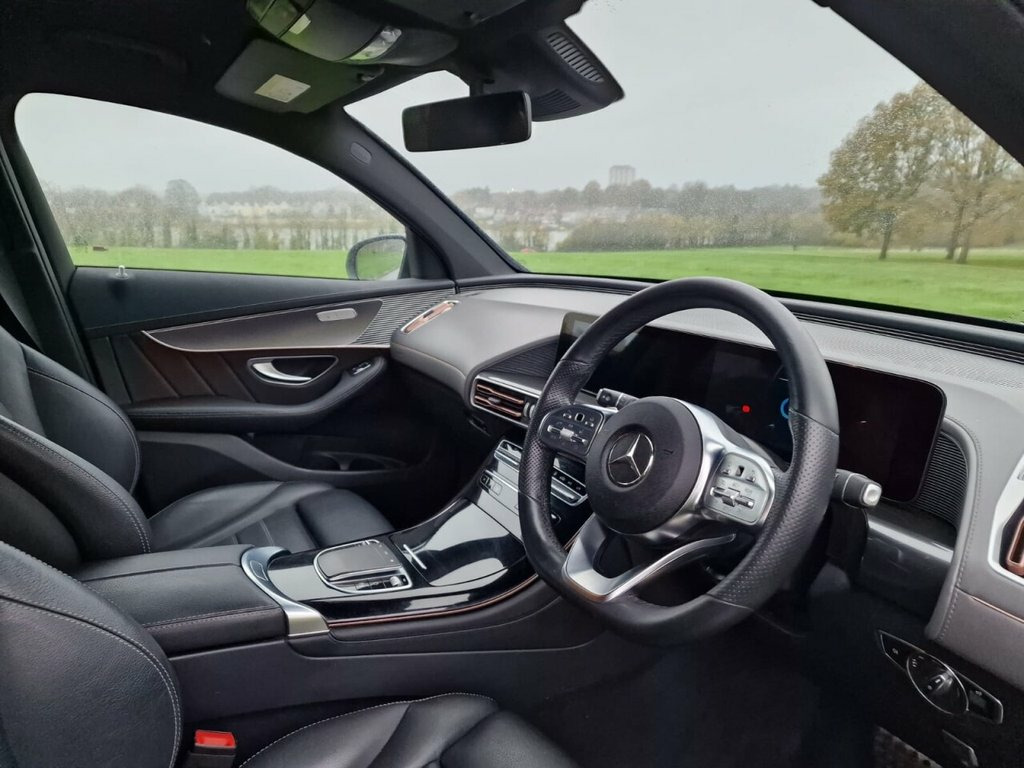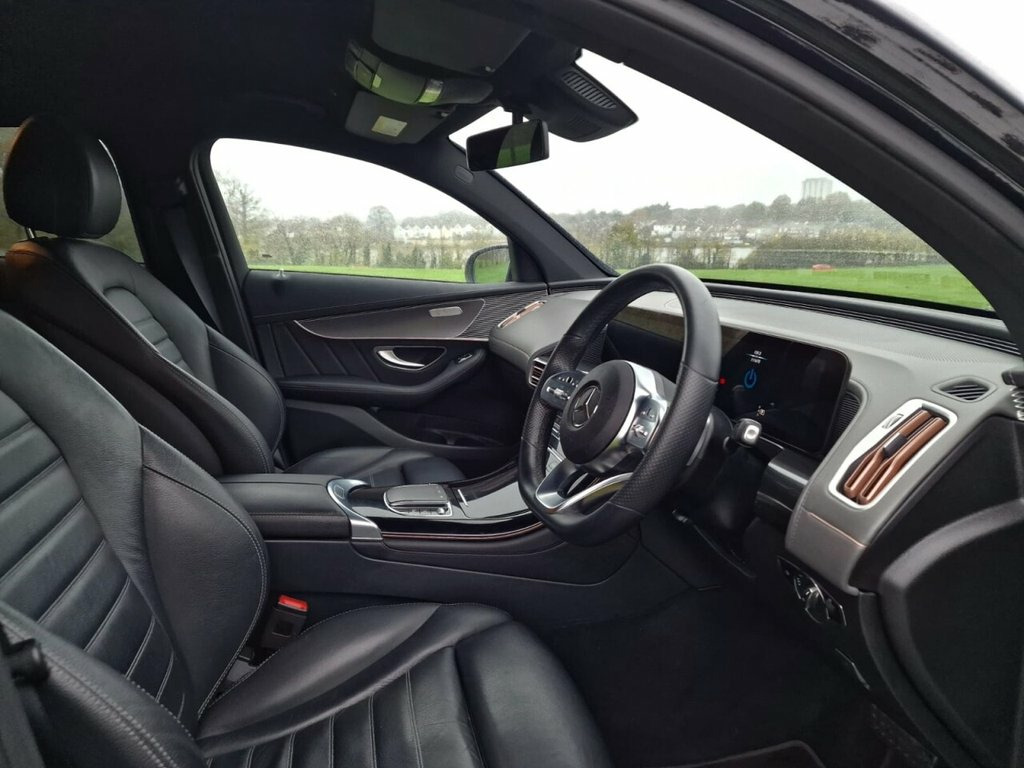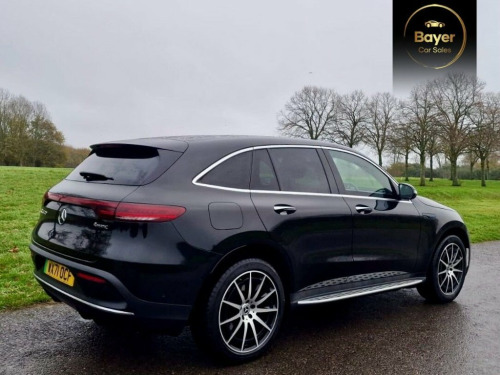 This 2021 Mercedes Benz EQC 400 AMG Line is a superb example, having been owned by only one person since new. This electric four wheel drive SUV offers a premium driving experience with its AMG Line trim, boasting a substantial 88 kWh battery that provides a maximum range of 245 miles when new. Charging is convenient, with a full charge at home using a 7kW charger taking approximately 12 hours and 13 minutes, while rapid public charging can replenish the battery from empty to 80% in as little as 45 minutes. The performance of this EQC is truly impressive, highlighted by its rapid 0 to 60 mph acceleration in just 5.1 seconds. This swift acceleration demonstrates how the EQC 400 AMG Line offers a more dynamic and responsive drive compared to many other vehicles in its class. Its electric powertrain ensures a smooth and quiet journey, making it an excellent choice for both daily commutes and longer trips. 110kW DC On-board Charger, 11kW On-Board Charger, 12V Socket in Load Area, 20in Alloy Wheels - AMG Multi-Spoke Desi, ABS - Anti-Lock Braking System, Active Brake Assist, Active Lane Departure Warning, Airbags - Driver and Front Passenger, Aluminium - Running Boards, Ambient Lighting, AMG Brushed Stainless Steel Sports Pedal, AMG-Specifc Rear Apron with Visible Air , AMG-Specific Black Panel Radiator Grille, AMG-Specific Front Apron in a Jet-Wing D, Badge on the Wing in High-Gloss Black wi, Blind Spot Assist, CCS-2 Connector - Combined Charging Syst, Charging Cable for Domestic Plug Socket , Charging Cable for Wallbox and Public Ch, Cruise Control, Dashboard in ARTICO, Digital Radio, Door Mir