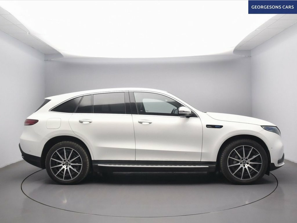 The Mercedes-Benz EQC 400 AMG Line combines dual electric motors with 408hp, delivering 0-62mph in 5.1s and up to 255 miles WLTP range in this all-wheel-drive 4MATIC setup with instant single-speed transmission. The AMG Line trim brings bold styling with a premium interior. With one owner, this EQC is in excellent condition. Integrated satellite navigation, Bluetooth and DAB radio keep you connected. Parking is effortless with reverse camera and parking sensors. Stay warm with heated front seats and dual-zone climate control. Cruise control, speed limiter, lane assist and blind spot assist deliver relaxed, safe EV touring every day. The spacious five-door SUV includes a 500-litre boot. 12V Socket in Load Area, ABS - Anti-Lock Braking System, Active Brake Assist, Active Lane Departure Warning, Airbags - Driver and Front Passenger, Aluminium - Running Boards, Ambient Lighting, AMG Brushed Stainless Steel Sports Pedal, AMG-Specifc Rear Apron with Visible Air , AMG-Specific Black Panel Radiator Grille, Badge on the Wing in High-Gloss Black wi, Blind Spot Assist, Comfort Suspension - including Self-Leve, Cruise Control, Dashboard in ARTICO, Digital Radio, Door Mirrors - High Gloss Black, Dynamic Select, EASY-PACK Electric Tailgate, Electric Windows - Front and Rear, EQ Navigation Services, Front and Rear LED Light Bands, Hard-Disk Navigation, Heat and Noise Insulating Acoustic