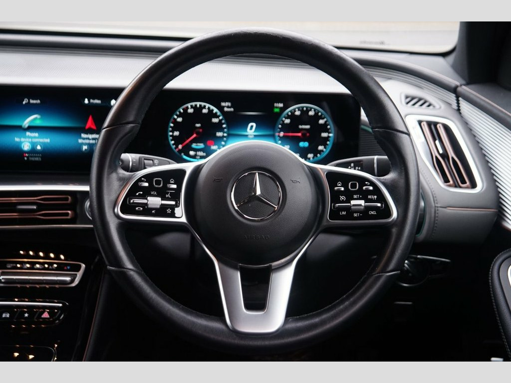 Prestige Car Supermarket in York presents this executive, fully electric 2021 Mercedes-Benz EQC 400 Sport SUV. Finished in Polar White non-metallic paintwork and featuring a comfortable Black Artico Leather interior, this automatic electric four-wheel-drive SUV delivers an impressive 408 horsepower and a strong road presence. It rides on 19in 5-Twin-Spoke Design alloy wheels and features AMG Line Bodystyling, a Black Panel Radiator Grille, and Privacy Glass. Illumination is provided by state-of-the-art MULTIBEAM LED Headlights with a distinctive High-gloss Black inner housing and blue stripes, plus Front and Rear LED Light Bands. Step inside the highly appointed cabin to find Heated Front Seats, a 3-Spoke Multifunction Leather Steering Wheel, and Ambient Lighting. Technology is cutting-edge with the MBUX Multimedia System and Widescreen Cockpit, featuring two 10.25in Displays, Hard-Disk Navigation, and Digital Radio. Convenience is a priority with the EASY-PACK Electric Tailgate, KEYLESS-GO Comfort Package, Mirror Package, and the Parking Package with Parking Assist PARKTRONIC and a Rear Camera. Safety and driver assistance systems are extensive, including Active Lane Departure Warning, Blind Spot Assist, and Traffic Sign Assist, ensuring a secure and well-connected drive. Artico Leather - Black, Polar White, 110kW DC On-board Charger, 11kW On-Board Charger, 12V Socket in Load Area, 19in Alloy Wheels - 5-Twin-Spoke Design, ABS - Anti-Lock Braking System, Active Brake Assist, Active Lane Departure Warning, Airbags - Driver and Front Passenger, Ambient Lighting, Badge on the Wing in High-Gloss Black wi, Black Panel Radiator Grille with Louvres, Blind Spot Assist, CCS-2 Connector - Combined Charging Syst, Charging Cable for Domestic Plug Socket , Charging Cable for Wallbox and Public Ch, Cruise Control, Dashboard in ARTICO, Digital Radio, Door Mirrors - High Gloss Black, Dynamic Select, EASY-PACK Electric Tailgate, EQ Navigation Services, Electric Windows - Front