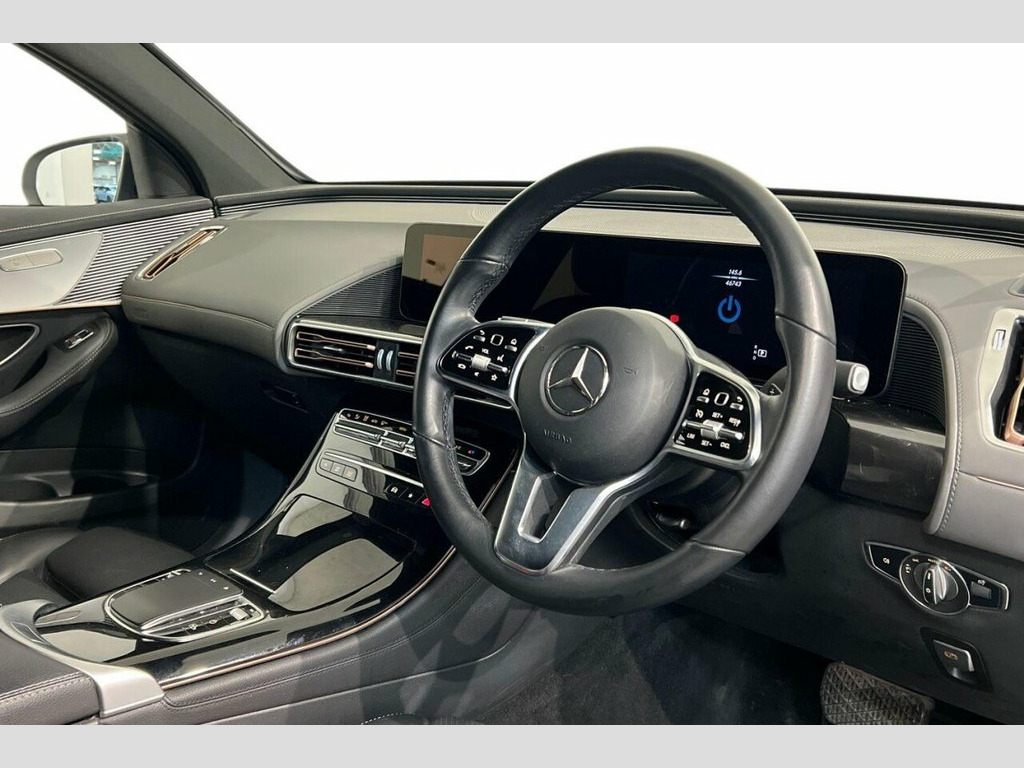 This 2022 Mercedes-Benz EQC 400 Sport is a superb example, having had only one owner since new and boasting an MOT valid until September 2026. As a fully electric vehicle with Four Wheel Drive, it offers a smooth and responsive driving experience. The EQC 400 Sport features a substantial 88 kWh battery, providing a maximum range of 255 miles when new. Charging is convenient, with a full charge at home using a 7kW charger taking approximately 12 hours and 13 minutes, while rapid public charging can replenish the battery from empty to 80% in just 45 minutes. Experience impressive performance with the EQC 400 Sport, accelerating from 0 to 60mph in a swift 5.1 seconds, a testament to its electric power. This model comes equipped with advanced MULTIBEAM LED Headlights for superior visibility and a Parking Package featuring Parking Assist PARKTRONIC and a Rear Camera, making manoeuvring effortless. Inside, you'll find a premium Mercedes-Benz Sound System and the KEYLESS-GO Comfort Package for easy access. Comfort is further enhanced with Heated Front Seats, and the generous boot space ensures practicality for all your needs. 110kW DC On-board Charger, 11kW On-Board Charger, 12V Socket in Load Area, 19in Alloy Wheels - 5-Twin-Spoke Design, ABS - Anti-Lock Braking System, Active Brake Assist, Active Lane Departure Warning, Airbags - Driver and Front Passenger, Ambient Lighting, Artico Leather - Black, Badge on the Wing in High-Gloss Black wi, Black Panel Radiator Grille with Louvres, Blind Spot Assist, CCS-2 Connector - Combined Charging Syst, Charging Cable for Wallbox and Public Ch, Cruise Control, Dashboard in ARTICO, Digital Radio, Door Mirrors - High Gloss Black, Dynamic Select, EASY-PACK Electric Tailgate, Electric Windows - Front and Rear, EQ Navigation Services, Floor Mats, Front Apron with High-Gloss Blac