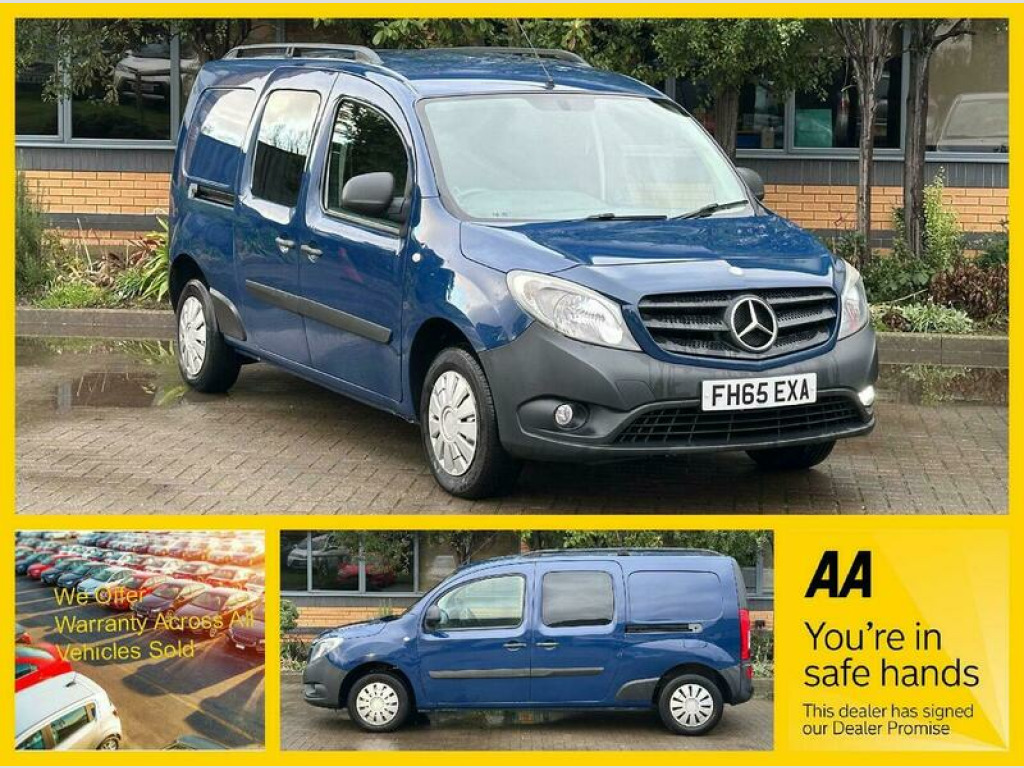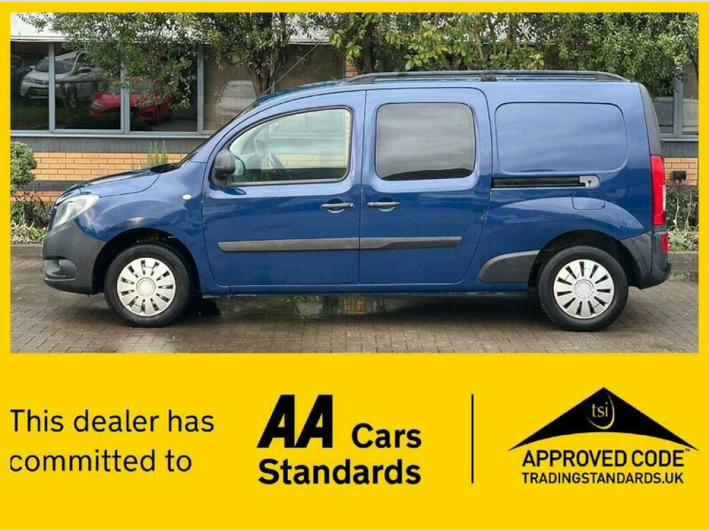Discover this exceptional 2015 Mercedes Benz Citan 1.5 109 CDI Crew Van L3 Euro 5, boasting remarkably low mileage for its age at just 62,000 miles. This versatile 6 door, 5 seat model is equipped with a practical 1.5L diesel engine and features a Bluetooth interface, allowing for hands free telephone calls. MOT expires 11/11/2026 with no advisoires, This Citan offers impressive fuel economy, achieving an outstanding 57 miles per gallon, and also benefits from low CO2 emissions, making it an economical choice. These highlights demonstrate its efficiency and cost effectiveness when compared to similar vehicles on the market. 15in Wheels, ABS - Anti-Lock Braking System, Adaptive ESP - Electronic Stability Programme, Air Drying for Windscreen and Side Windows, Airbag - Driver, Aspherically Curved Mirror Glass - Exterior Mirrors, Automatically Activated Hazard Warning Lights During Emergency Braking, Aux-in Socket, Battery and Alternator Management, Bluetooth Interface for Hands-Free Telephone, Central Locking, Cruise Control, Daytime Running Lights, Door Mirrors - Heated and Electrically Adjustable, Doors - Twin Rear Doors - Open to 180 Degrees, EBV - Electronic Brakeforce Distribution, Electric Windows - Front, Hydraulic Brake Assist, Interior Light on D-Pillar with Switch-3 Settings, Load Securing Rings in Boot, Load Securing Rings in Load Compartment, Pollen Filter, Power Assisted Steering, Radio, Rescue Assist Sticker with QR Code, Seat Belt Reminder - Driver, Seat Belt Warning Light and Buzzer for Drivers Seat, Seat belts - Front Height Adjustable with Two Stage Belt Force Limiters, Speed Limiter, Start-Off Assist, Stowage Compartment Between Front Seats, Stowage Compartments in the Front Doors, Sun Protection in Windscreen Behind Interior Mirror, Sun Visor with Pockets on Driver and Front Passenger Side, Temperature Sensor incorporated into Exterior Mirrors, Third Brake Light, Tinted Glass All Round, Trip Computer, Twin Sliding Side Doors, USB Interface, Windows - Left Side Sliding Door - Fixed, Windows - Right Side Sliding Door - Fixed