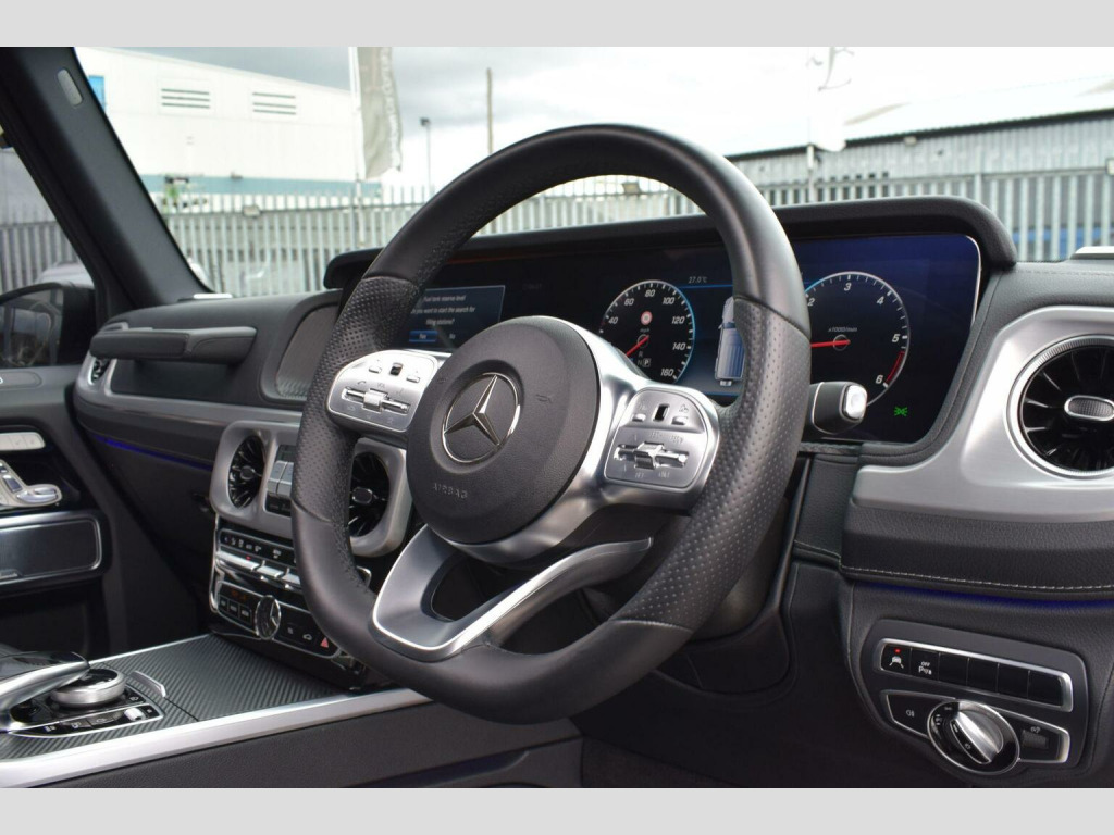October 2019 69 Mercedes-Benz G Class 2.9 G350d AMG Line (Premium) G-Tronic+ 4MATIC finished in Obsidian Black Metallic with black Nappa leather interior. 49950 miles covered with Mercedes main dealer service history support up to and including 2025. Well presented throughout and supplied with all correct documentation, handbooks etc and subjected to our usual strict pre delivery inspection and preparation process ensuring all cosmetic and mechanical elements are in good order. Well equipped with a long list of features including a selection of sought after optional extras consisting of: 20in Alloy Wheels - AMG Multi-Spoke Design - Painted Black, AMG Night Package and Steering Wheel - 3-Spoke Multifunction Sports Steering Wheel in Black Nappa Leather. Other highlights include: 360 Degree Camera, AGILITY CONTROL Suspension with Selective Passive Damping System, Active Brake Assist, Active Lane Keeping Assist, Ambient Lighting - Choice of 64 Colour Settings, Burmester Surround Sound System, Cruise Control with Variable Speed Limiter, DYNAMIC SELECT with ECO Start-Stop Function and Four Transmission Modes, Electric Sunroof - Sliding with One-Touch Opening, Front Seats - Heated and Electrically Adjustable, KEYLESS-GO Starting Function, MULTIBEAM LED Headlights, Parking Package with Reversing Camera, Seats - Heated Rear, Side Running Boards, Smartphone Integration Comprising Apple CarPlay and Android Auto, Traffic Sign Assist and more. , UK wide delivery available. Please get in touch for details. , PAYMENT: We accept debit cards for payments up to £500. For larger payments we accept BACS (bank transfer) only. Please check transfer processing times and limits with your bank if you plan to pay on collection as we are unable to release cars without cleared funds. Please also bring anything you may need to access your online banking on the day including securekeys, card readers etc. We accept cash payments up to £9000 which are subject to a 2% banking fee. Please note a £250 admin fee is applicable for purchases funded by third party finance lenders. , Please note: Although every effort is made to ensure the accuracy of every advert and vehicle specification, system and human errors can occur from time to time and it is advised to check for confirmation.